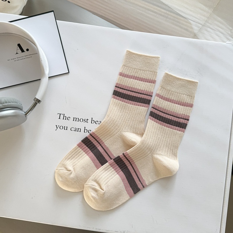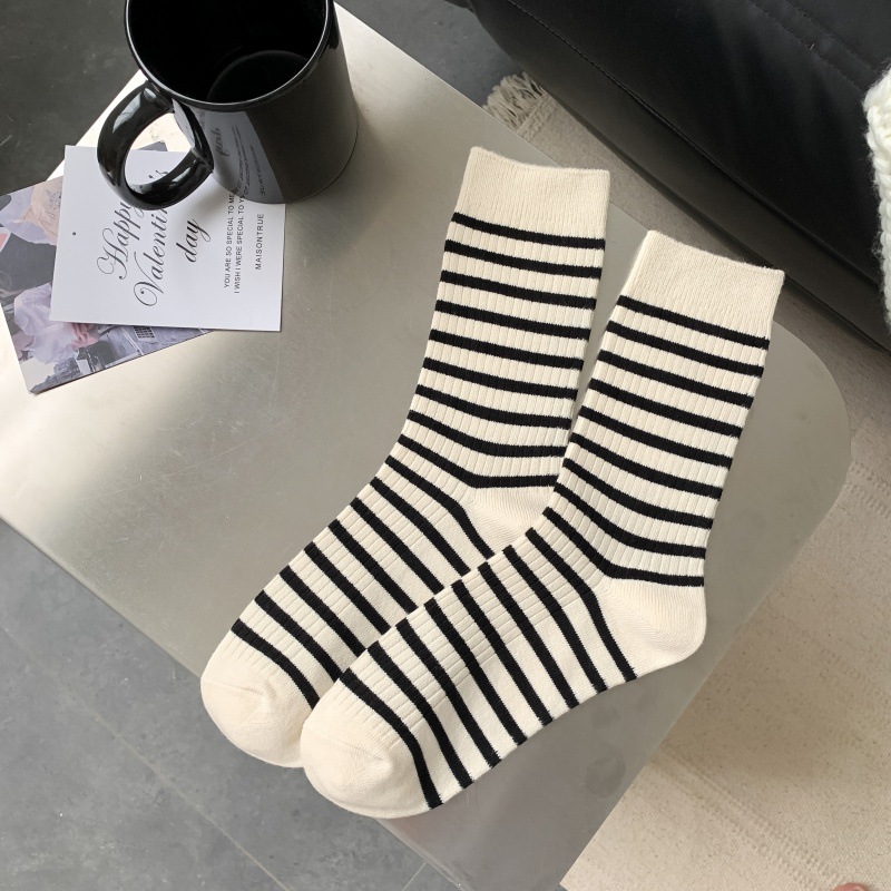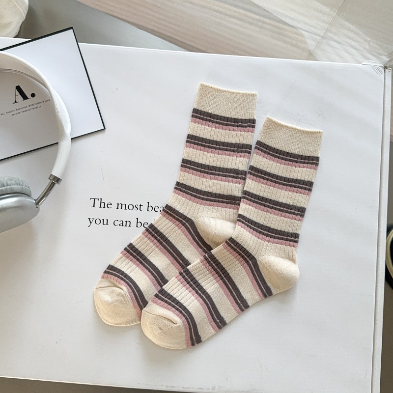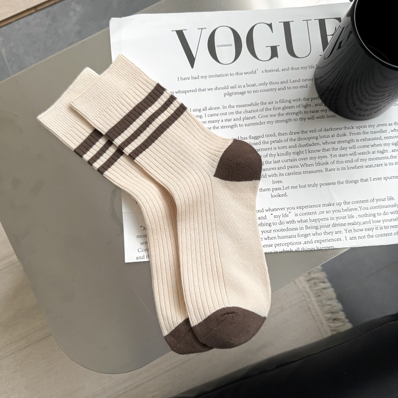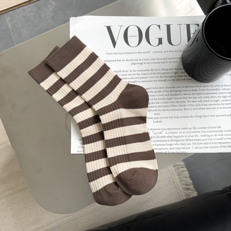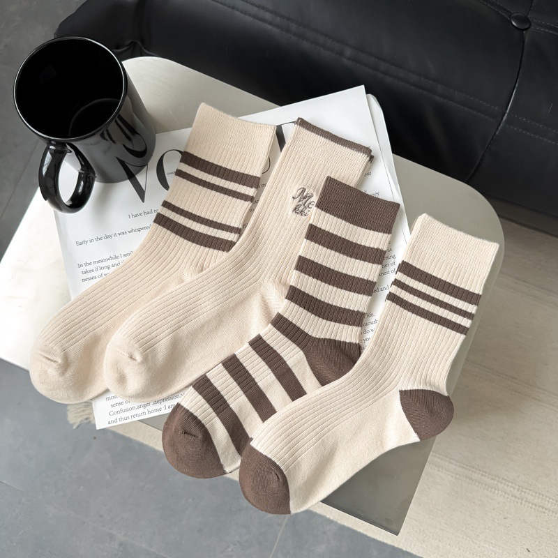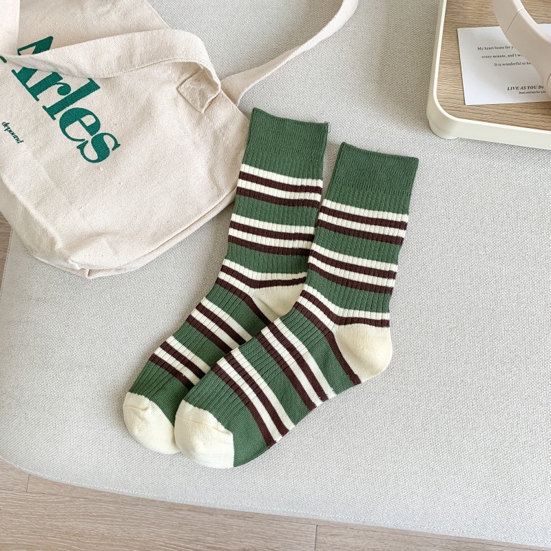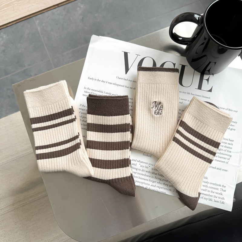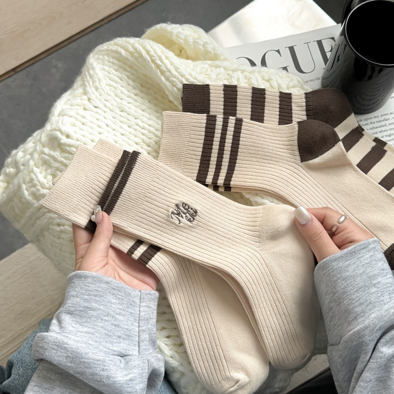 가을과 겨울 빈티지 야외 줄무늬 자수 2 바늘 조합 4 색 시리즈 여성 중장 스타킹 빗질면 대비 스타킹스토어 가기