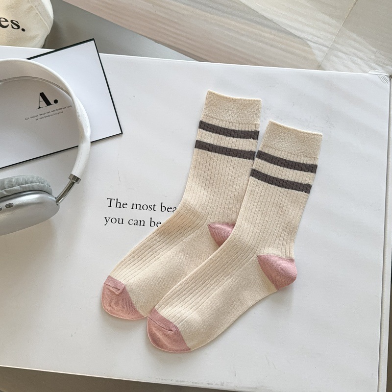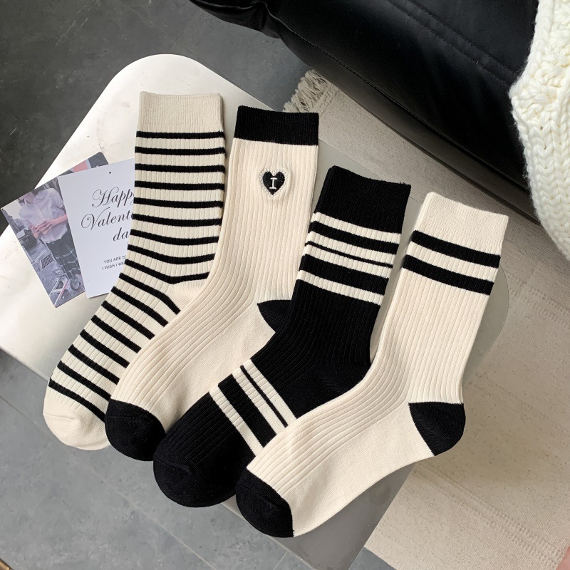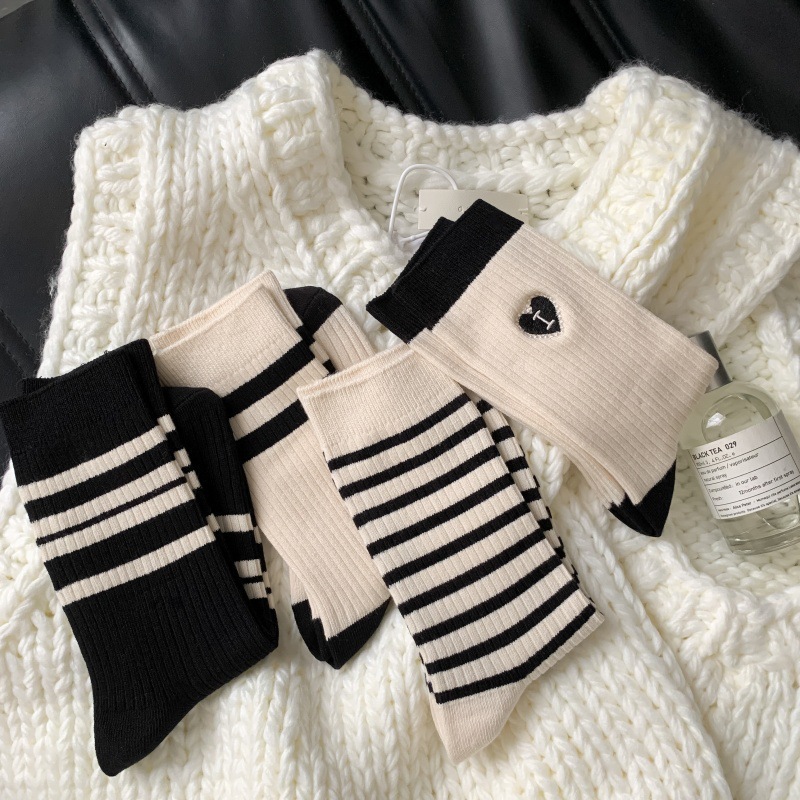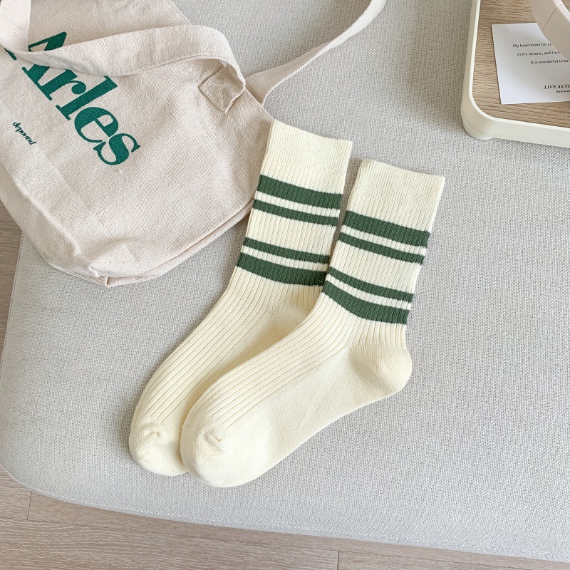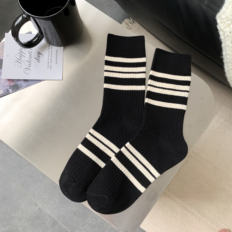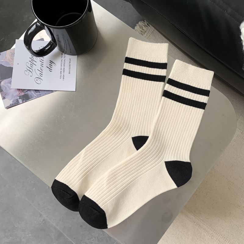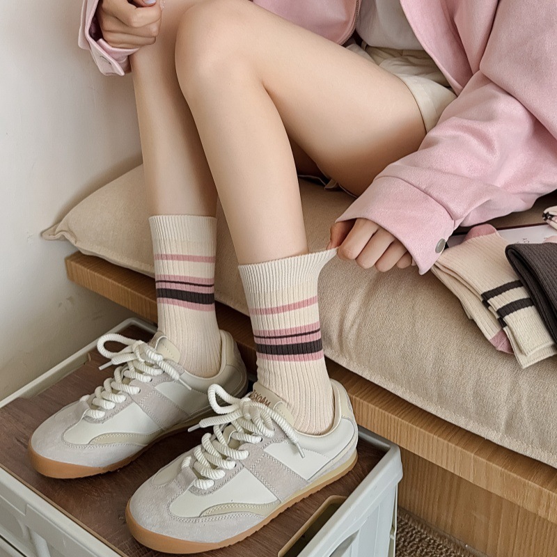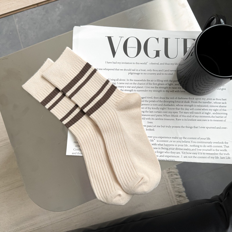 가을과 겨울 빈티지 야외 줄무늬 자수 2 바늘 조합 4 색 시리즈 여성 중장 스타킹 빗질면 대비 스타킹스토어 가기