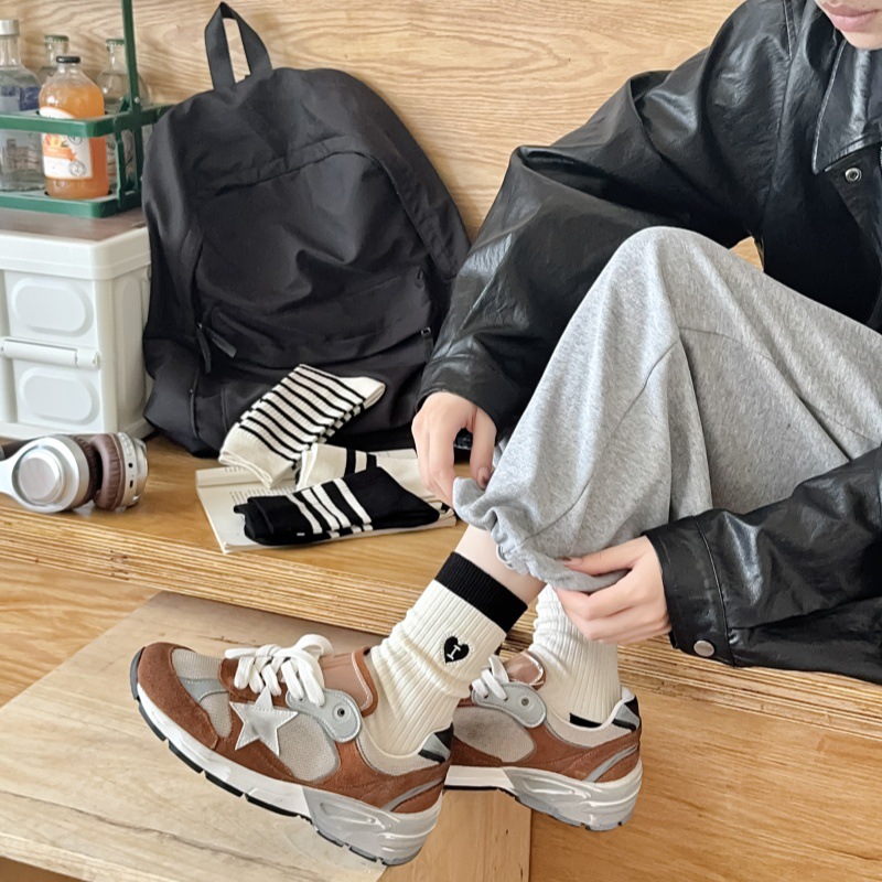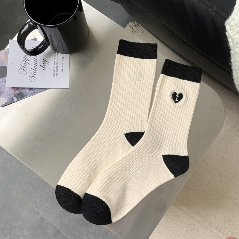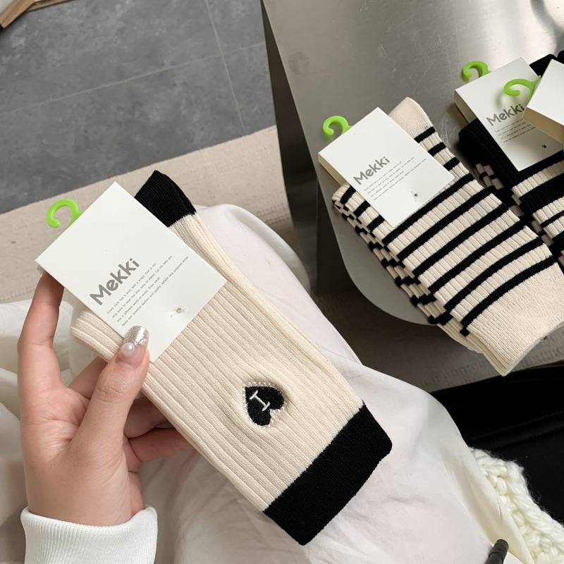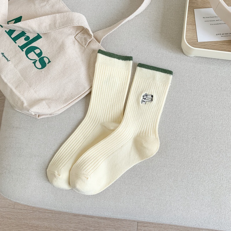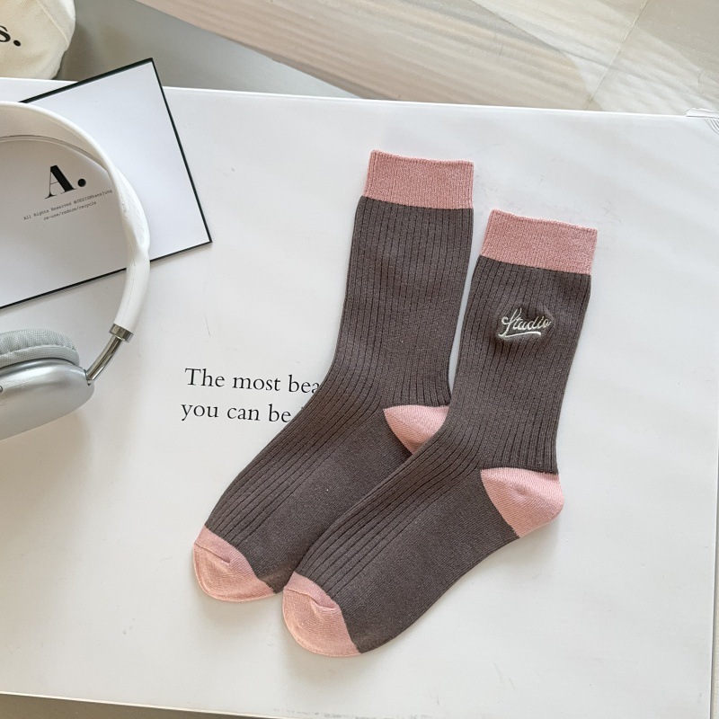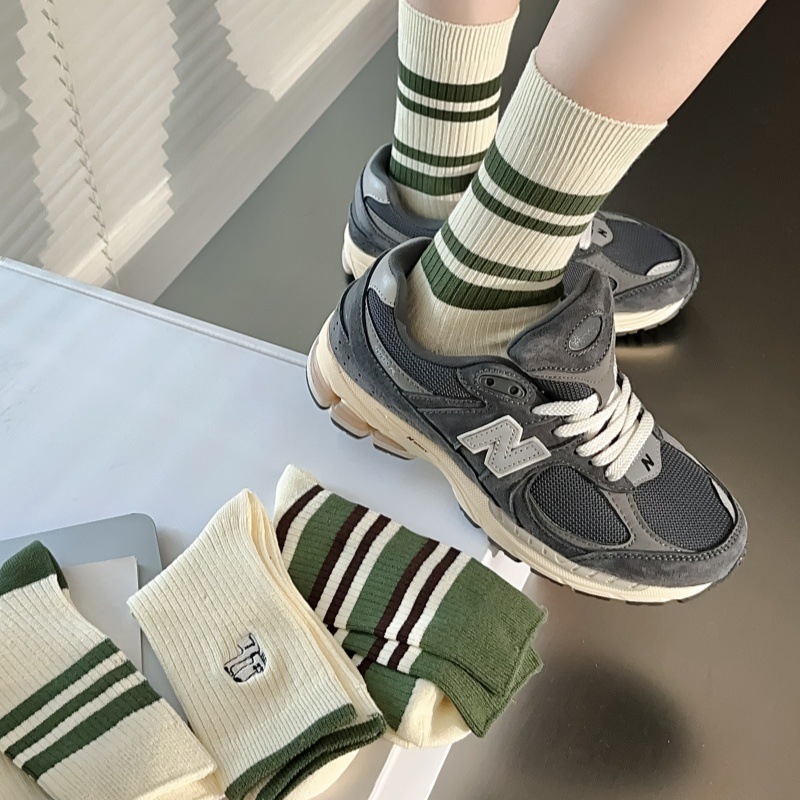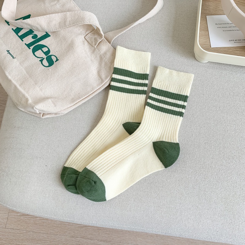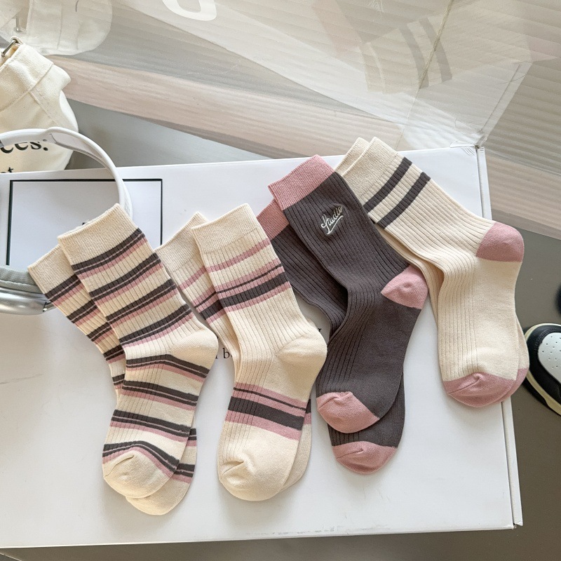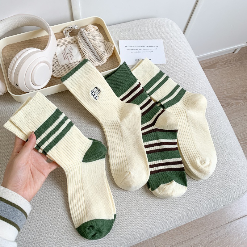 가을과 겨울 빈티지 야외 줄무늬 자수 2 바늘 조합 4 색 시리즈 여성 중장 스타킹 빗질면 대비 스타킹스토어 가기