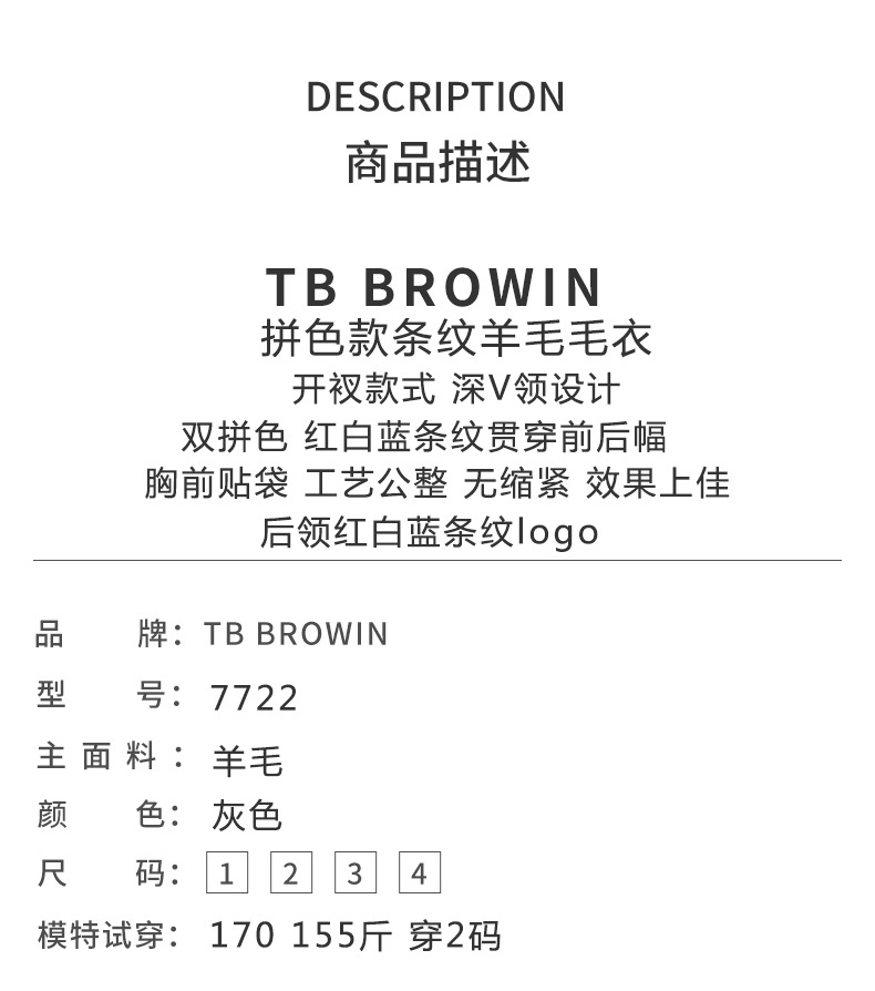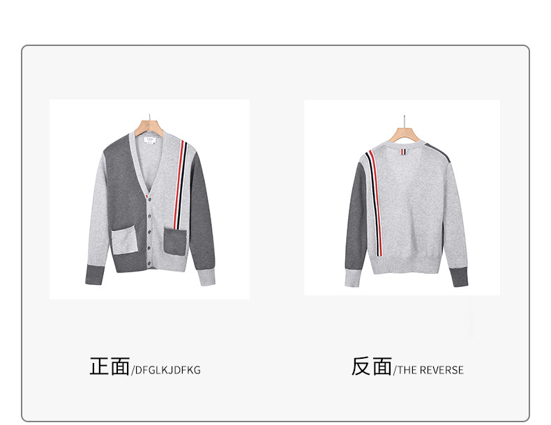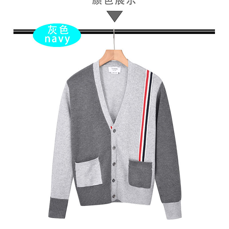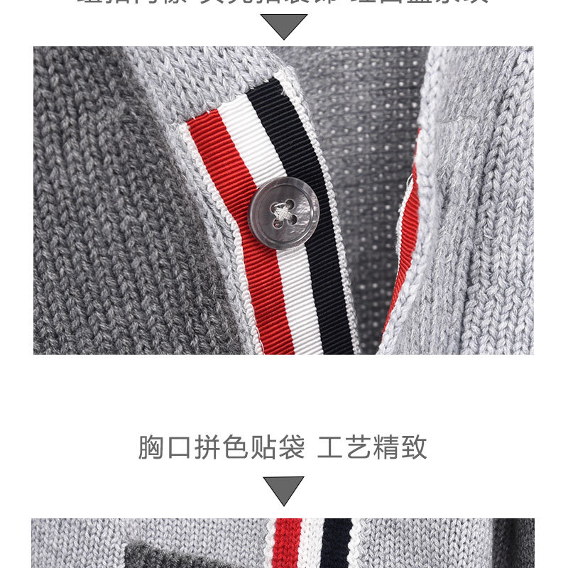 TB BROWIN2025 가을 겨울 신상 브이넥 가디건 스웨터 남성용 컬러블록 네줄 스트라이프 한국 스타일 캐주얼 재킷스토어 가기