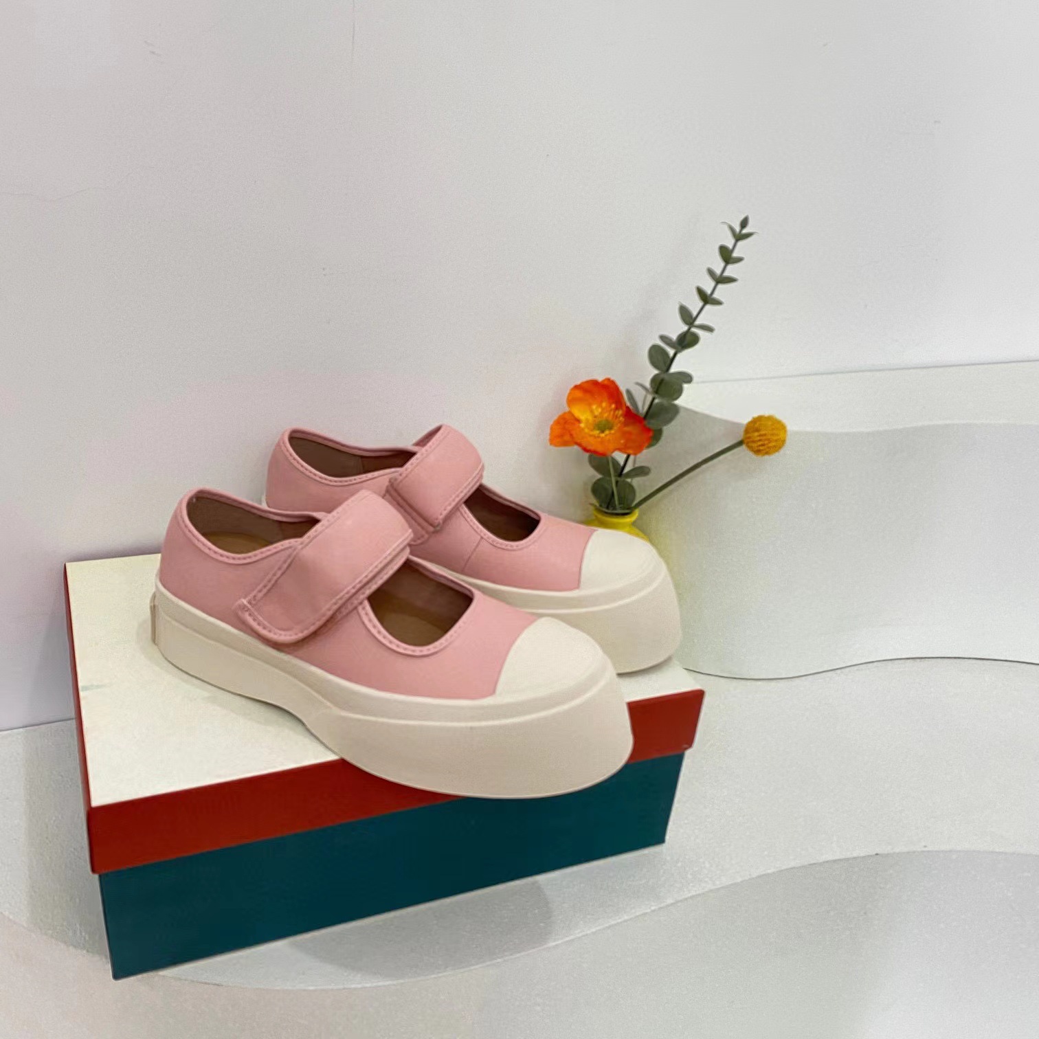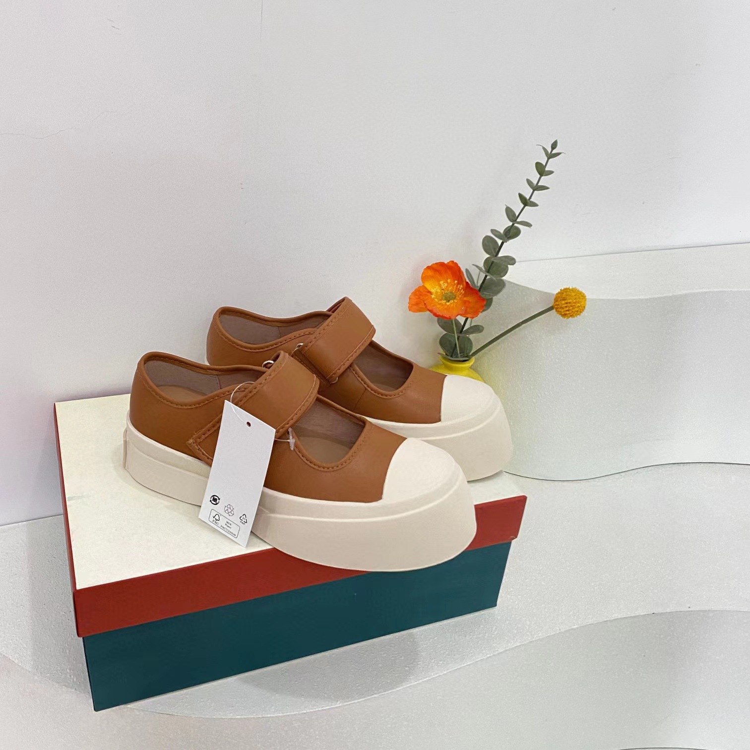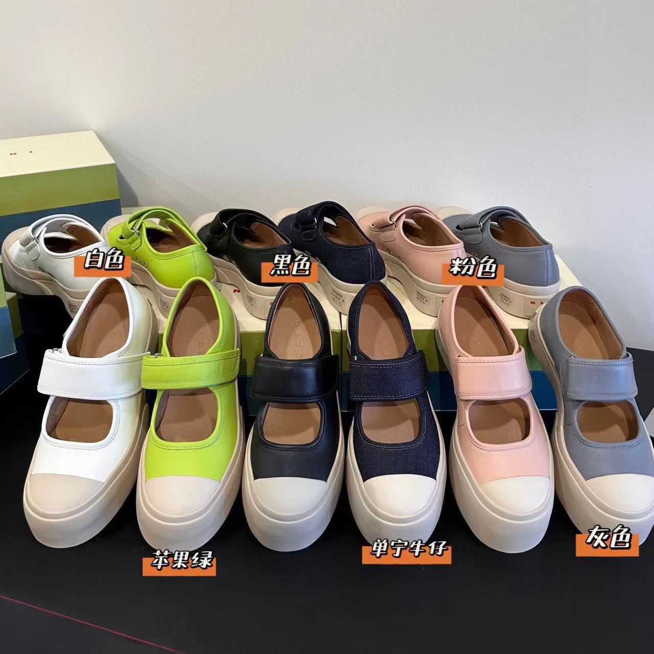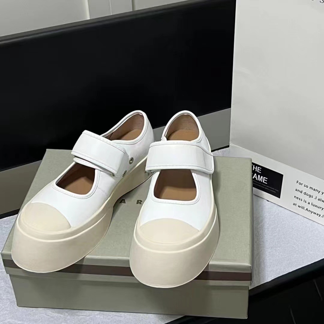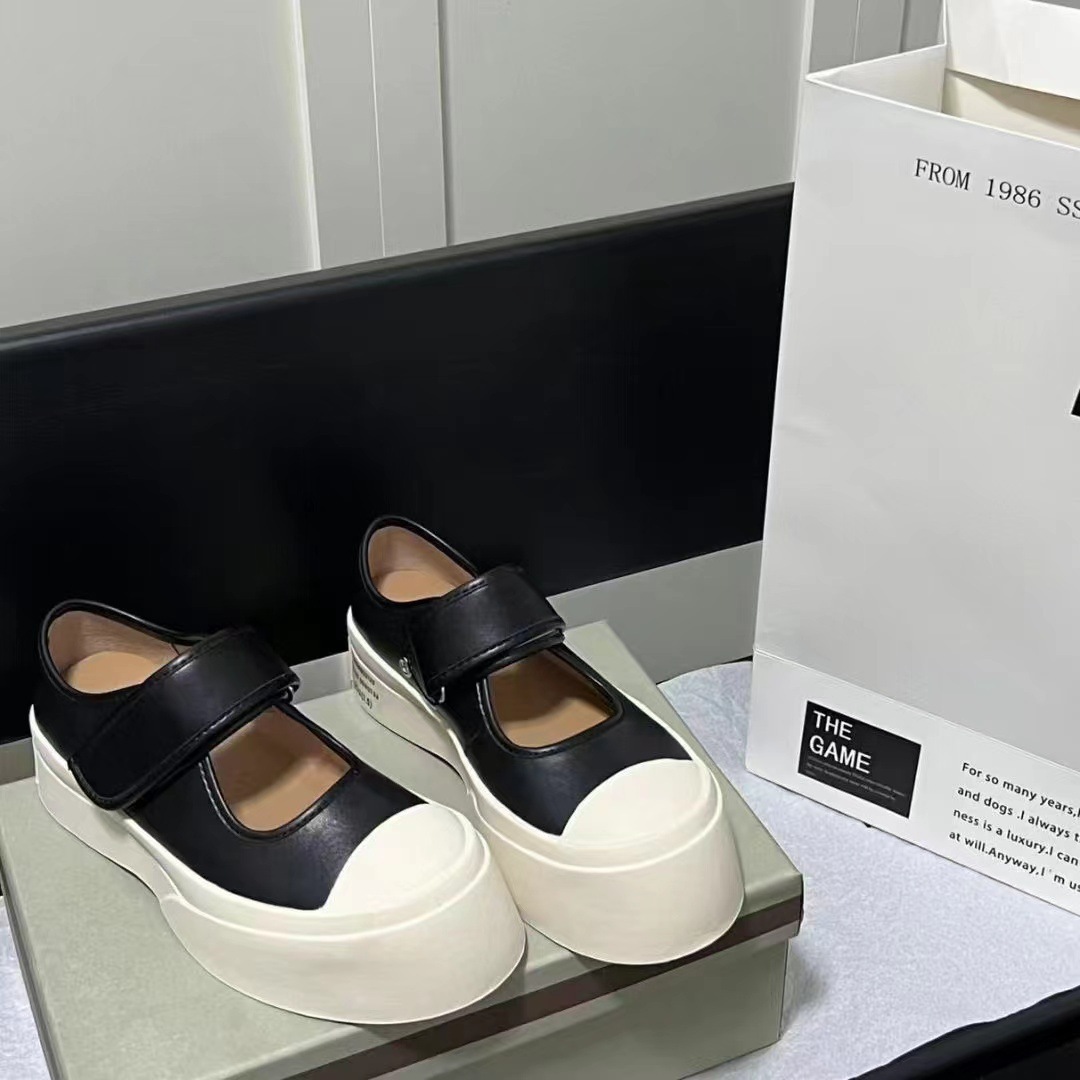 고급 버전 M Jiamani 입체 라벨 Mary Jane 벨크로 비스킷 신발 여성용 2023 신형 소가죽 빅 토 스니커즈