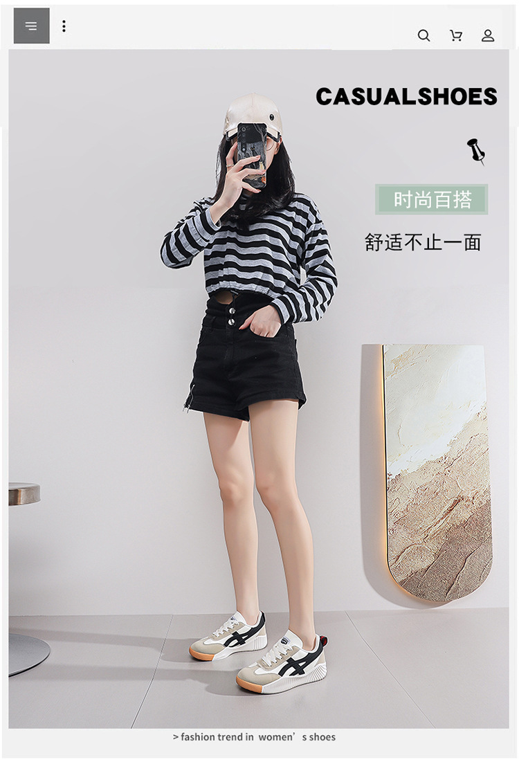 2024 년 여름 새로운 한국 스타일 플랫 화이트 신발 여성 통기성 캐주얼 학생 보드 신발 여성 러닝 슈즈 JH-6617스토어 가기