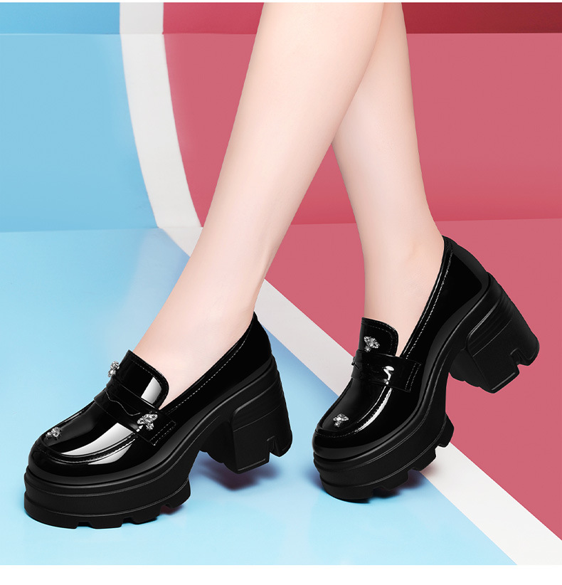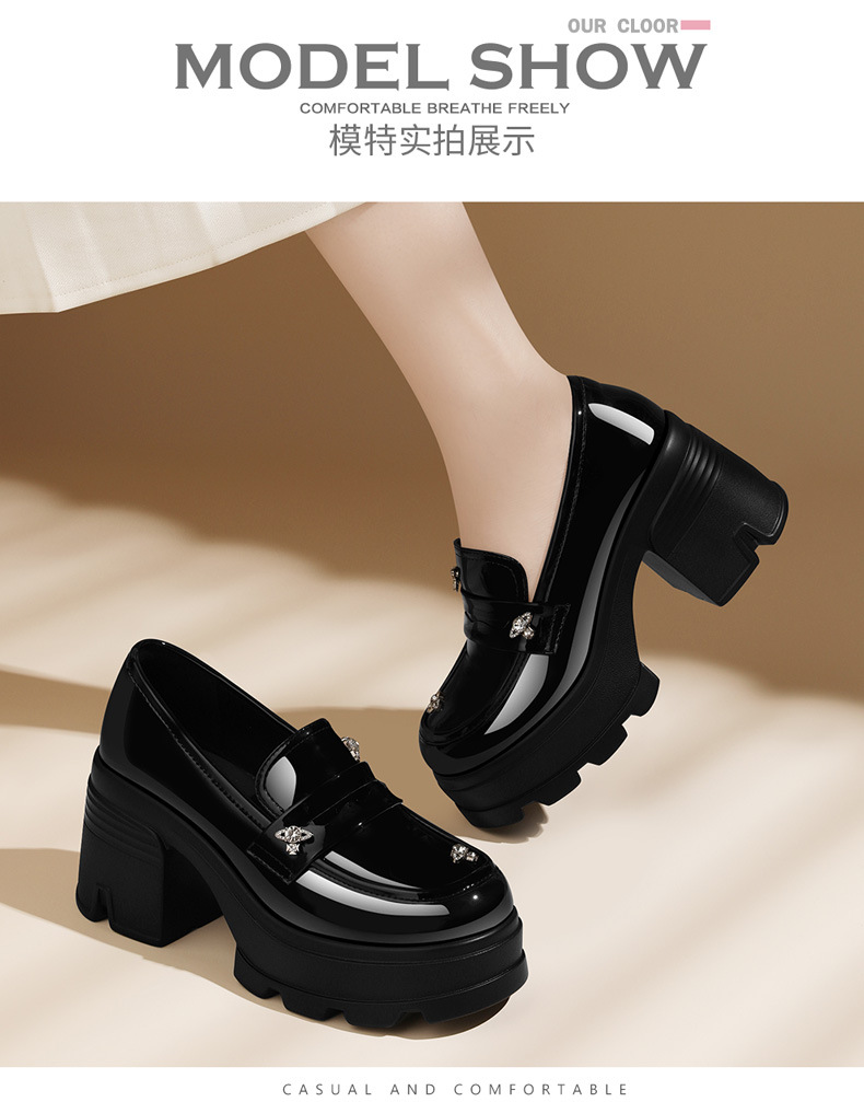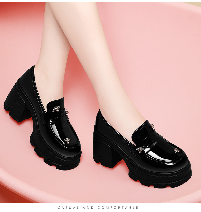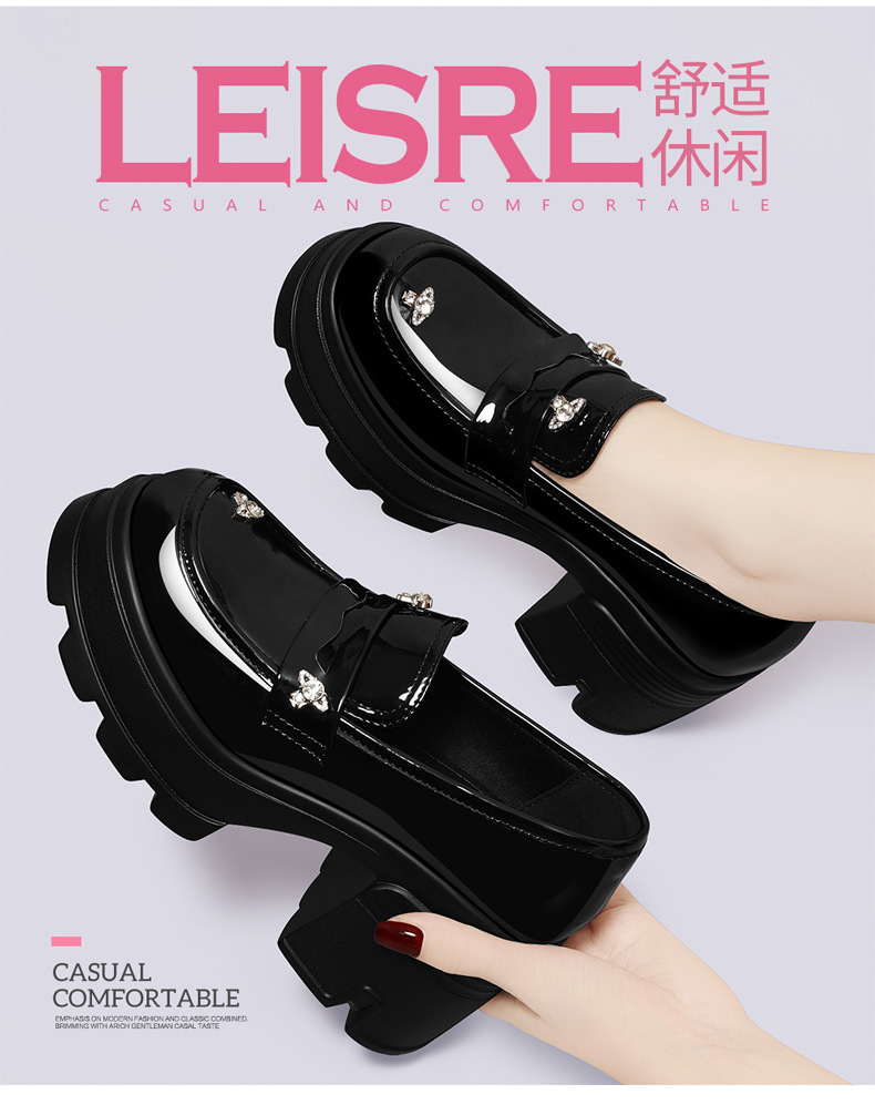 두꺼운 밑창 로퍼 여성용 2025 신상 영국 스타일 작은 가죽 신발 키 작은 여성용 플랫폼 키높이 신발 슬립온 단화스토어 가기