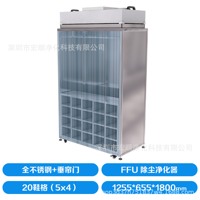 • 20개의 신발 그리드 + 공기 청정기 + 수직 도어 커튼, 전체 스테인레스 스틸