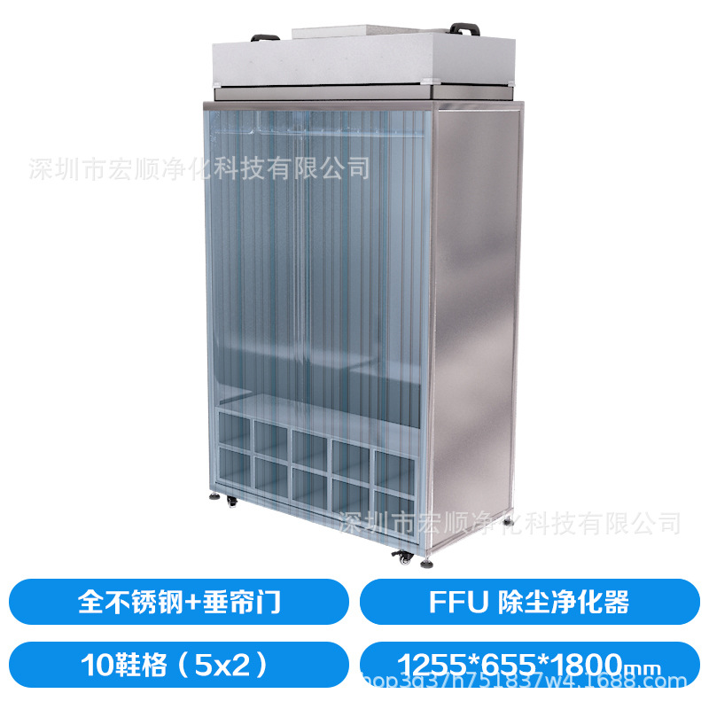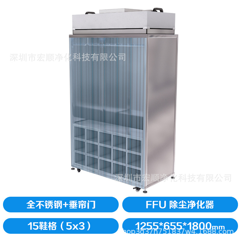 • 15 신발 그리드 + 공기 청정기 + 수직 도어 커튼, 전체 스테인레스 스틸