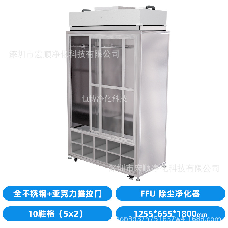클래스 100 작업장 깨끗한 옷장 신발 캐비닛 스테인레스 스틸 ffu 필터 정전기 먼지가없는 의류 먼지가없는 방 정화 사물함