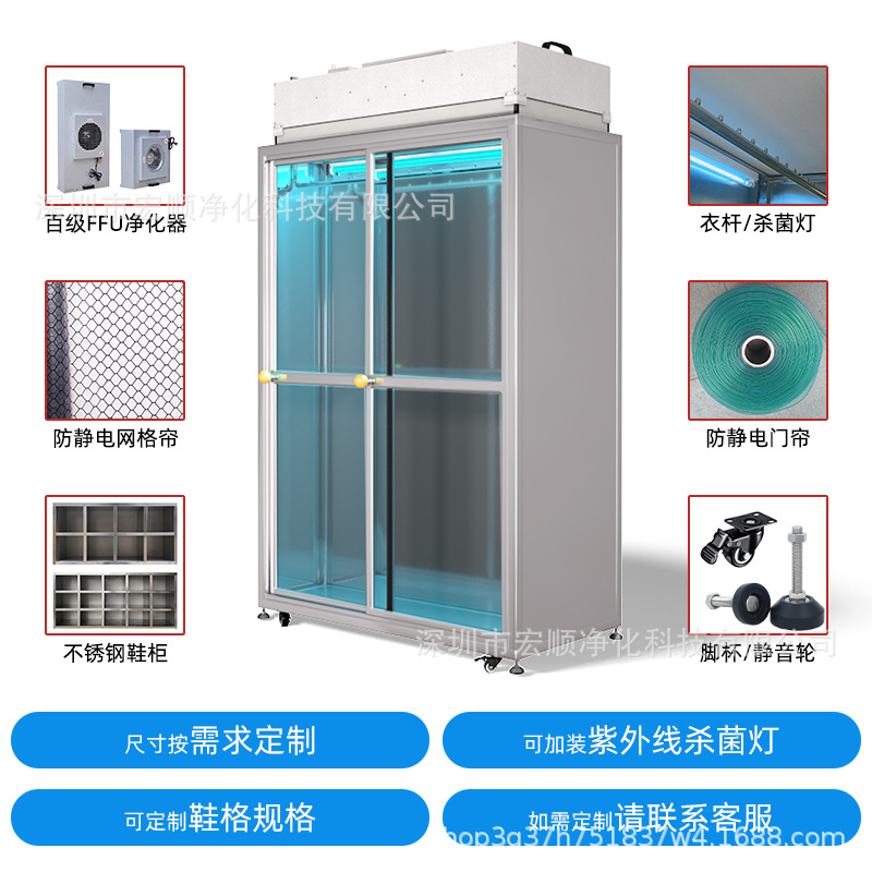 클래스 100 작업장 깨끗한 옷장 신발 캐비닛 스테인레스 스틸 ffu 필터 정전기 먼지가없는 의류 먼지가없는 방 정화 사물함스토어 가기