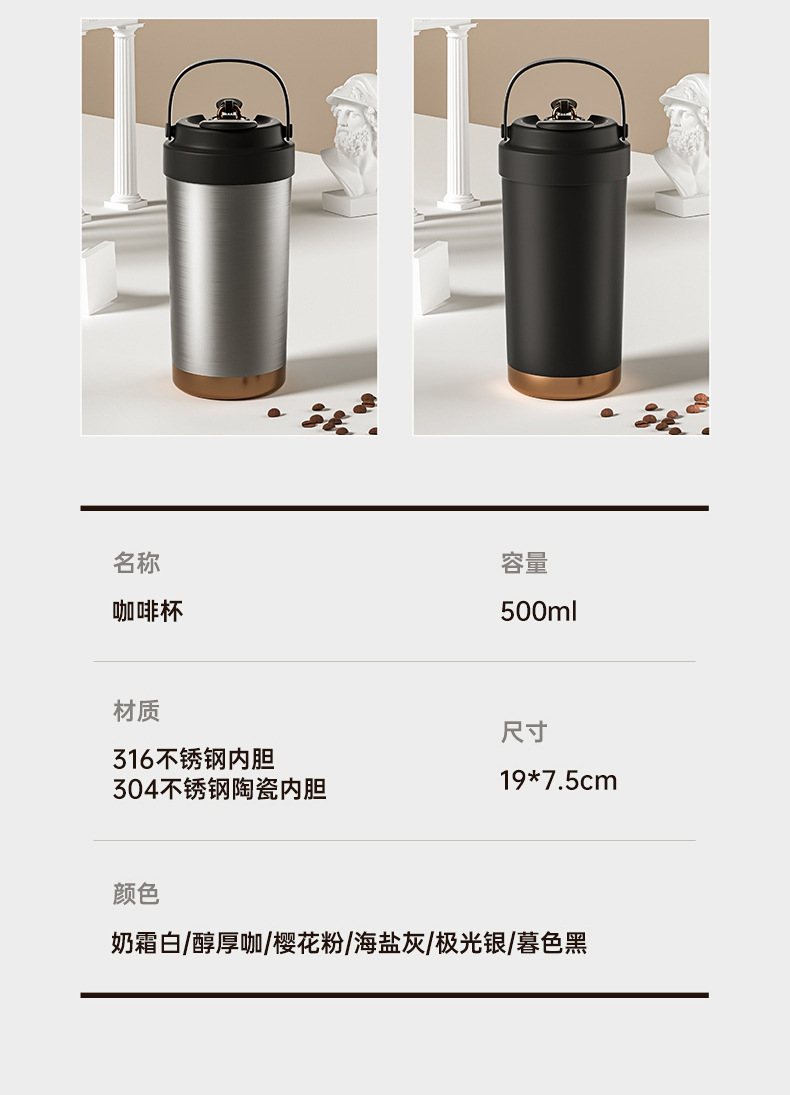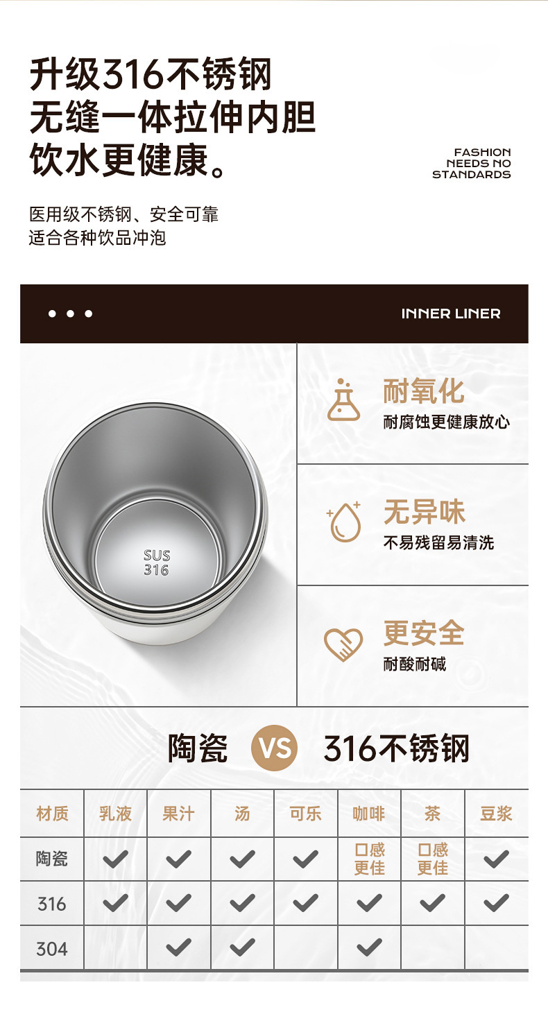 产品材质:316不锈钢+杯盖pp