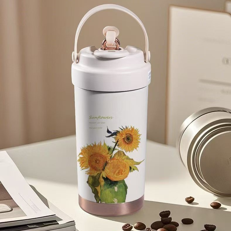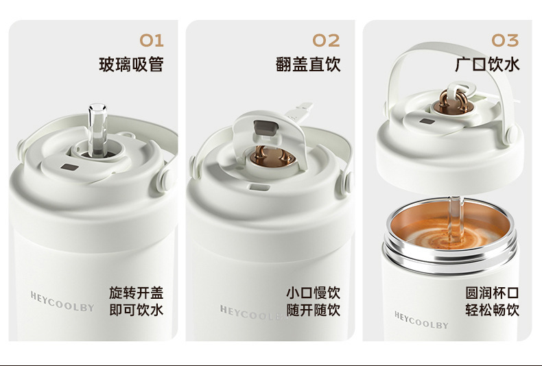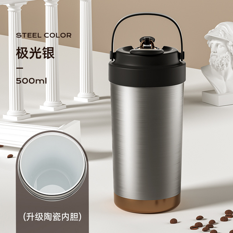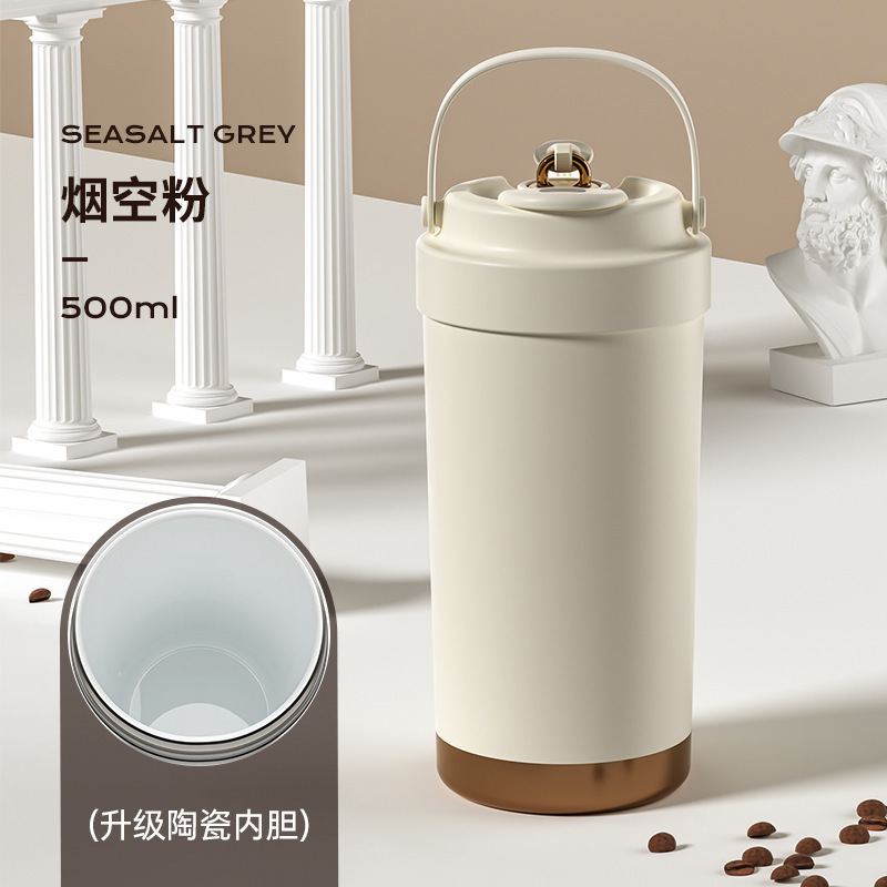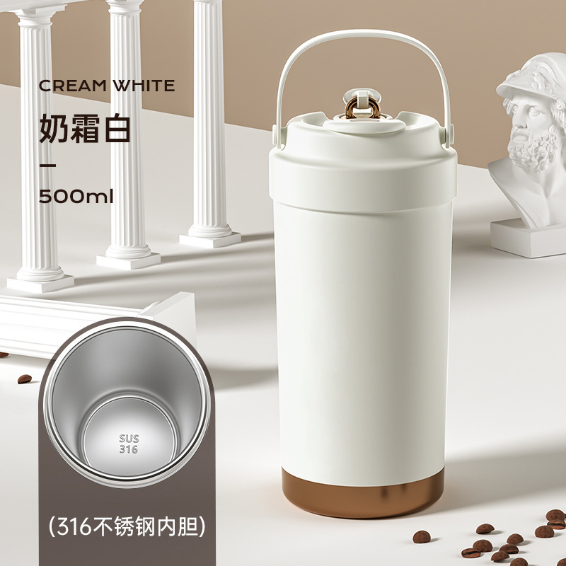 남녀공용 고급스러운 316L 커피잔, 가정용 대용량 보온병, 편리한 텀블러, 빨대가 달린 겸용 물컵스토어 가기