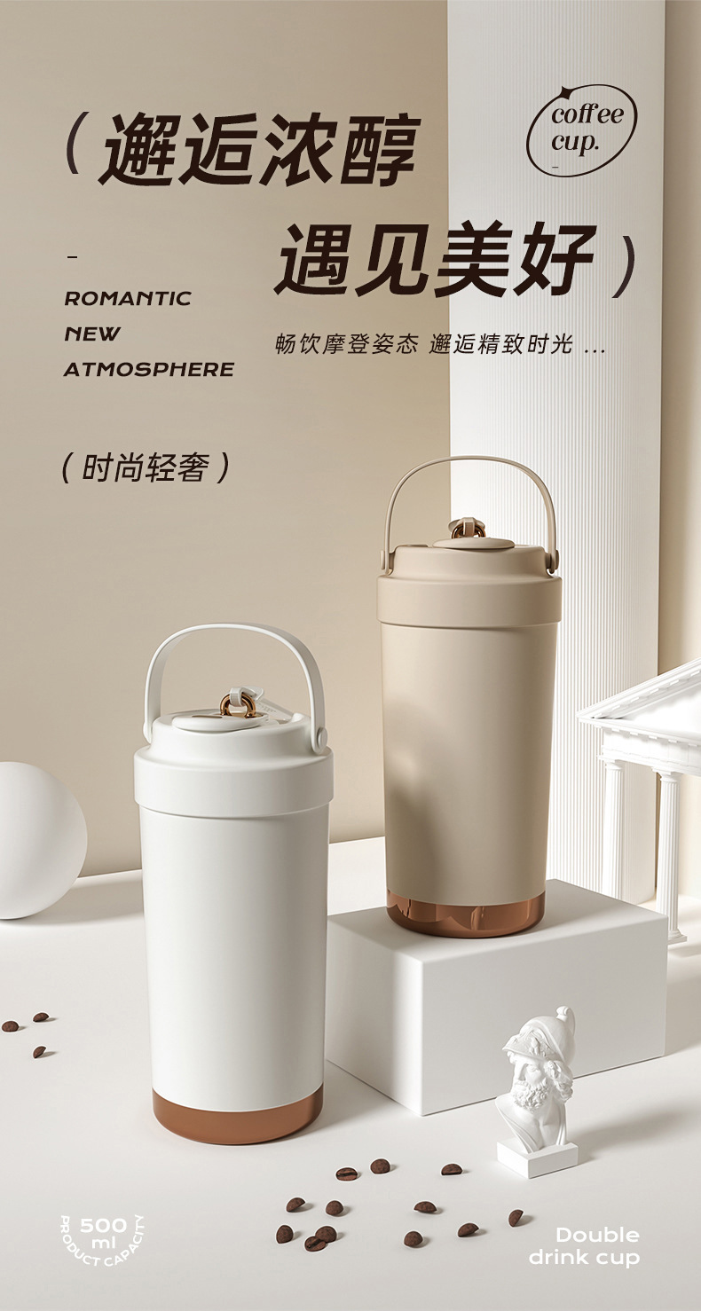 남녀공용 고급스러운 316L 커피잔, 가정용 대용량 보온병, 편리한 텀블러, 빨대가 달린 겸용 물컵