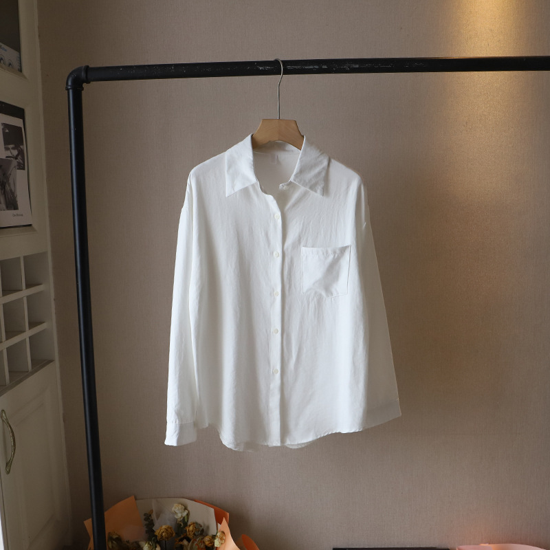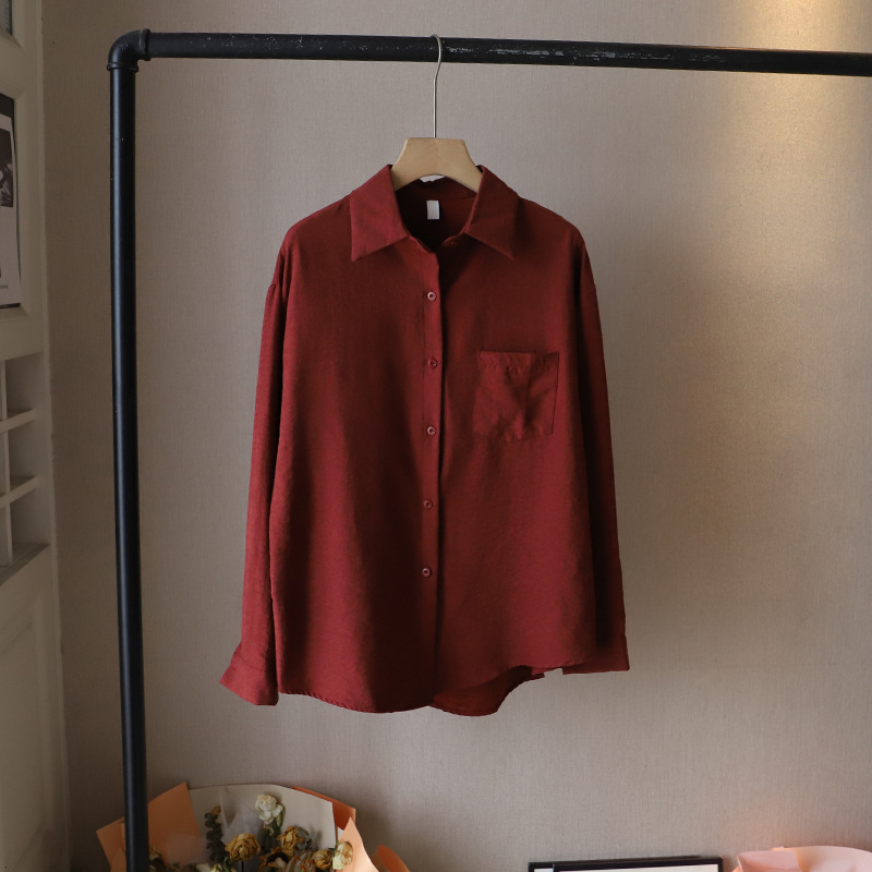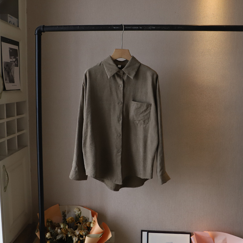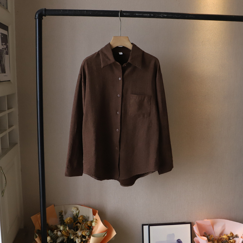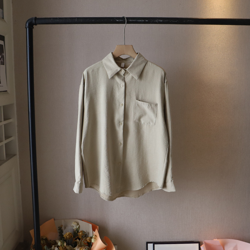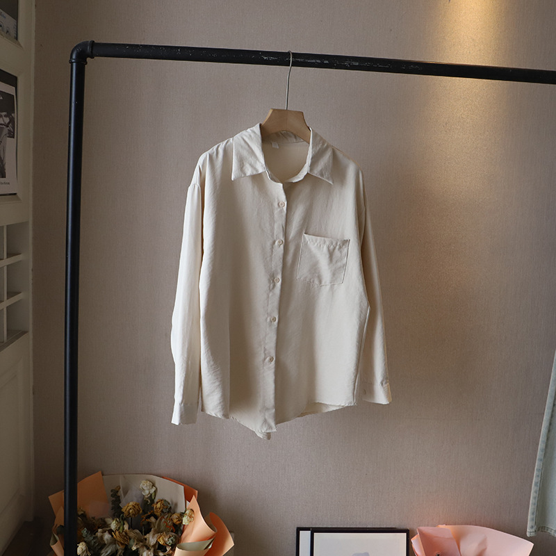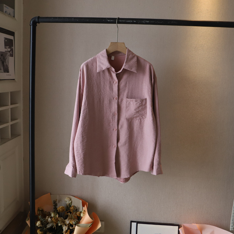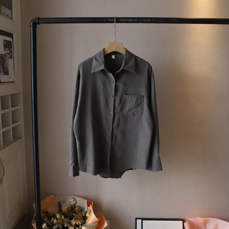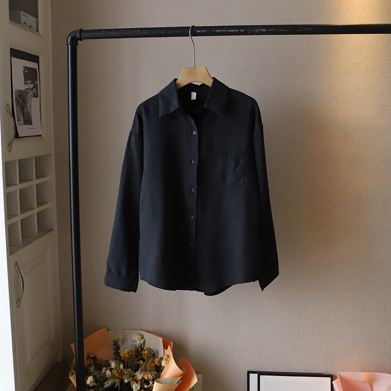 [Bizheng] 2024 가을 새 단색 긴 소매 셔츠 여성용 느슨한 캐주얼 우아한 나이 감소 조커 탑 2247