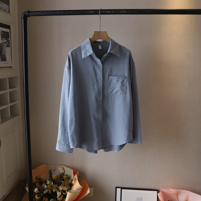 [Bizheng] 2024 가을 새 단색 긴 소매 셔츠 여성용 느슨한 캐주얼 우아한 나이 감소 조커 탑 2247스토어 가기