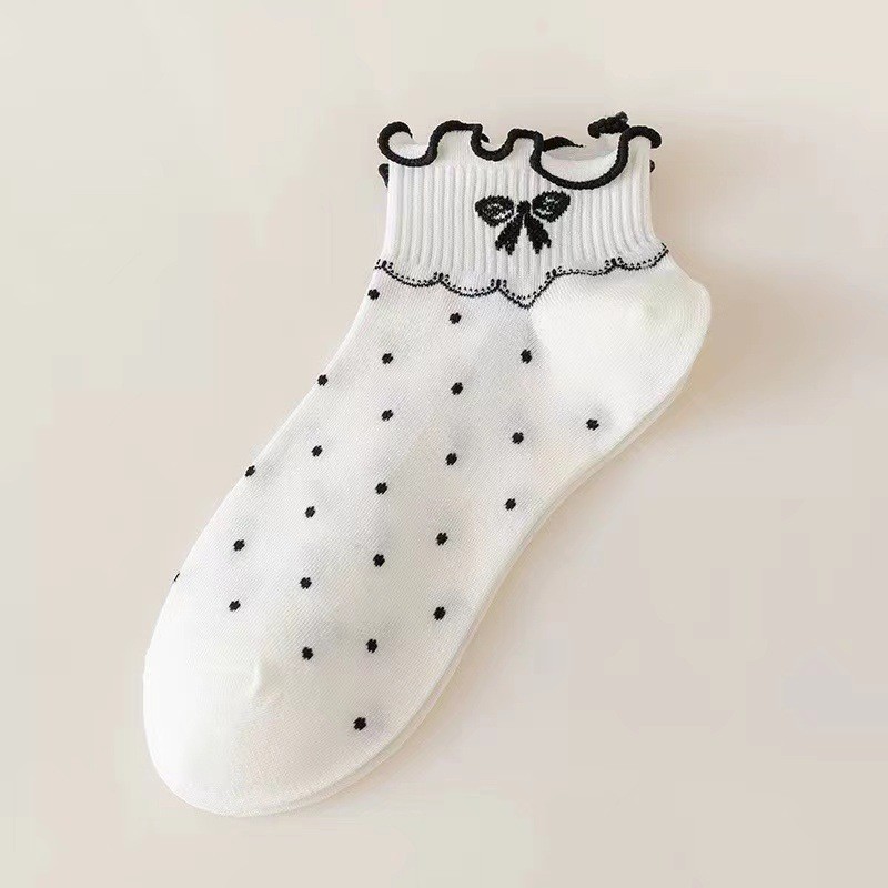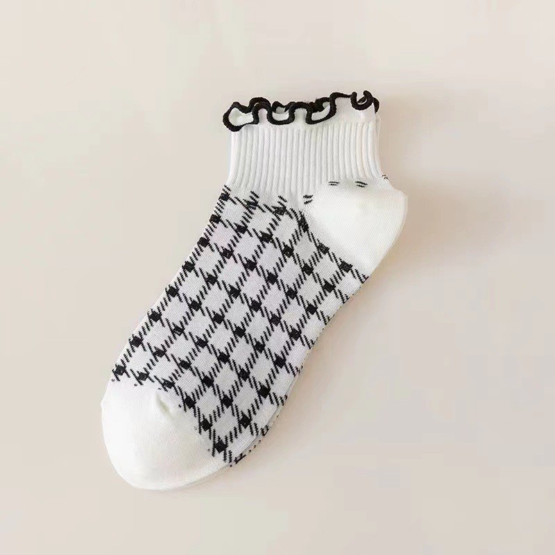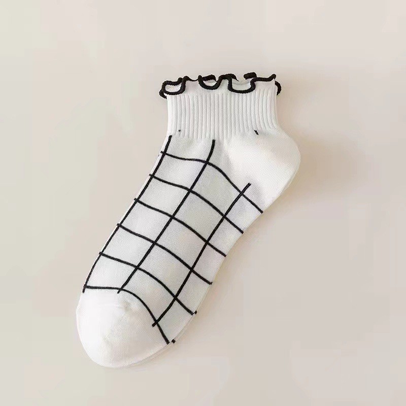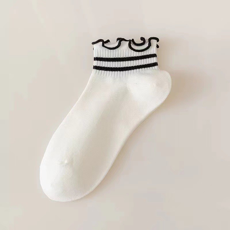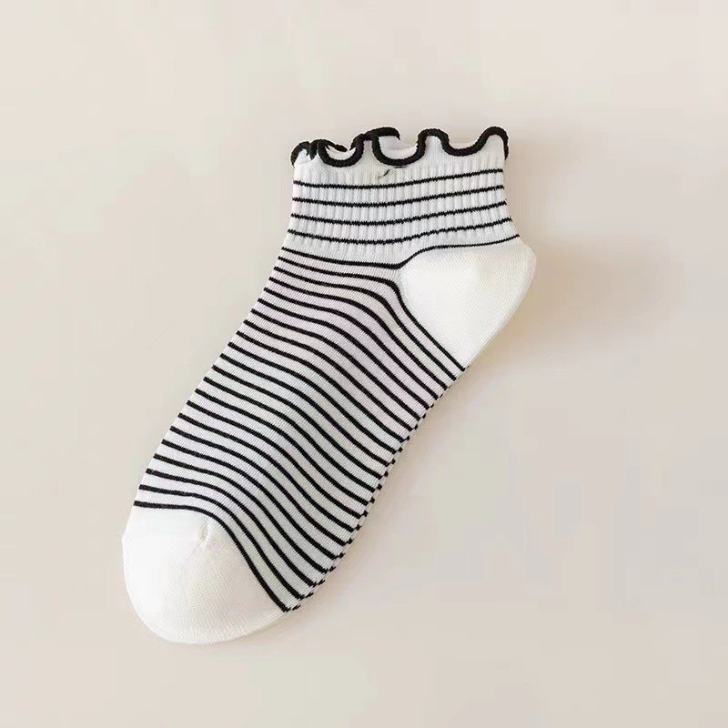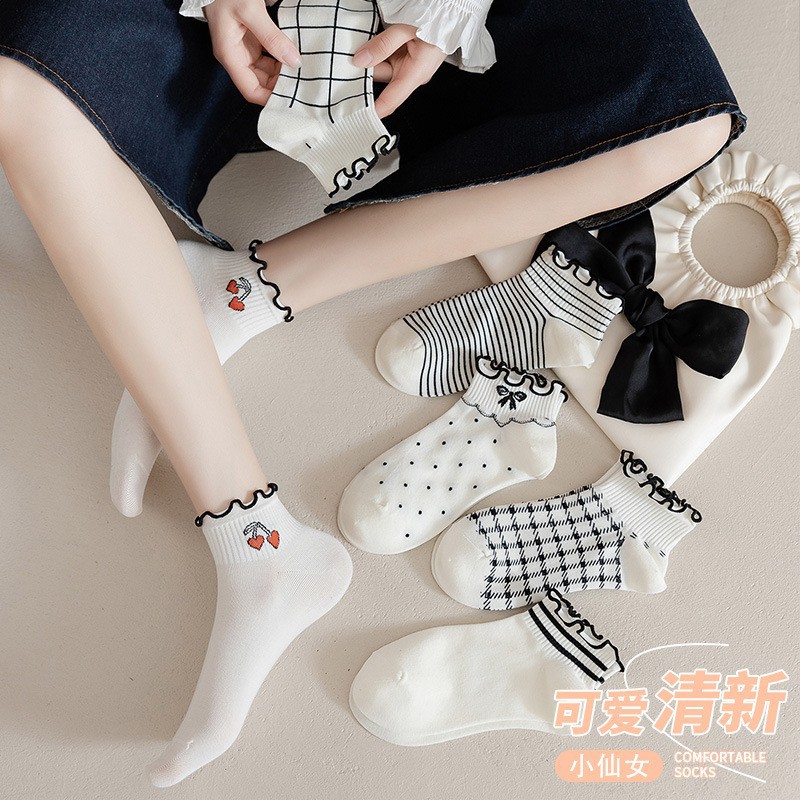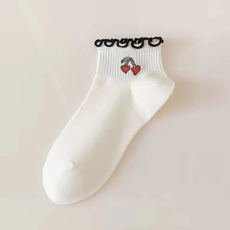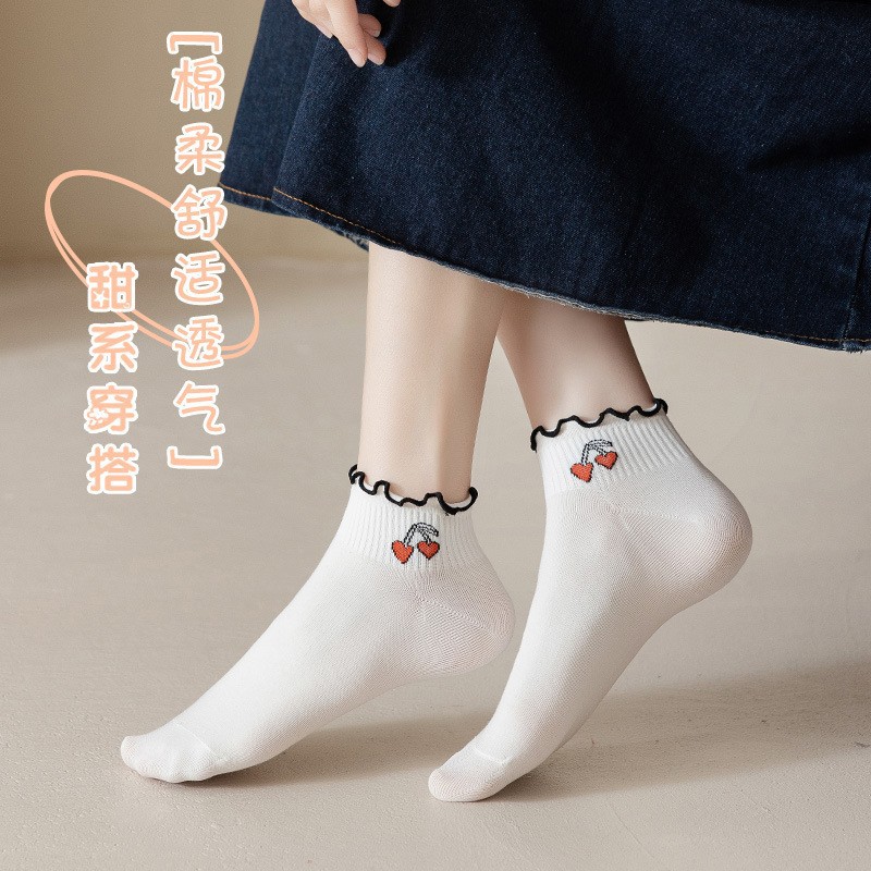 가을과 겨울 새로운 짧은 레이스 짧은 양말 공주 스타일 로우 탑 여성 양말 줄무늬 체리 솔리드 컬러 보트 양말 러플 트렌디 양말