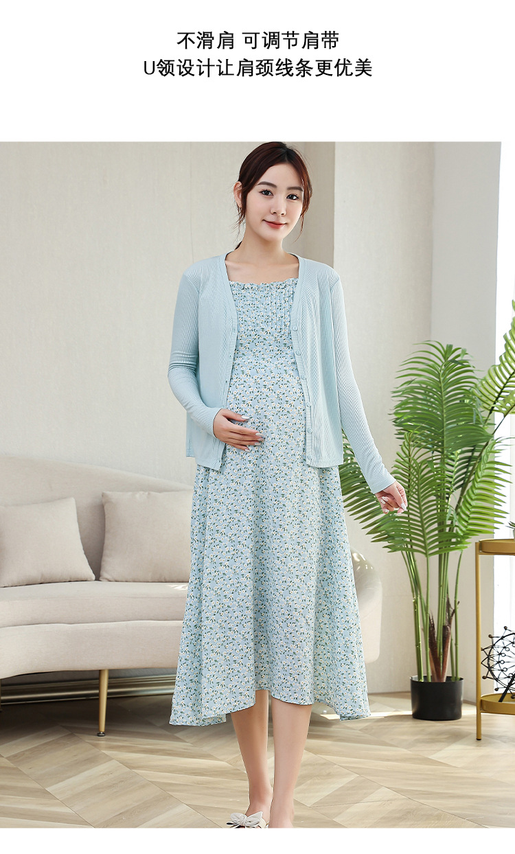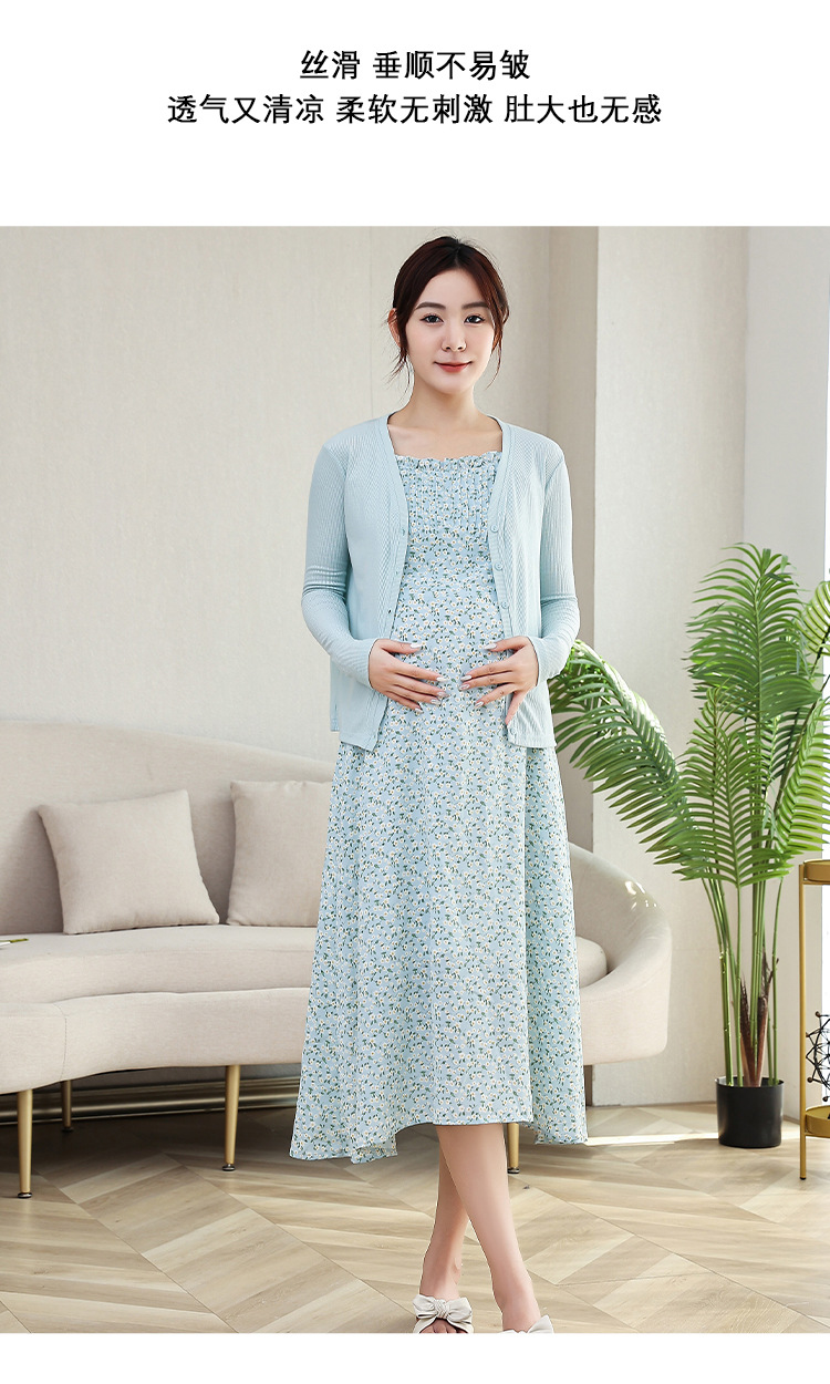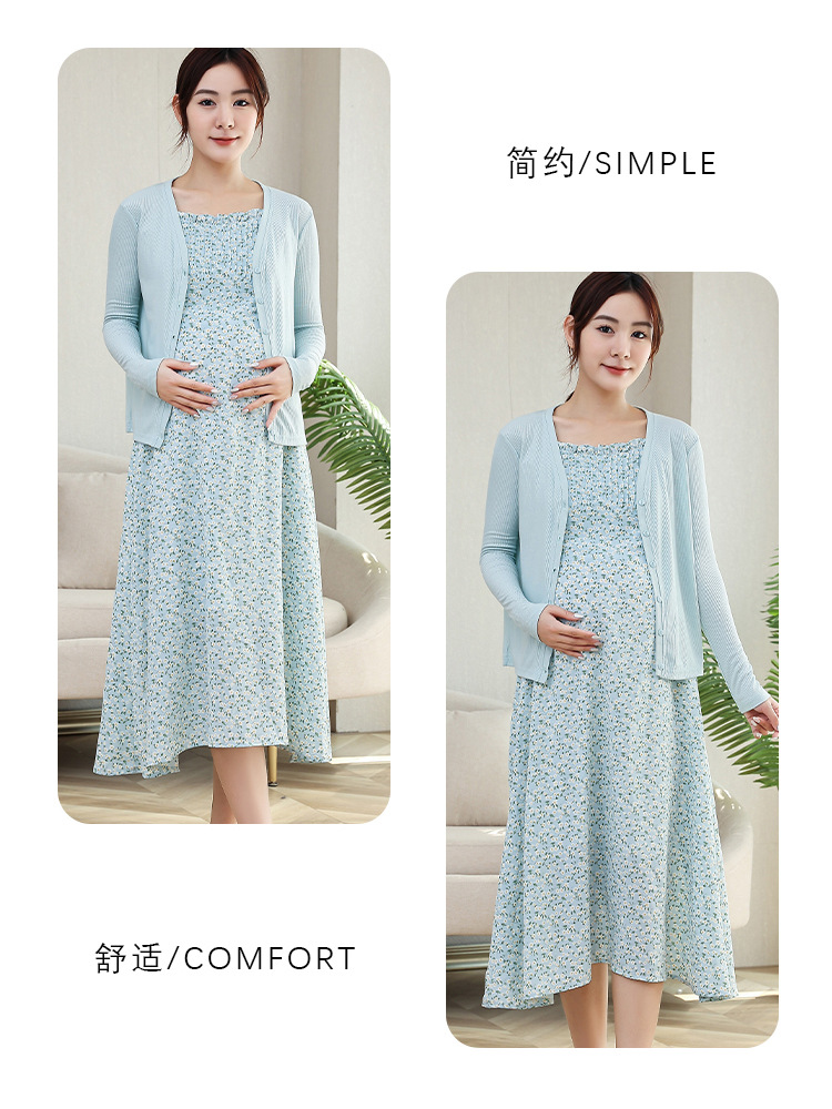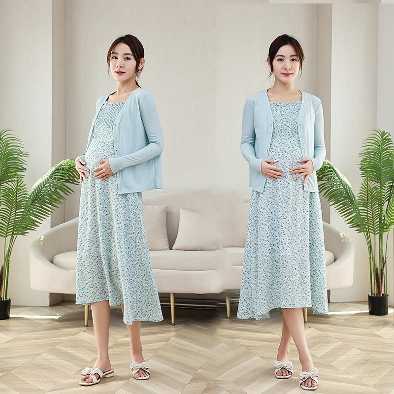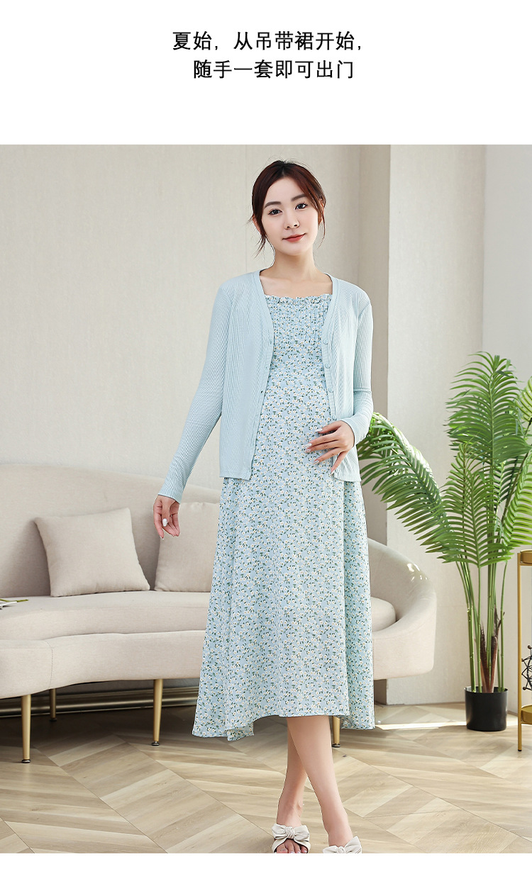 임산부 여름 투피스 세트 쉬폰 플로럴 슬립 드레스 2025 여성스럽고 달콤한 얇은 가디건 하이웨이스트 원피스스토어 가기