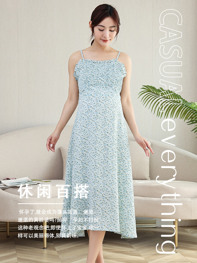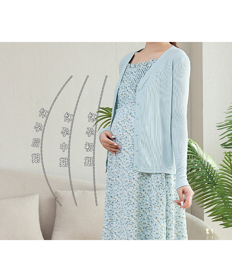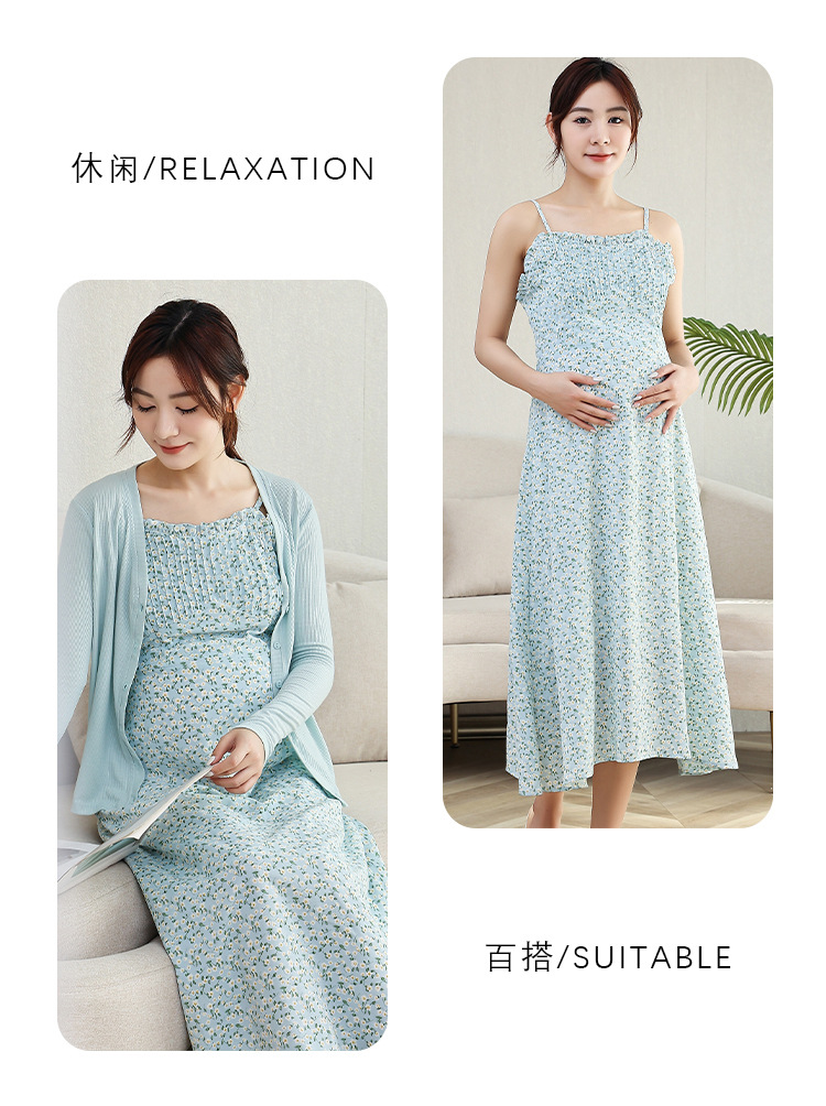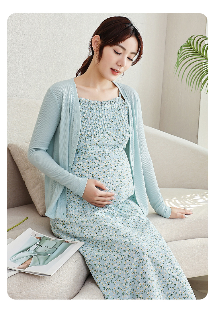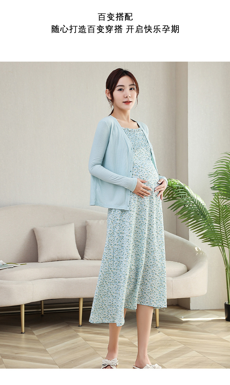 임산부 여름 투피스 세트 쉬폰 플로럴 슬립 드레스 2025 여성스럽고 달콤한 얇은 가디건 하이웨이스트 원피스스토어 가기