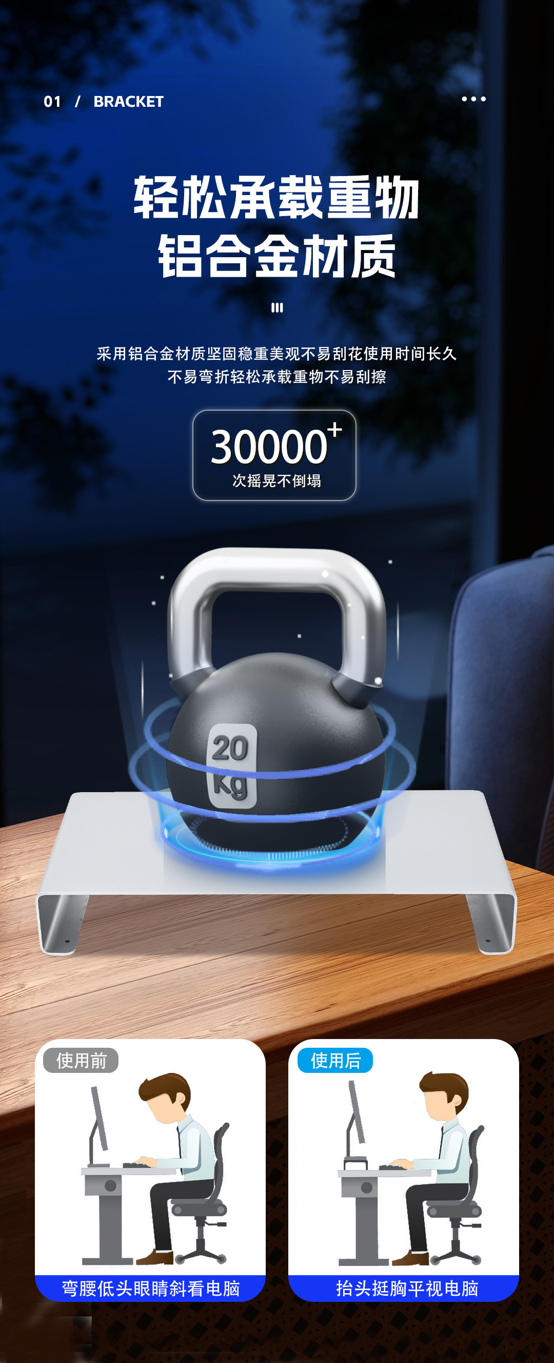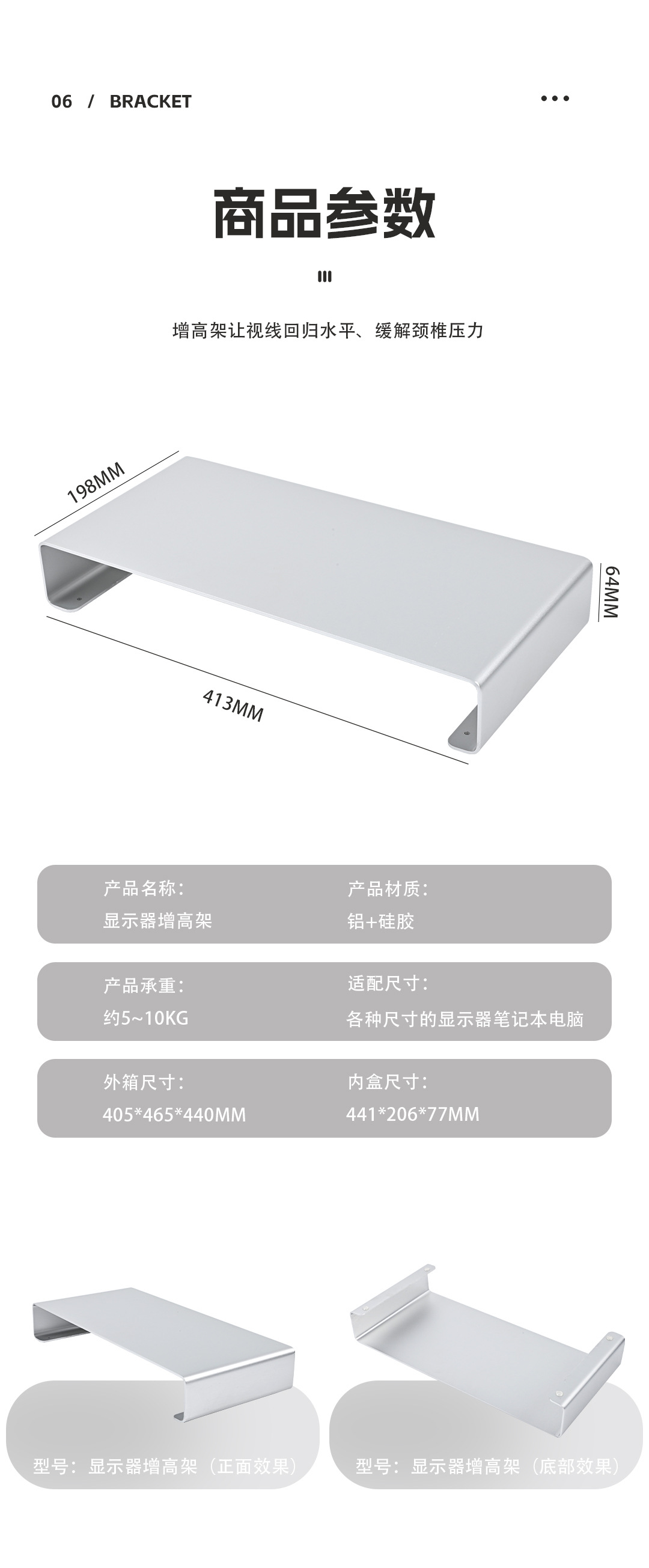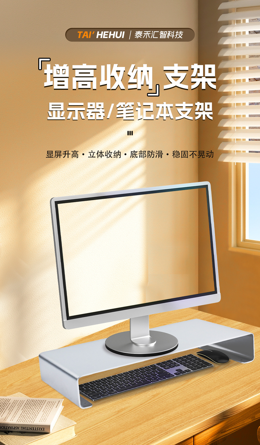 도매 컴퓨터 모니터 강화 랙 알루미늄 합금 다기능 브래킷 데스크탑 스테레오 스토리지 베이스 브래킷