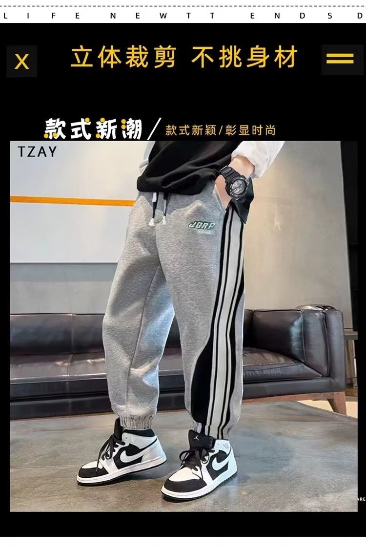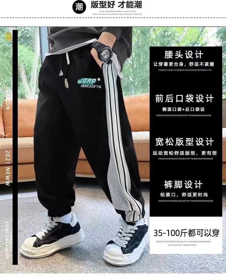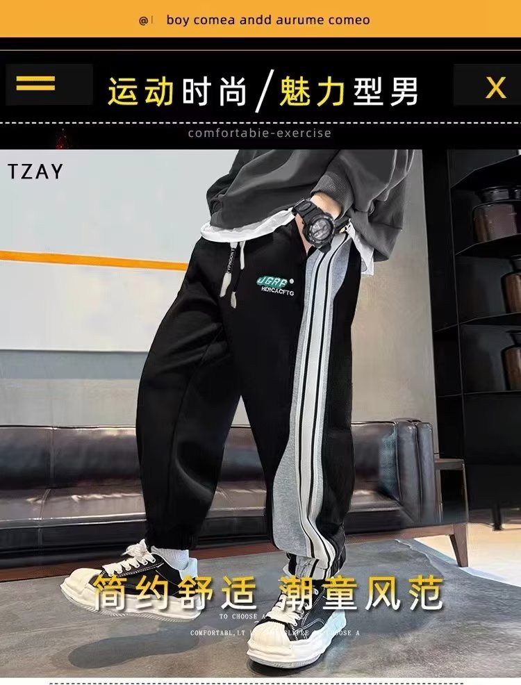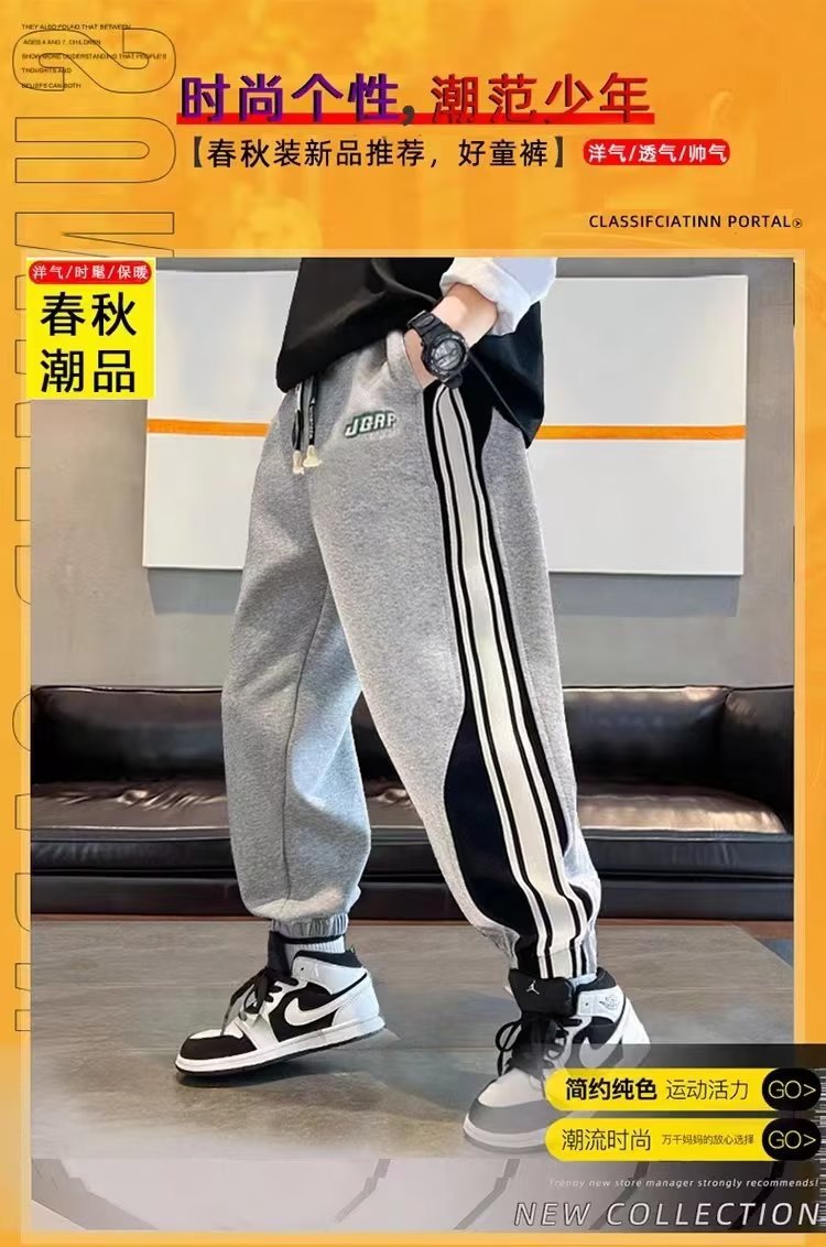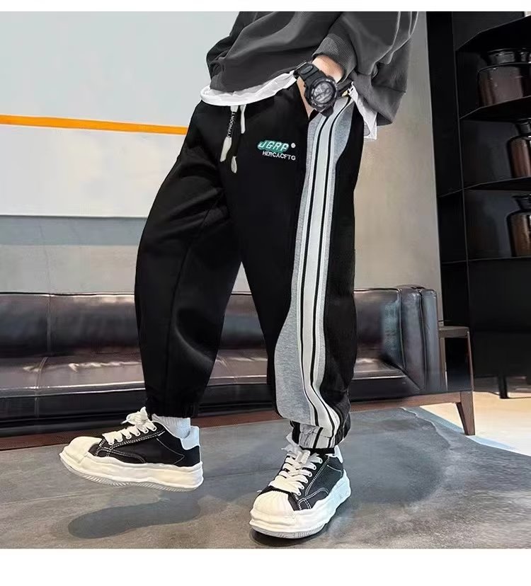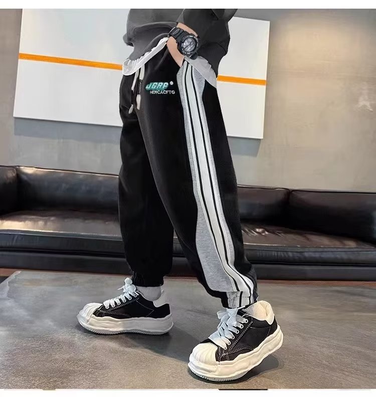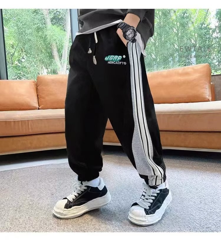 남학생 긴 바지 봄 착용 어린이 봄 가을 스포츠 바지 2024 새로운 올매치 남자 핸섬 캐주얼 트렌디 스웨트 팬츠