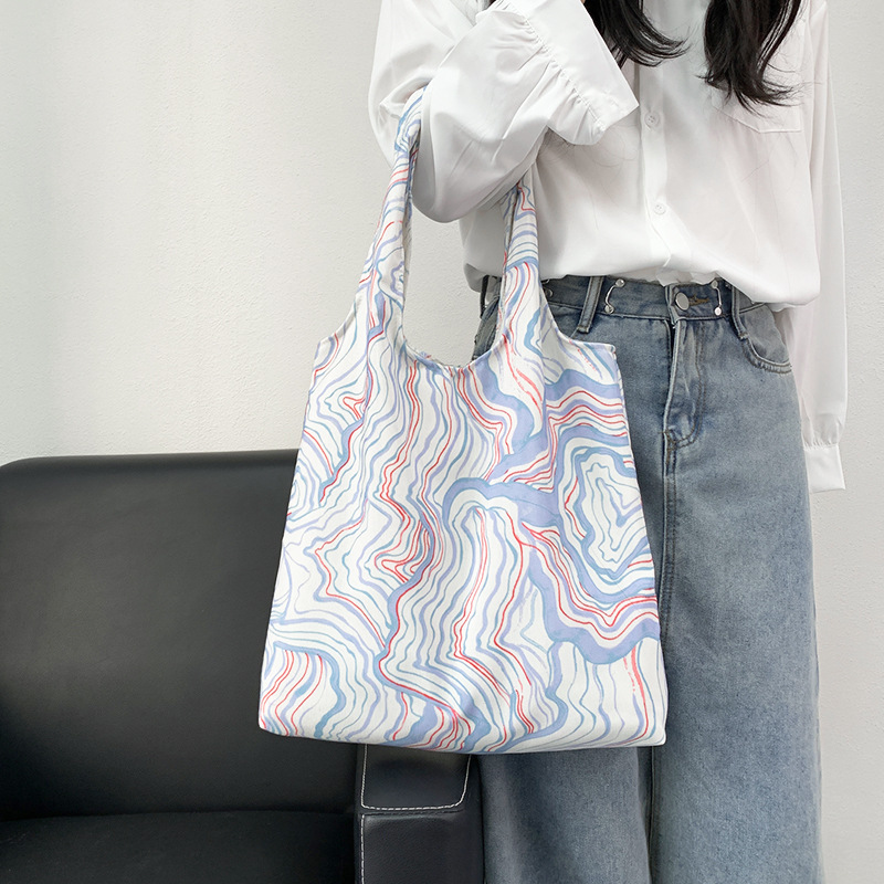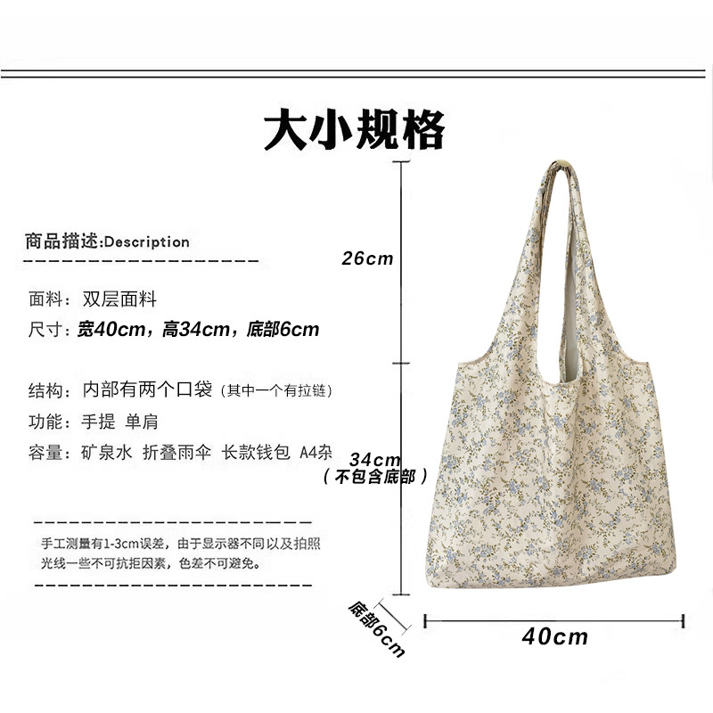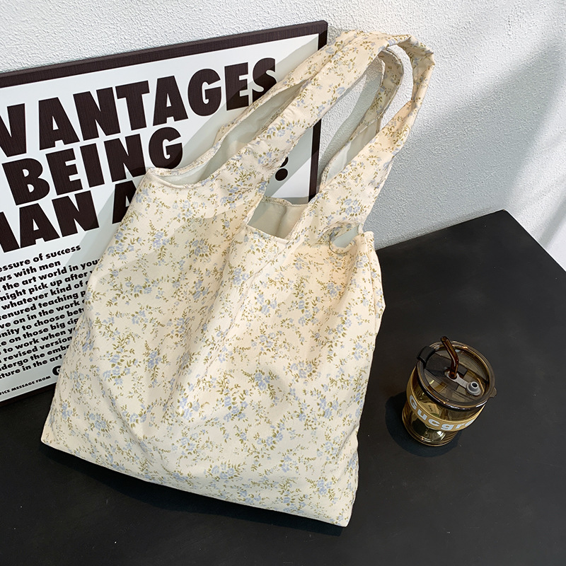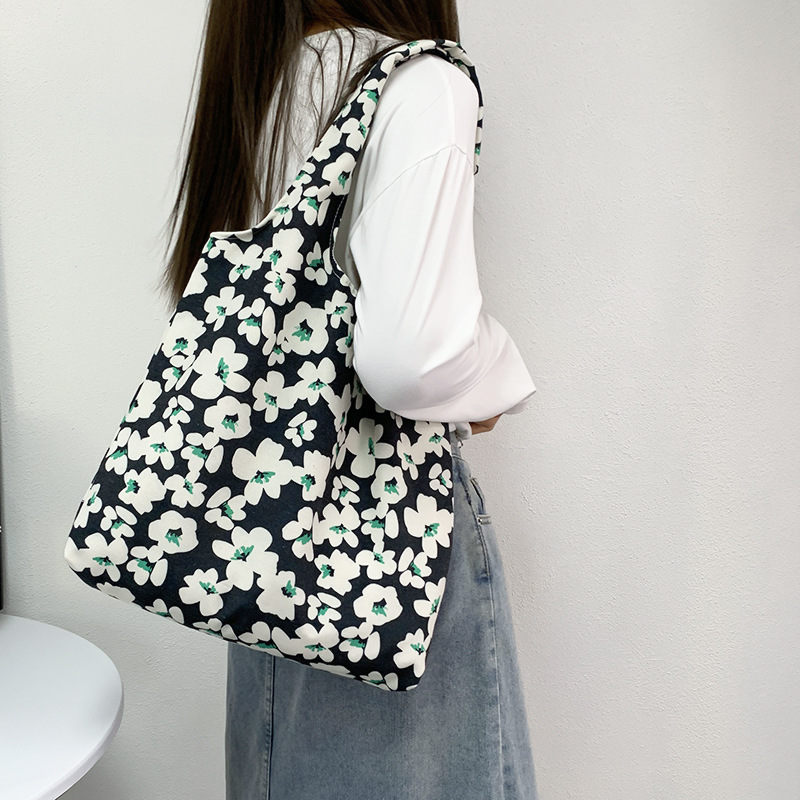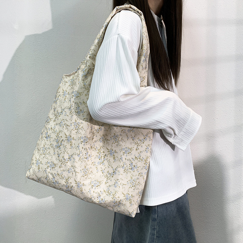 여름 한국식 인 빈티지 유화 작은 꽃 무늬 캔버스 가방 요정 어깨 휴대용 대용량 베스파스토어 가기