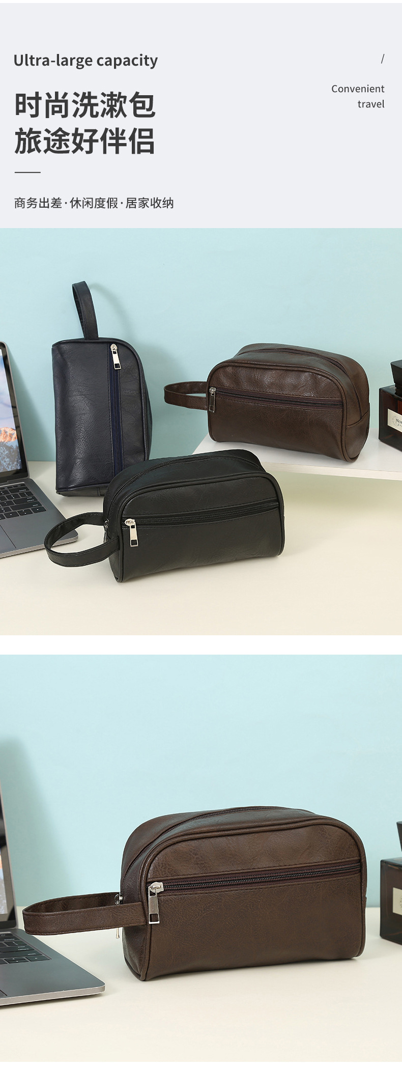 남성용 PU 나무껍질 무늬 가죽 여행 세면도구 가방 수납 가방 출장 방수 휴대용 대용량 비즈니스 핸드백