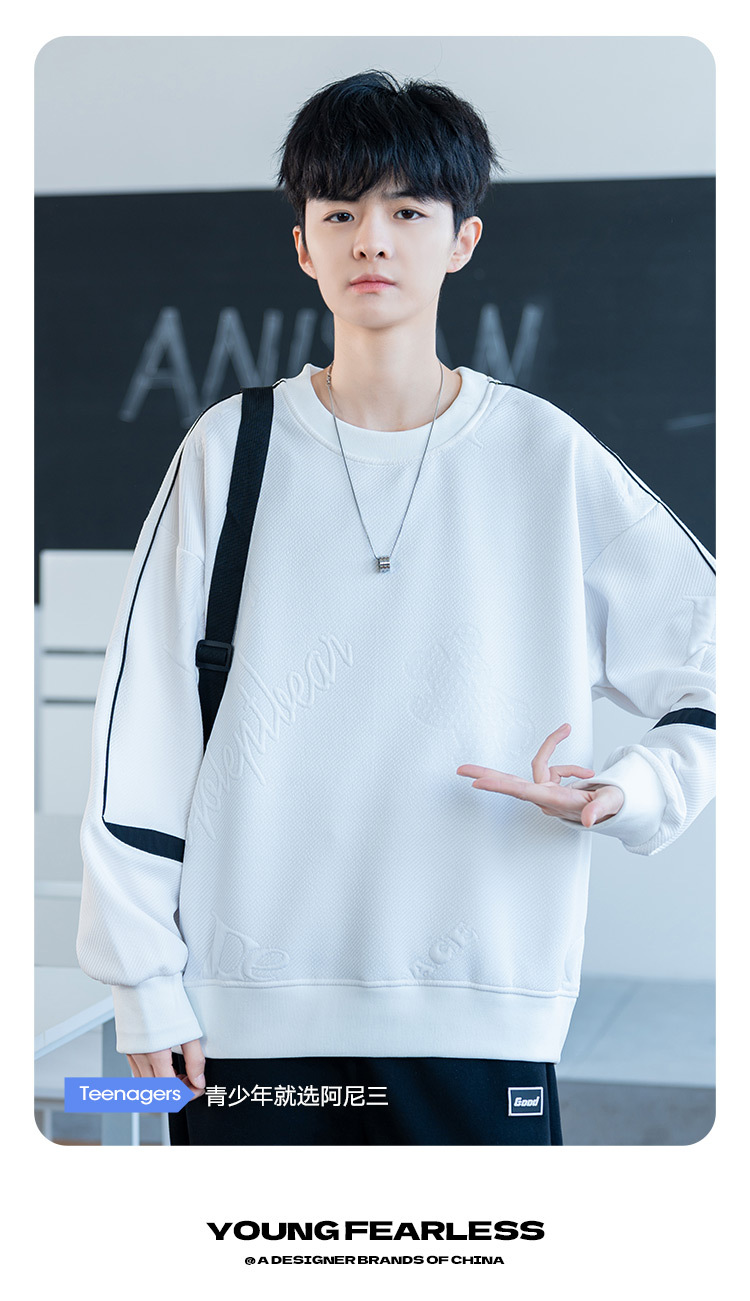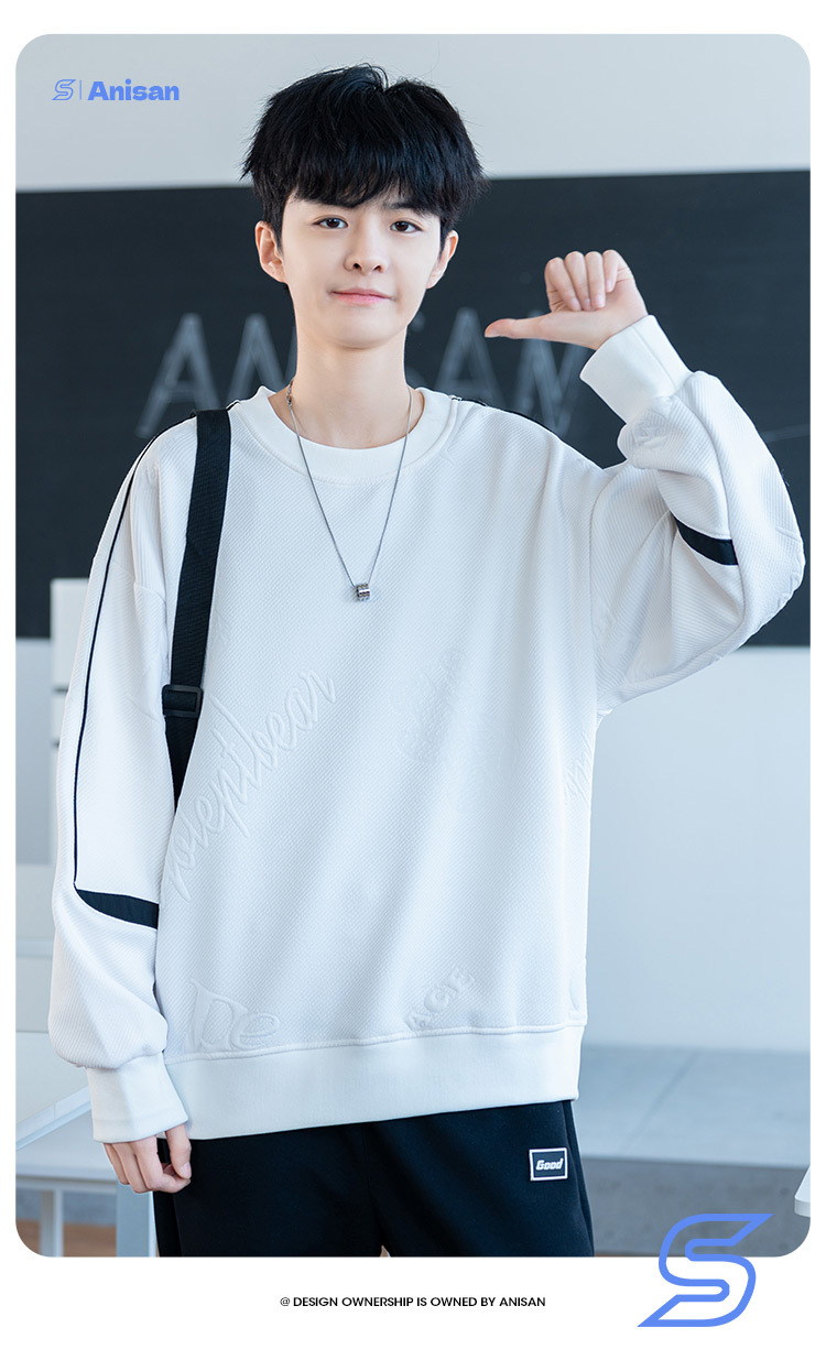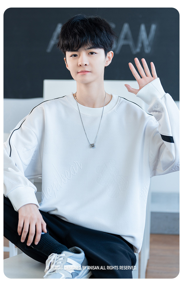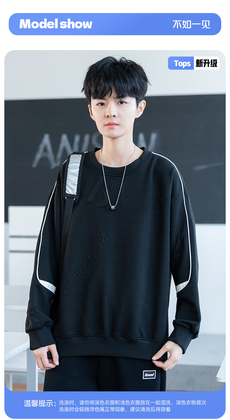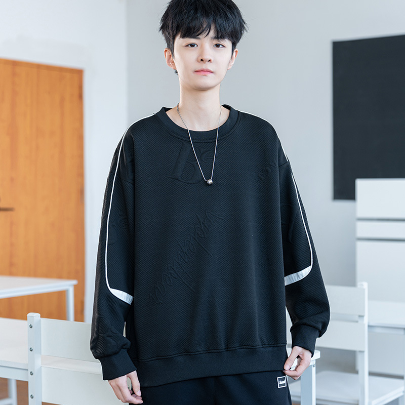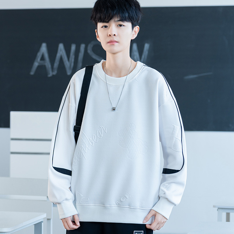 남자 2024 새 라운드 넥 스웨터 재킷 남자 10 대 핸섬 중학교 고등학교 고등학생 트렌디베이스 셔츠