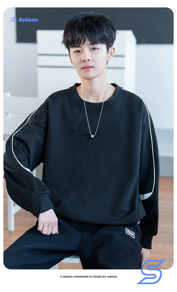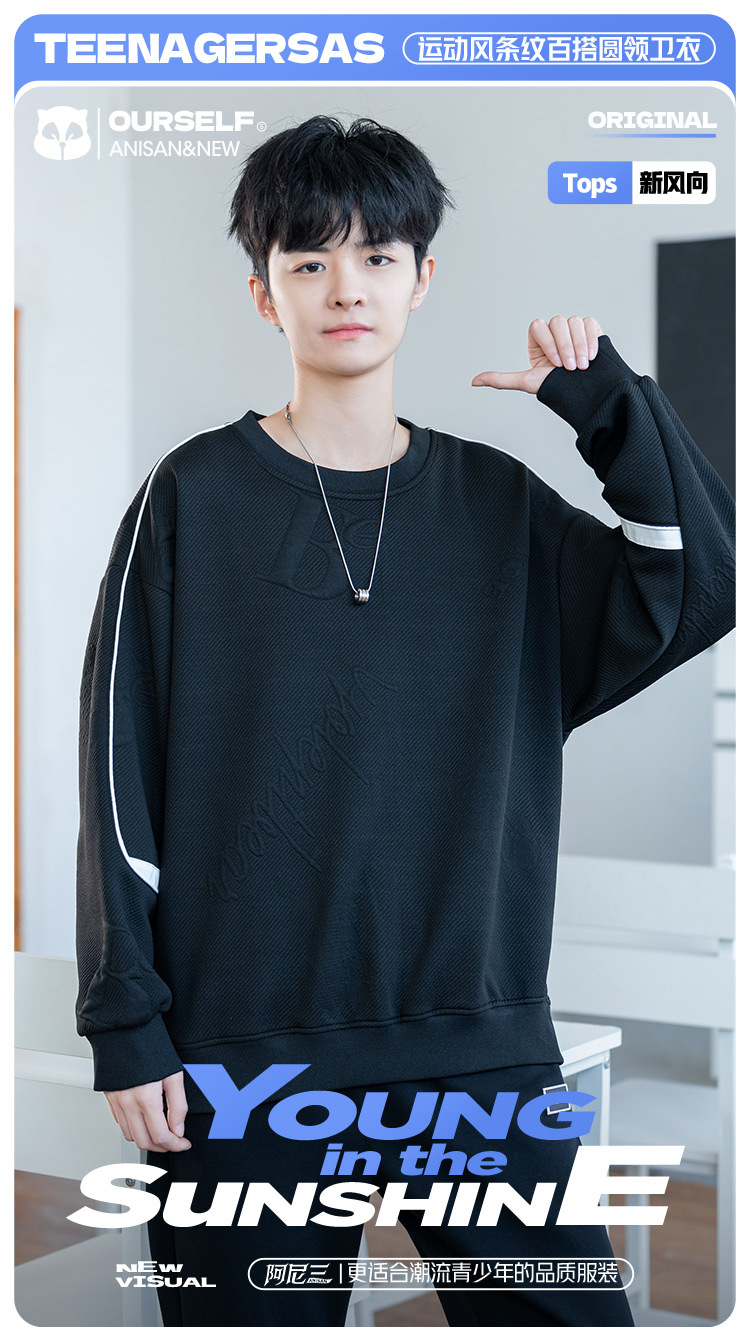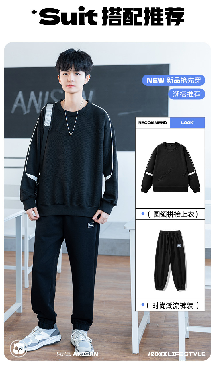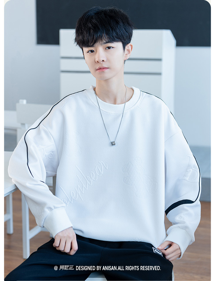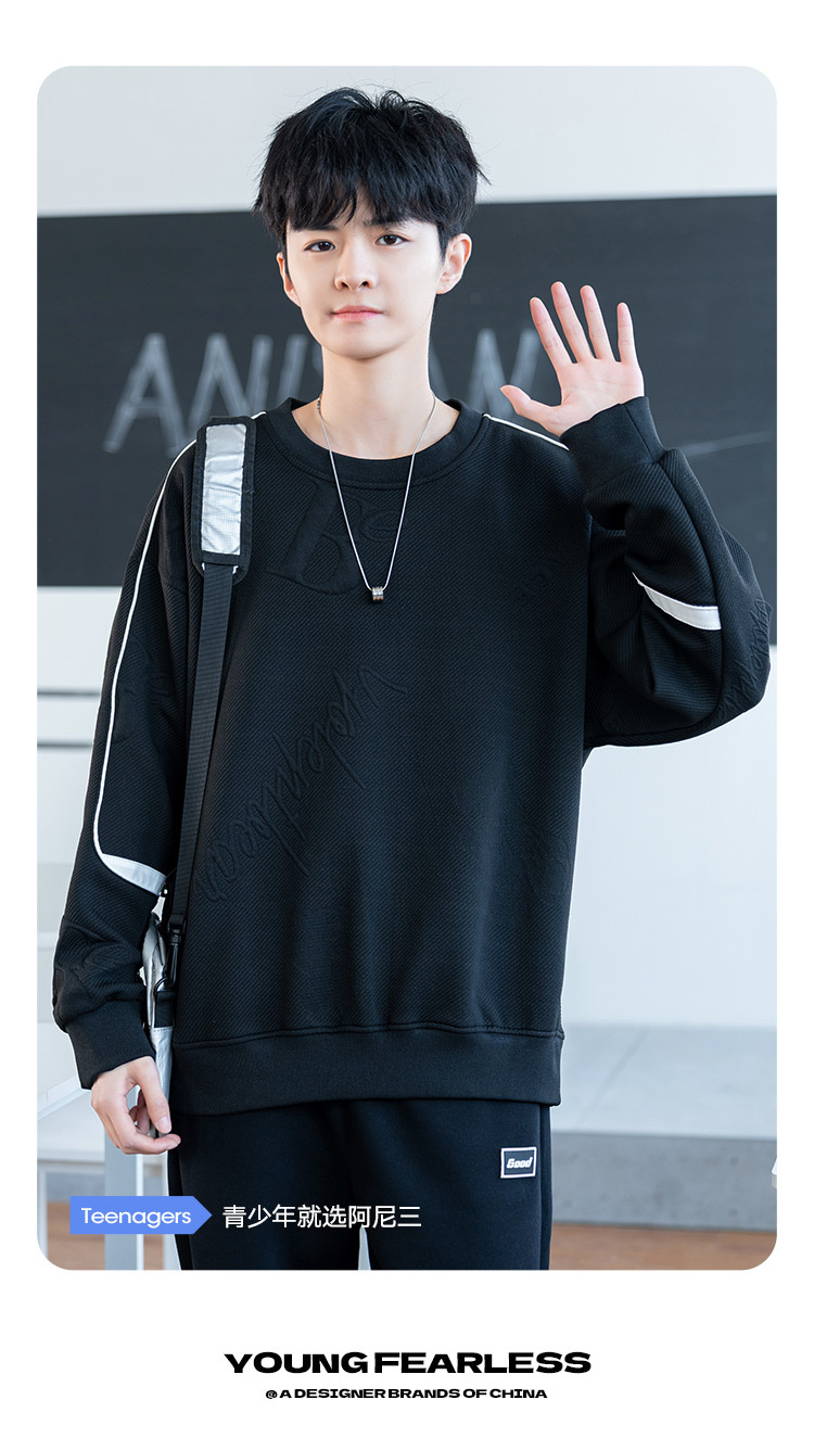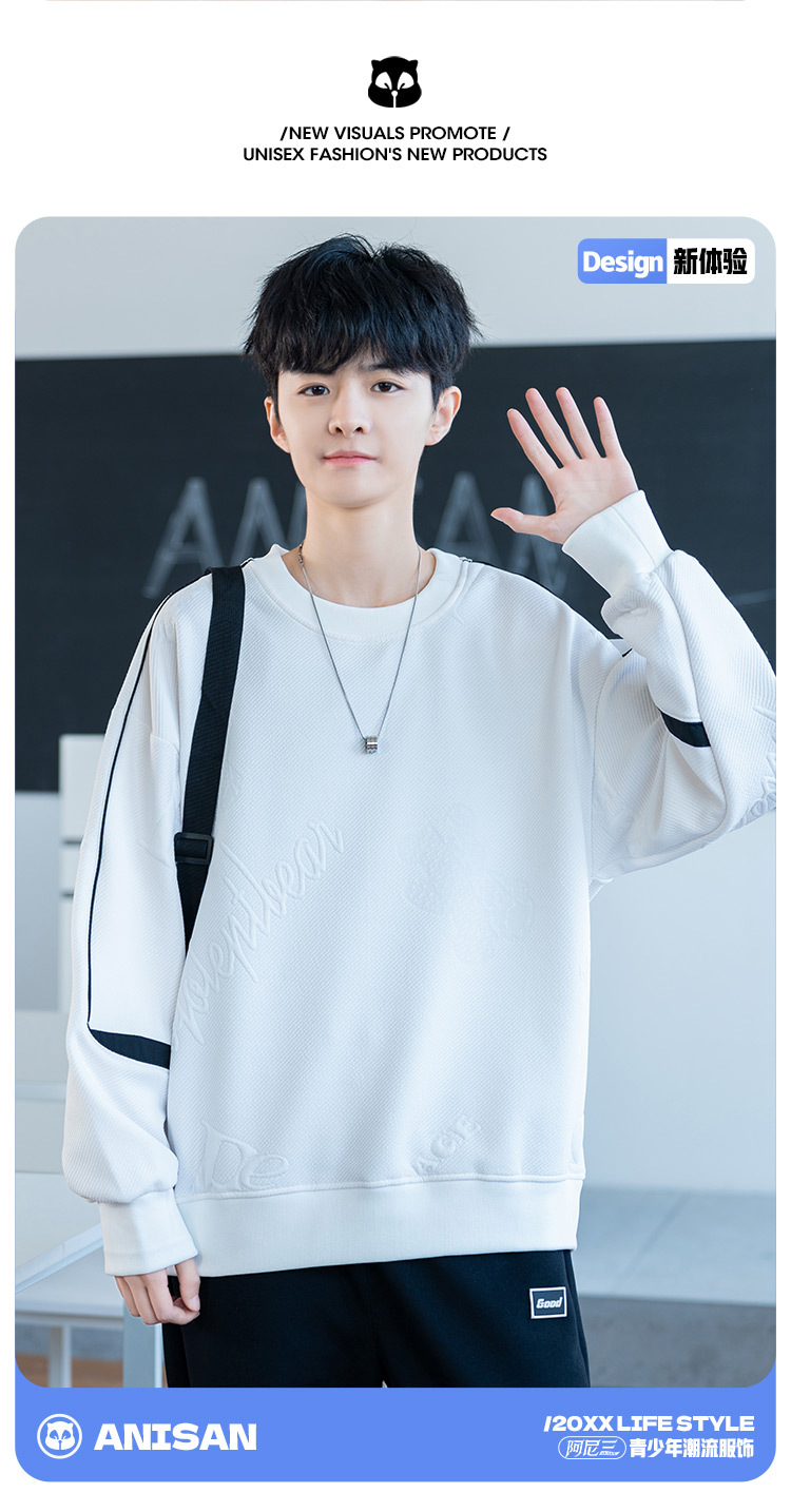 남자 2024 새 라운드 넥 스웨터 재킷 남자 10 대 핸섬 중학교 고등학교 고등학생 트렌디베이스 셔츠