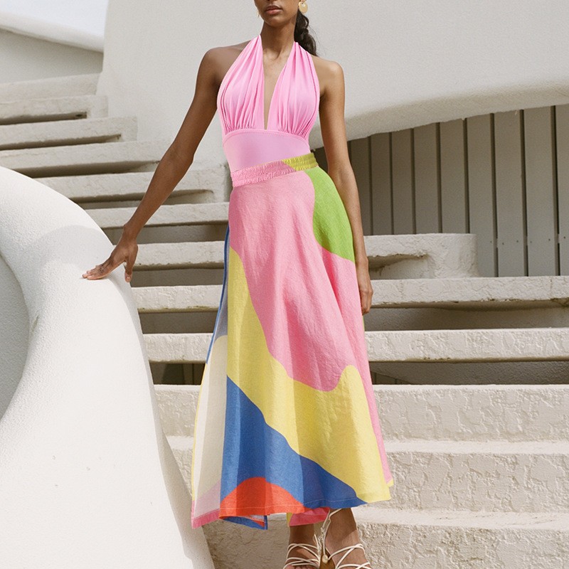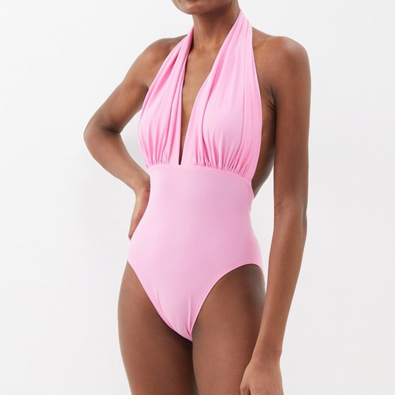 2024 국경 유럽 및 미국 새로운 원피스 수영복 깊은 V 넥 백리스 섹시한 수영복 온천 해변 세트 여성
