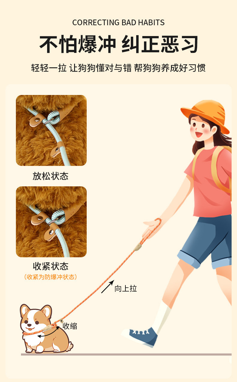 개 로프 폭발 방지 러시 P 체인 도보 개 견인 밧줄로 무료 개 로프 중견 폭발 방지 러시 도그 로프스토어 가기
