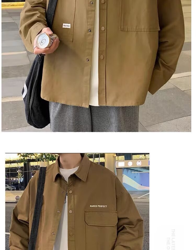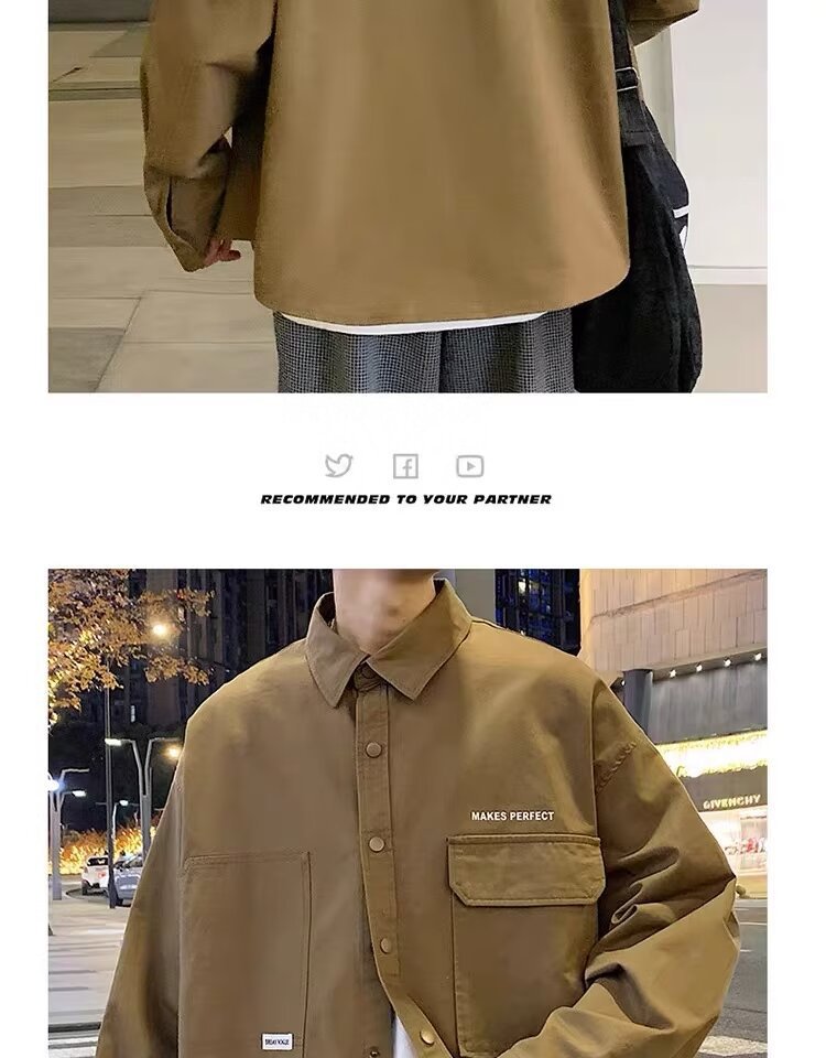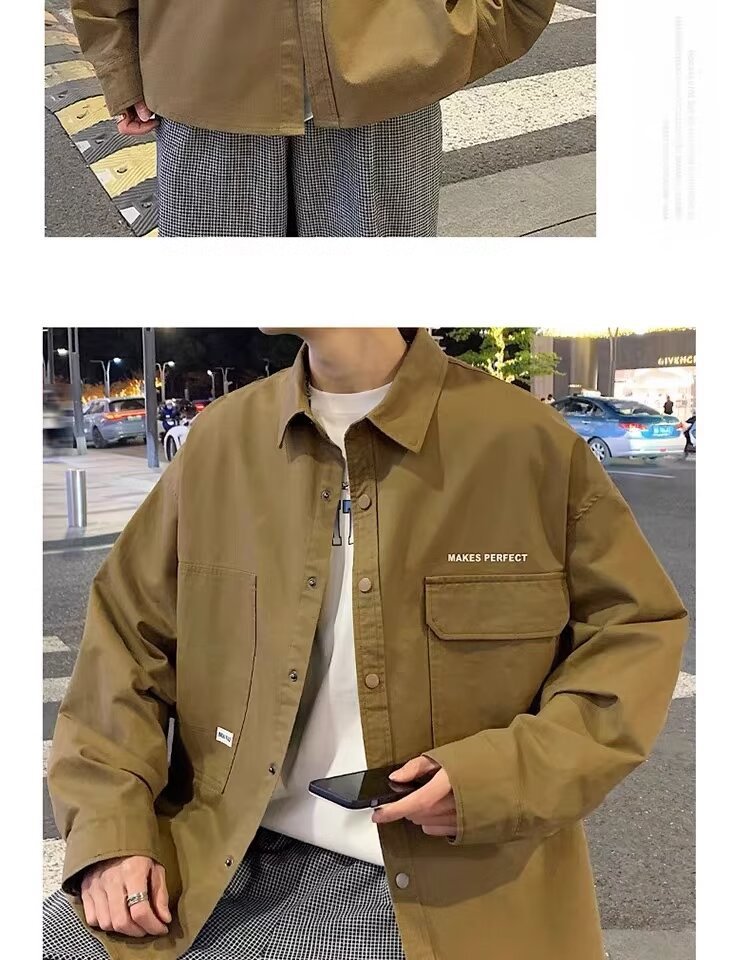 작업복 긴팔 셔츠 남자의 봄과 가을 새로운 패션 브랜드 홍콩 스타일 느슨한 카디건 재킷 주니어 캐주얼 자켓스토어 가기