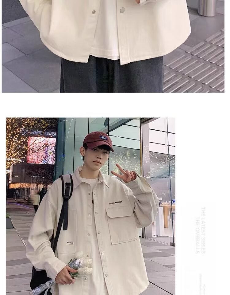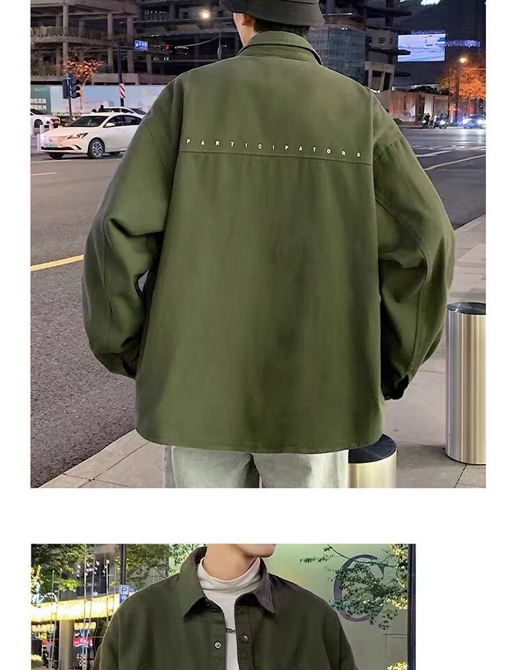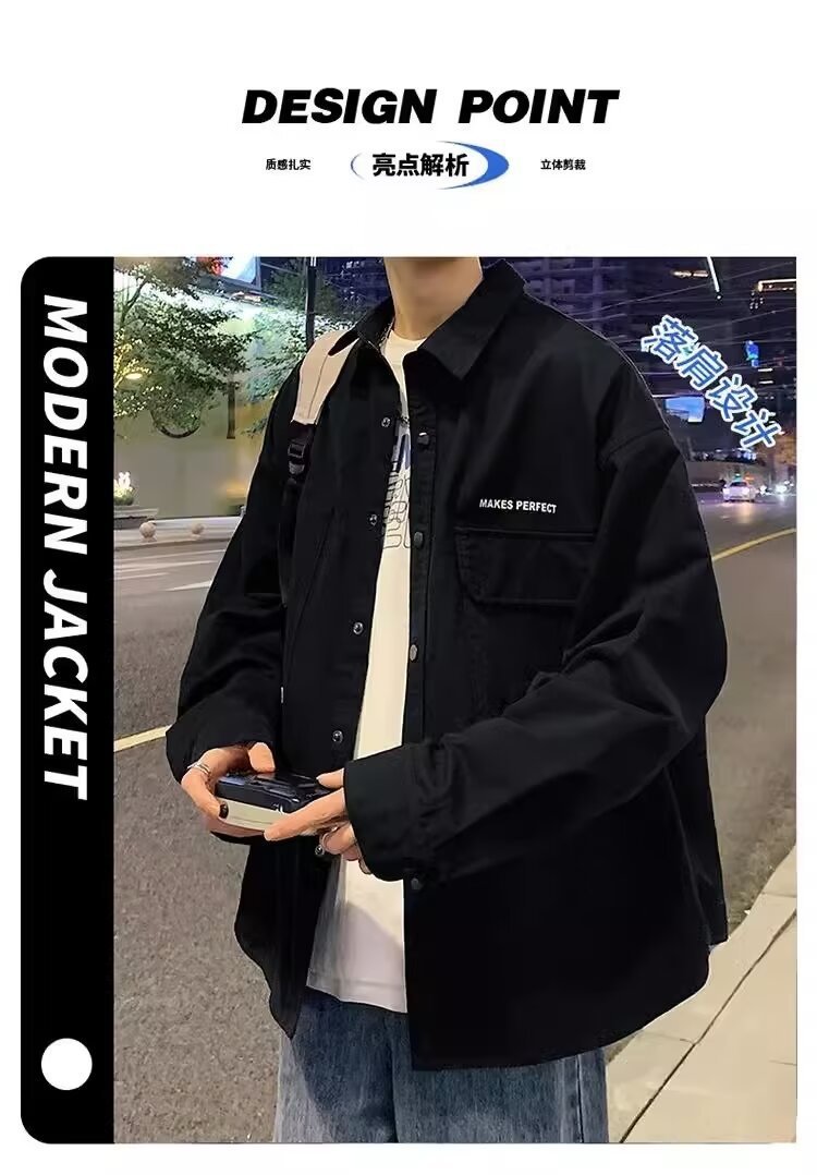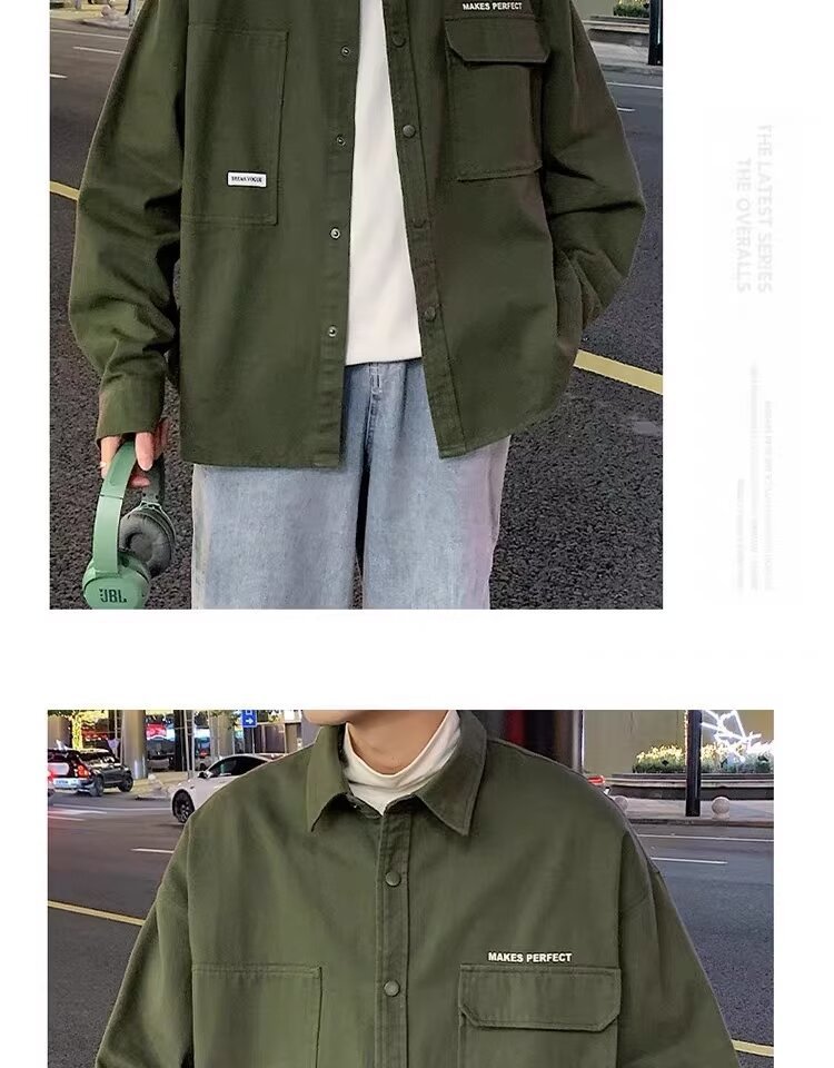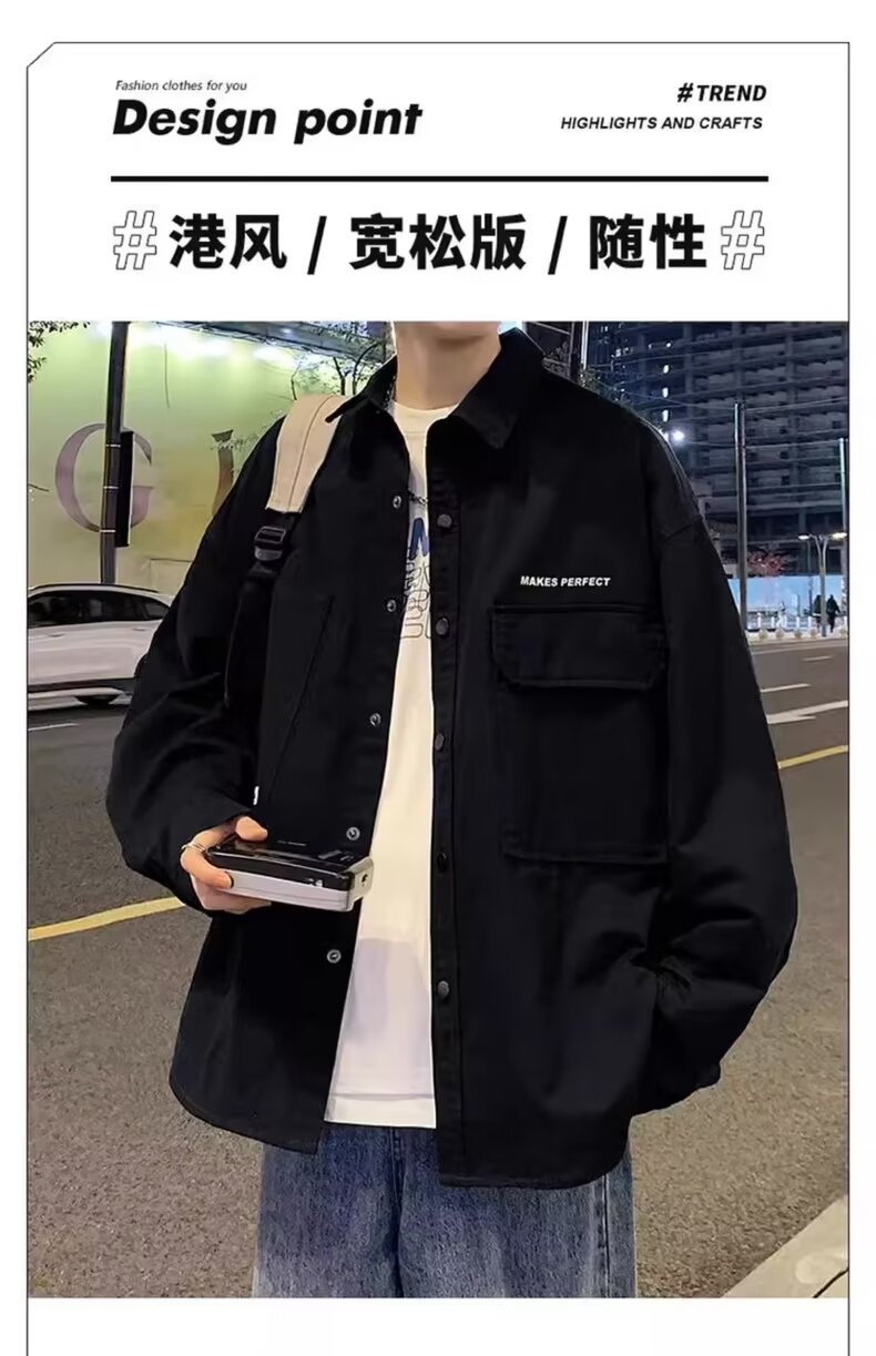 작업복 긴팔 셔츠 남자의 봄과 가을 새로운 패션 브랜드 홍콩 스타일 느슨한 카디건 재킷 주니어 캐주얼 자켓
