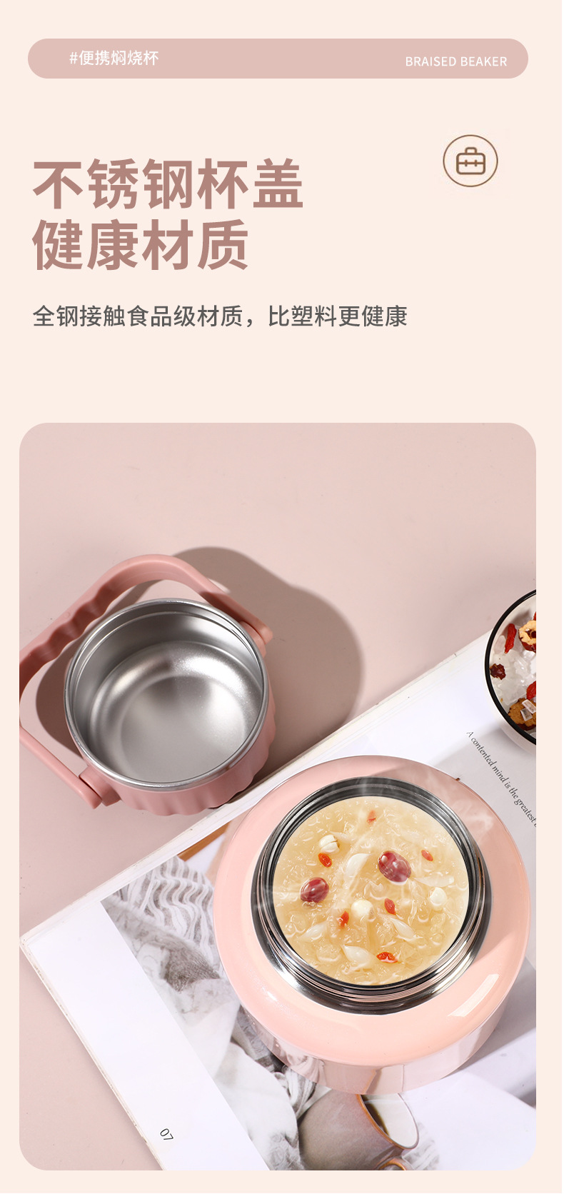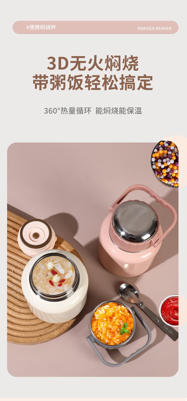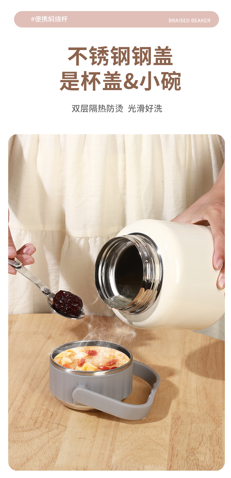 새로운 연기가 나는 항아리 316 스테인레스 스틸 찐 비커 대용량 보온병 컵 열 보존 죽 도시락 비즈니스 선물 로고스토어 가기