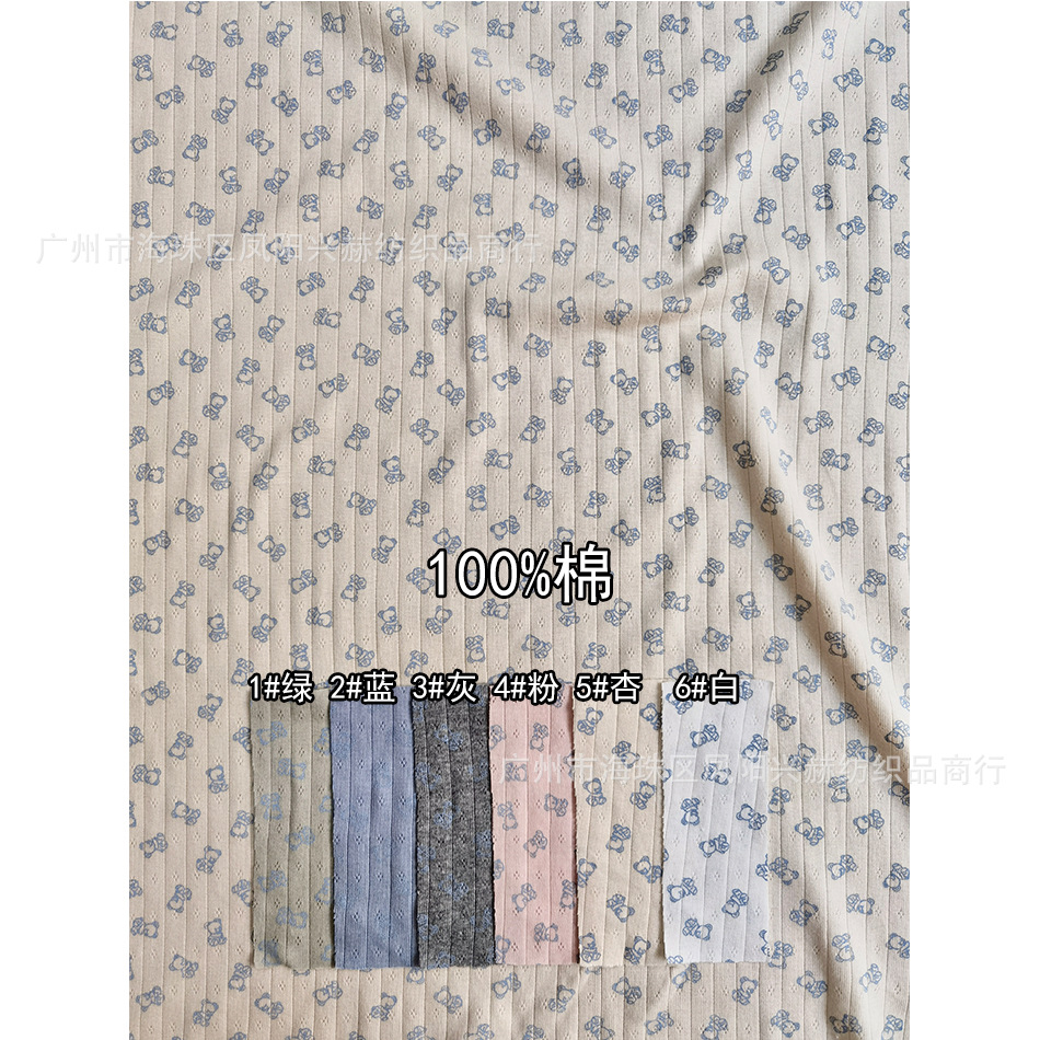 Bm 속이 빈 100% 면화 전송 자카드 니트 패브릭 곰 프린트 패브릭 아동복 여성용 서스펜더 탑스토어 가기