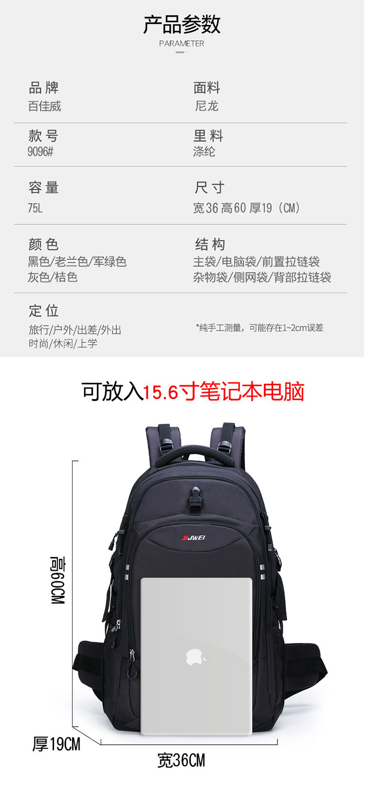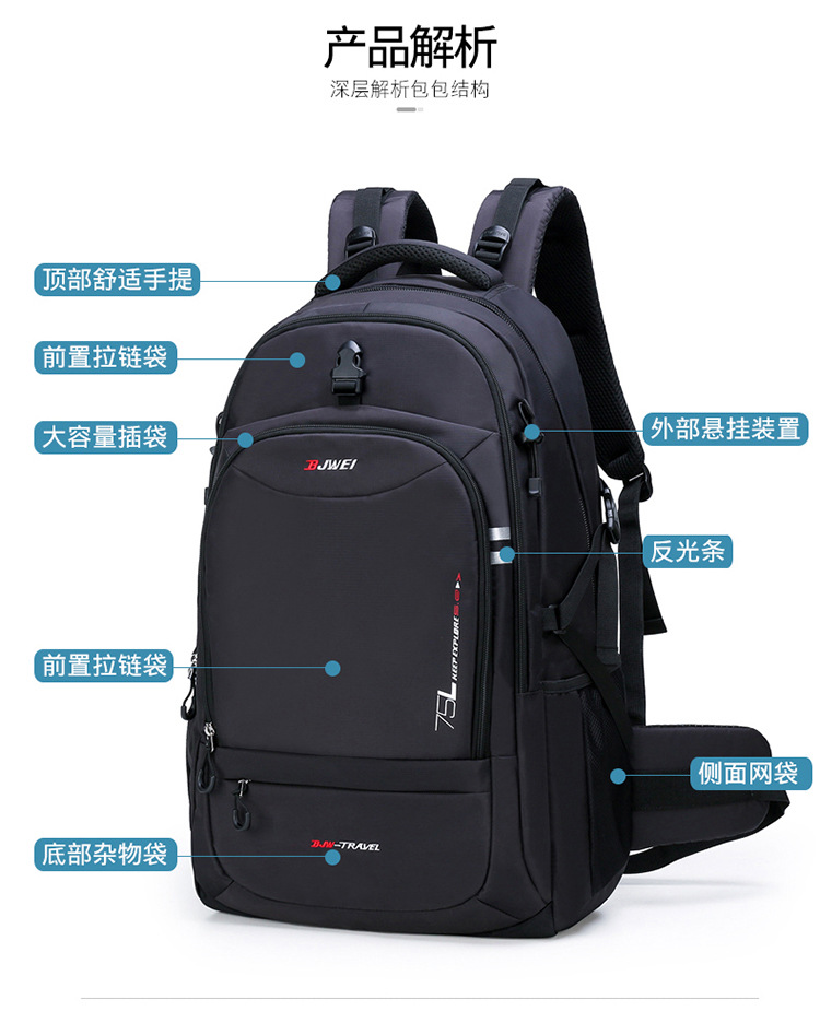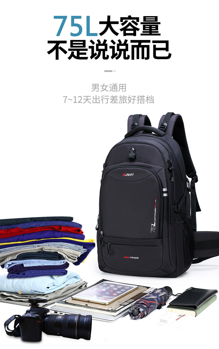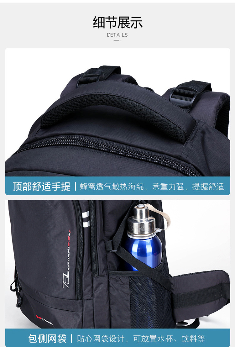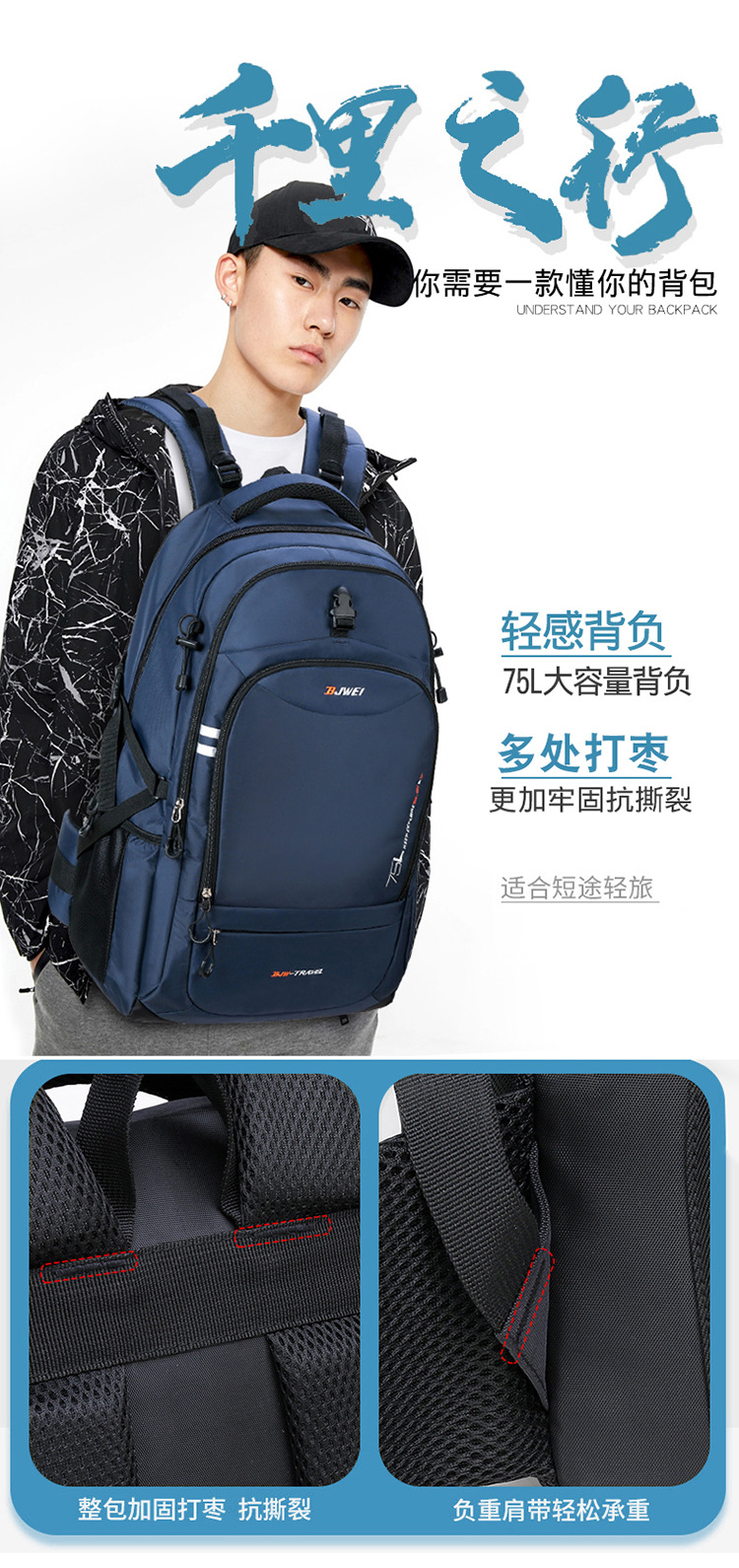 75L 대용량 야외 방수 및 내마모성 등산 가방 남성용 스포츠 초경량 옥스포드 천 다기능 여행 가방 하이킹