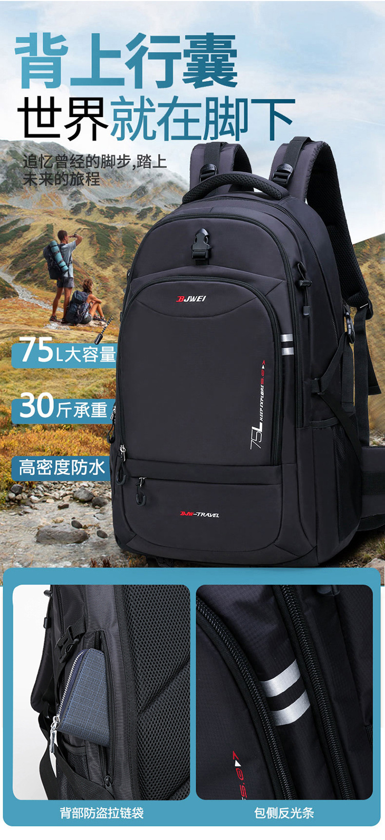 75L 대용량 야외 방수 및 내마모성 등산 가방 남성용 스포츠 초경량 옥스포드 천 다기능 여행 가방 하이킹스토어 가기