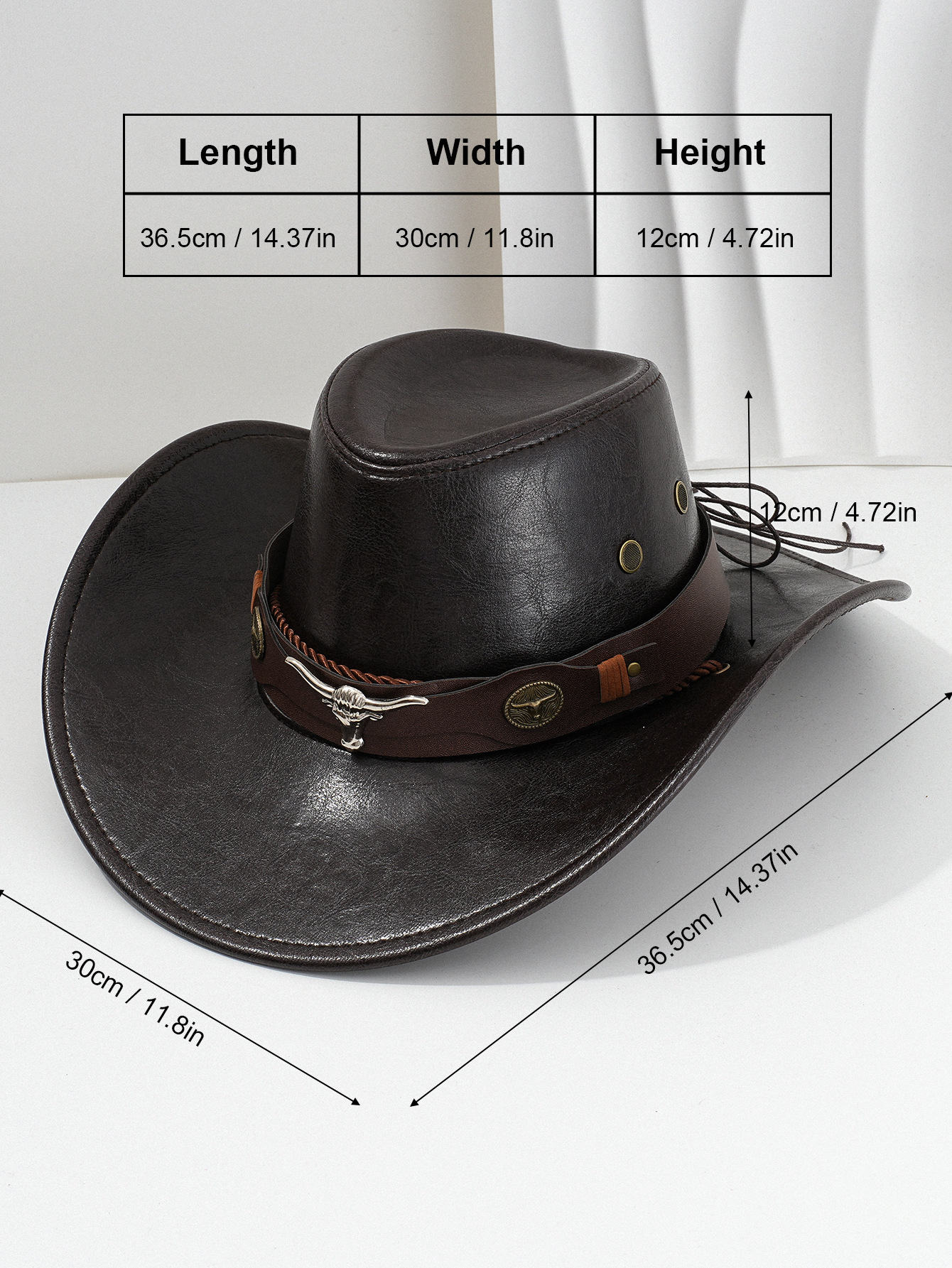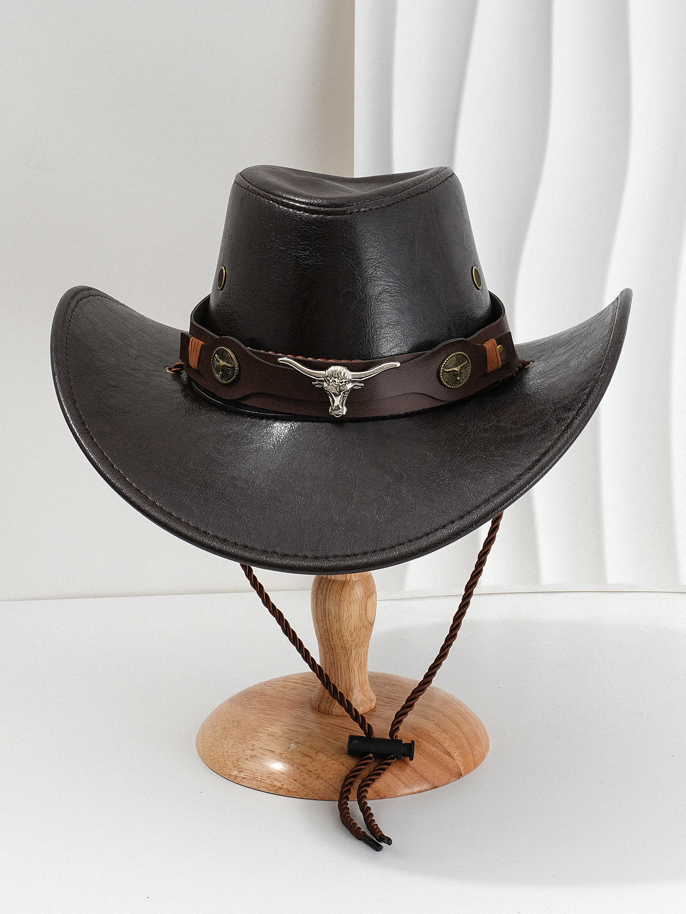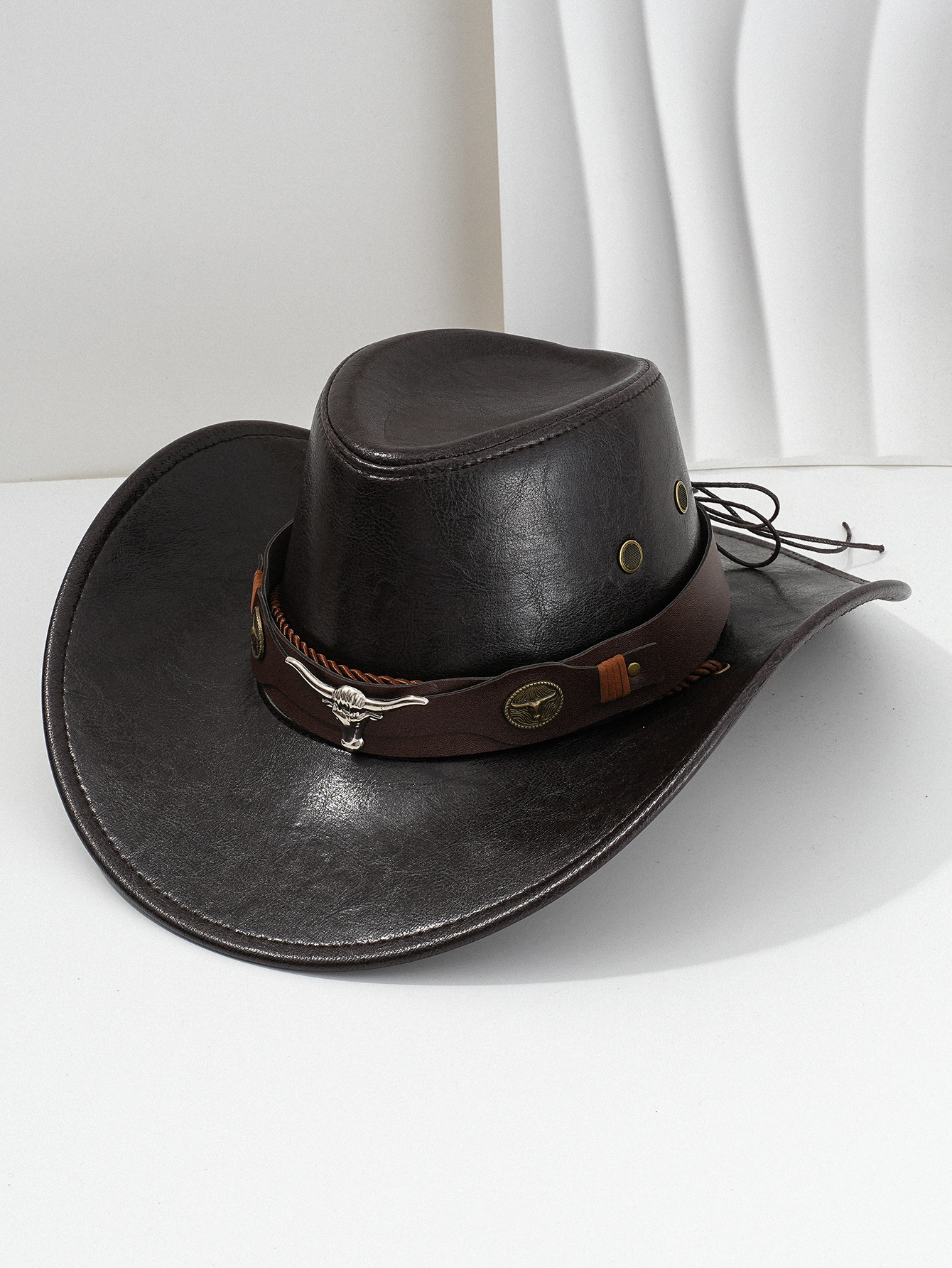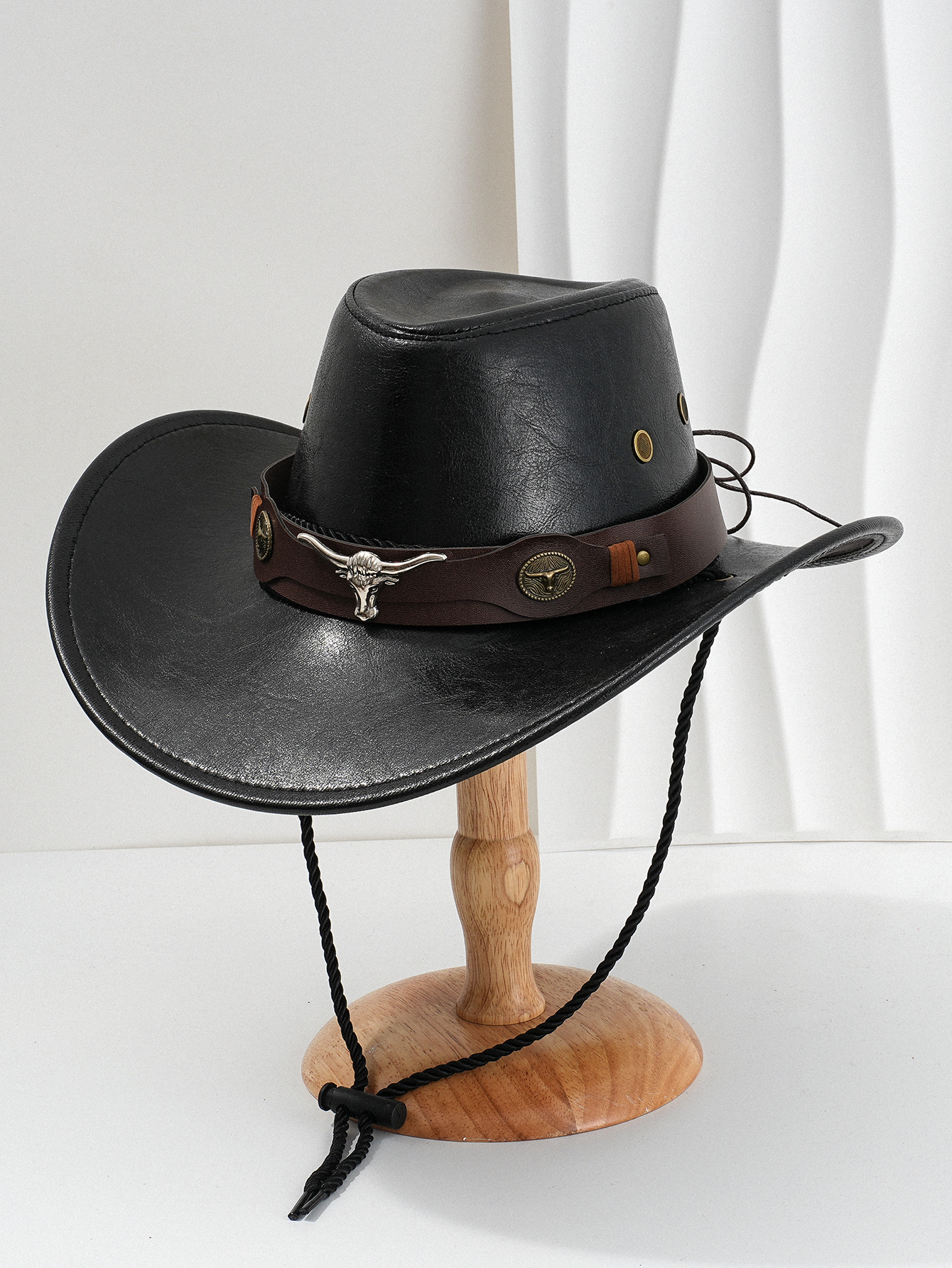 남성과 여성의 서부 PU 가죽 카우보이 모자 패션 금속 3 차원 소의 머리 복고풍 곡선 가죽 벨트 경쟁 성능