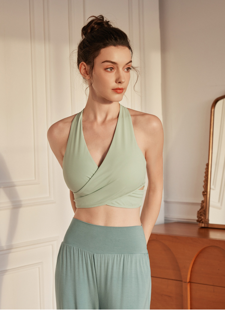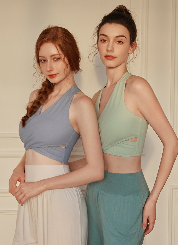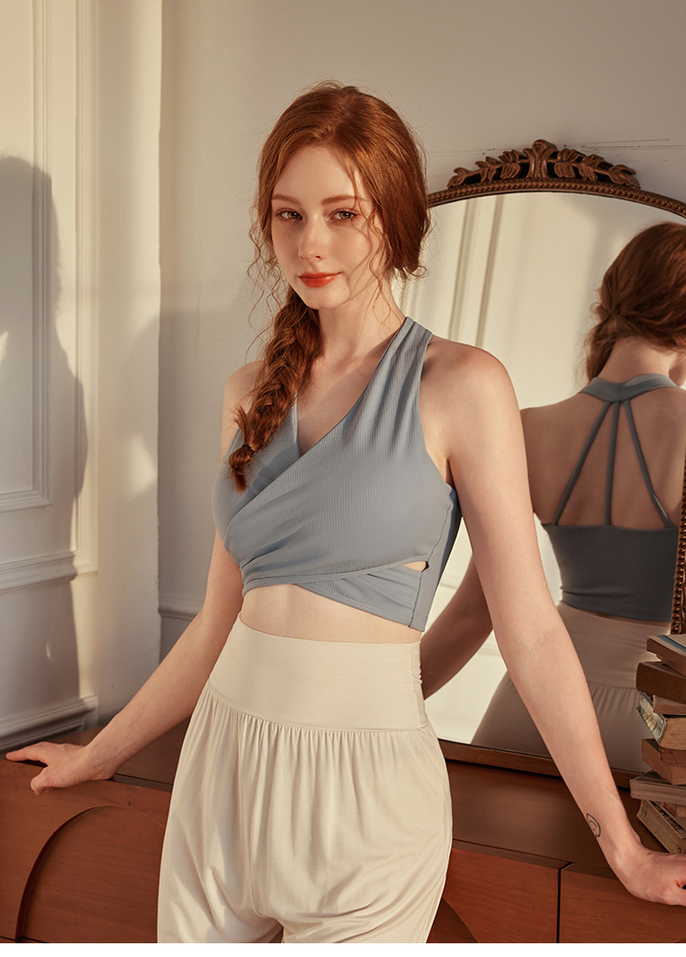 가슴 패드와 하이 엔드 Xianyi 요가 조끼 traceless 스포츠 뷰티 백 속옷 조끼 V 넥 요가 세트 브래지어 여성용