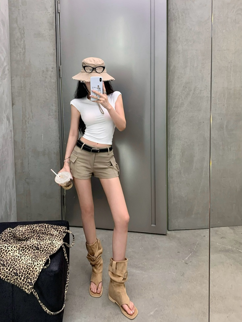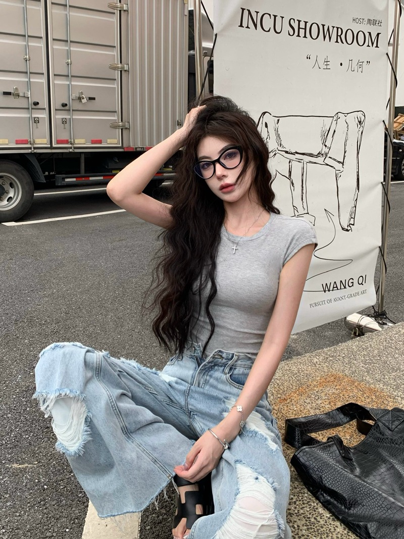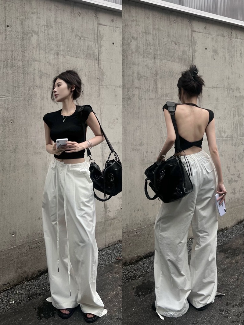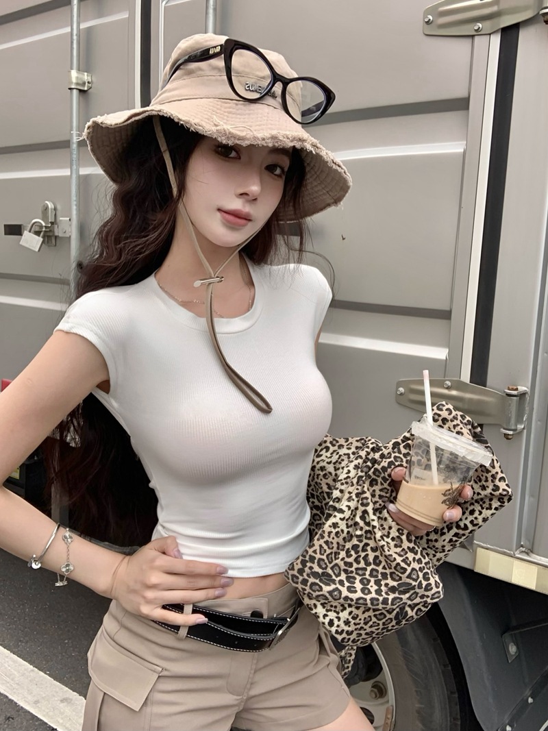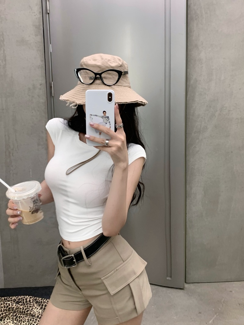 크로스 할로우 백 반팔 티셔츠 여성용 여름 순수한 욕망 스파이스 걸스 섹시한 백리스 짧은 어깨 탑 슈퍼 요정과 아름다운스토어 가기