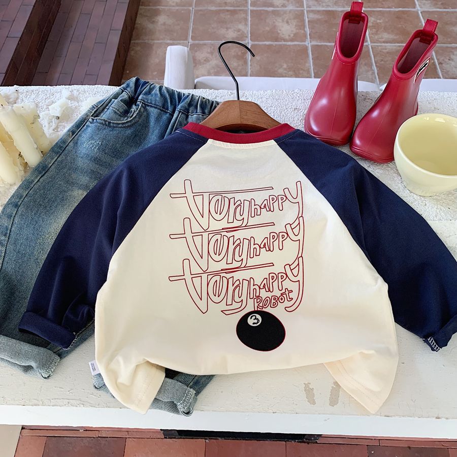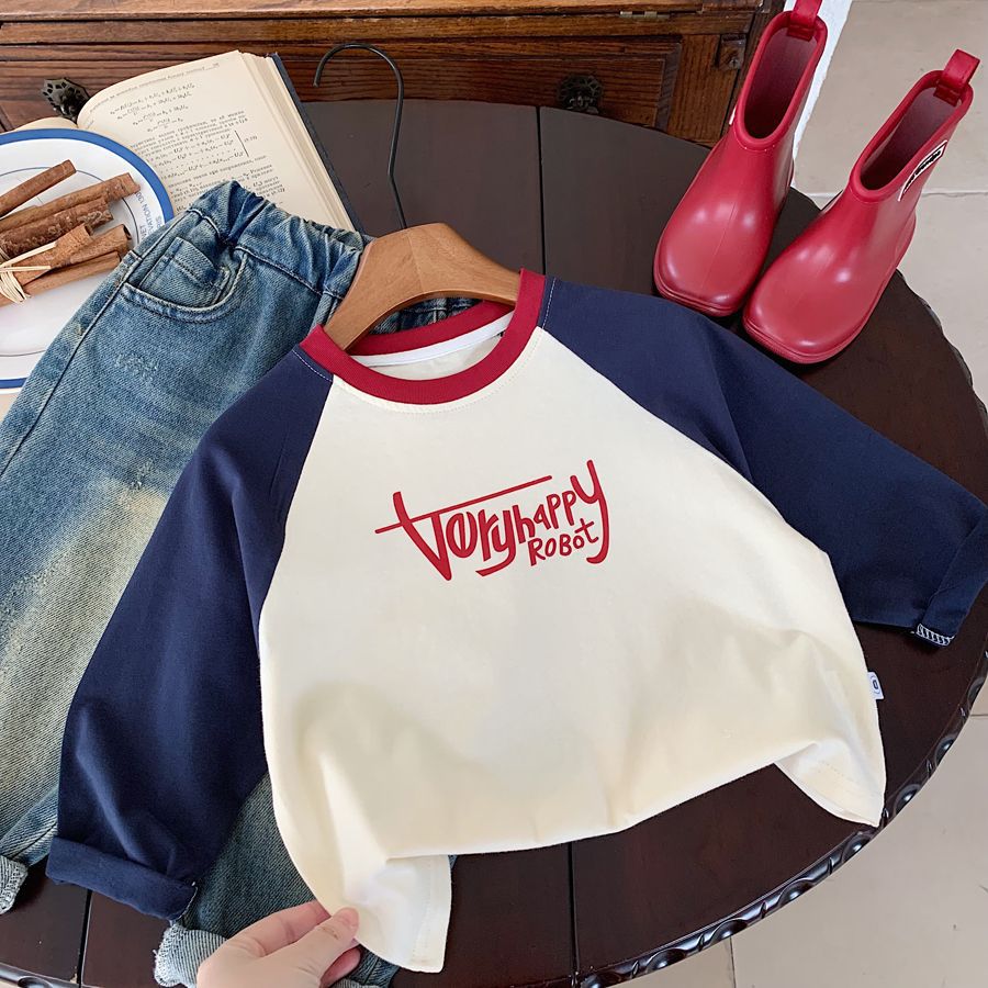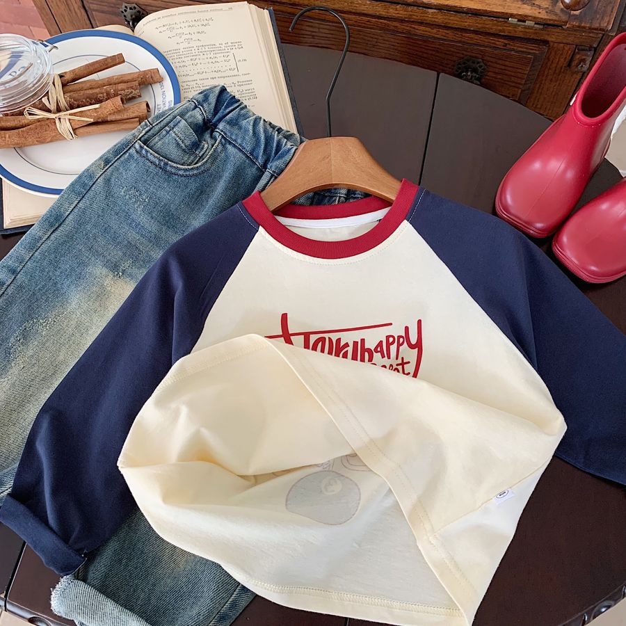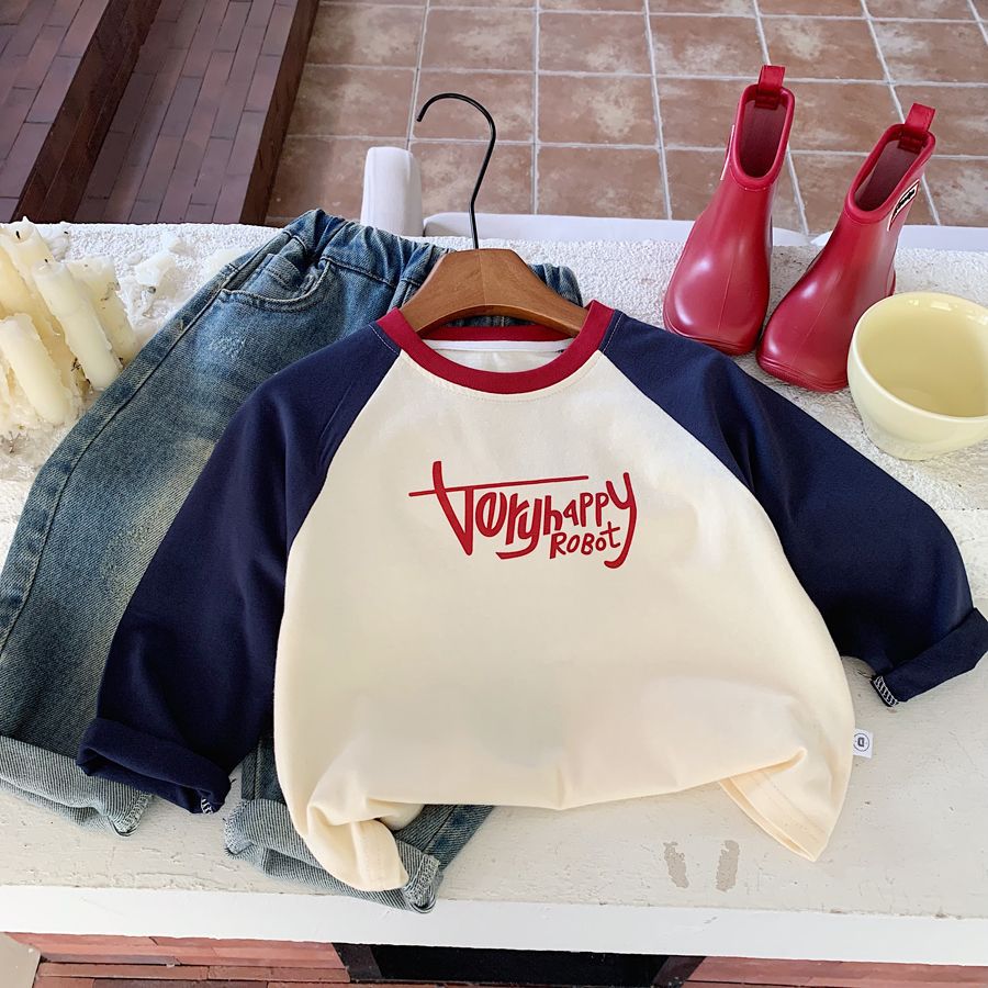 남학생 긴팔 티셔츠 2024 가을 새 어린이 소프트 캐주얼 알파벳 올매치 패션 라글란 슬리브 탑 트렌디스토어 가기