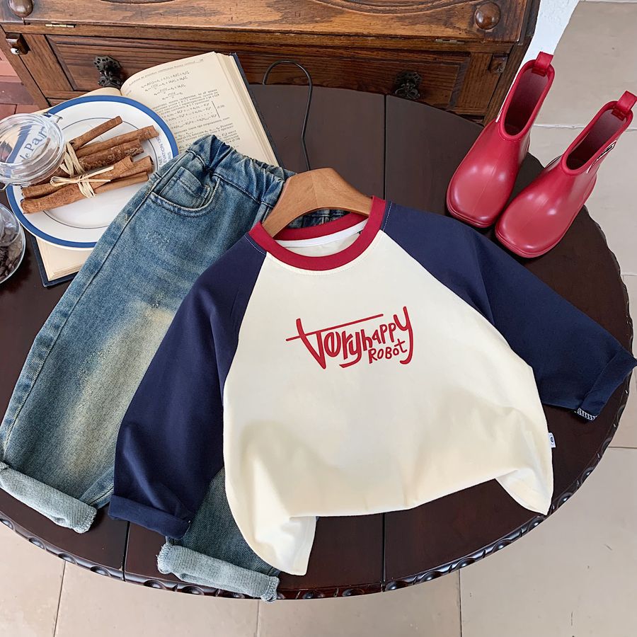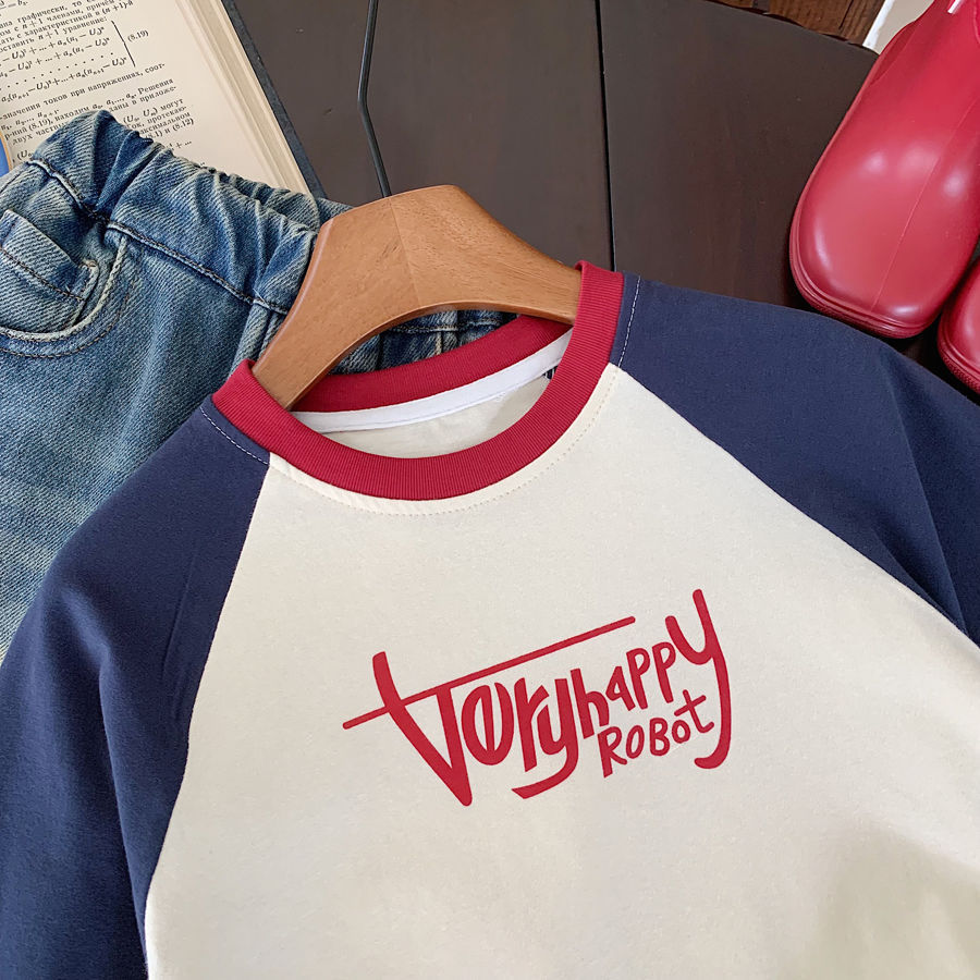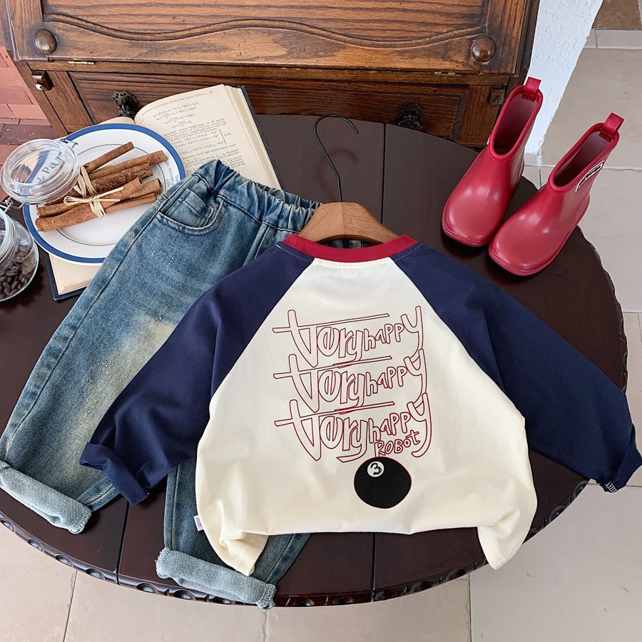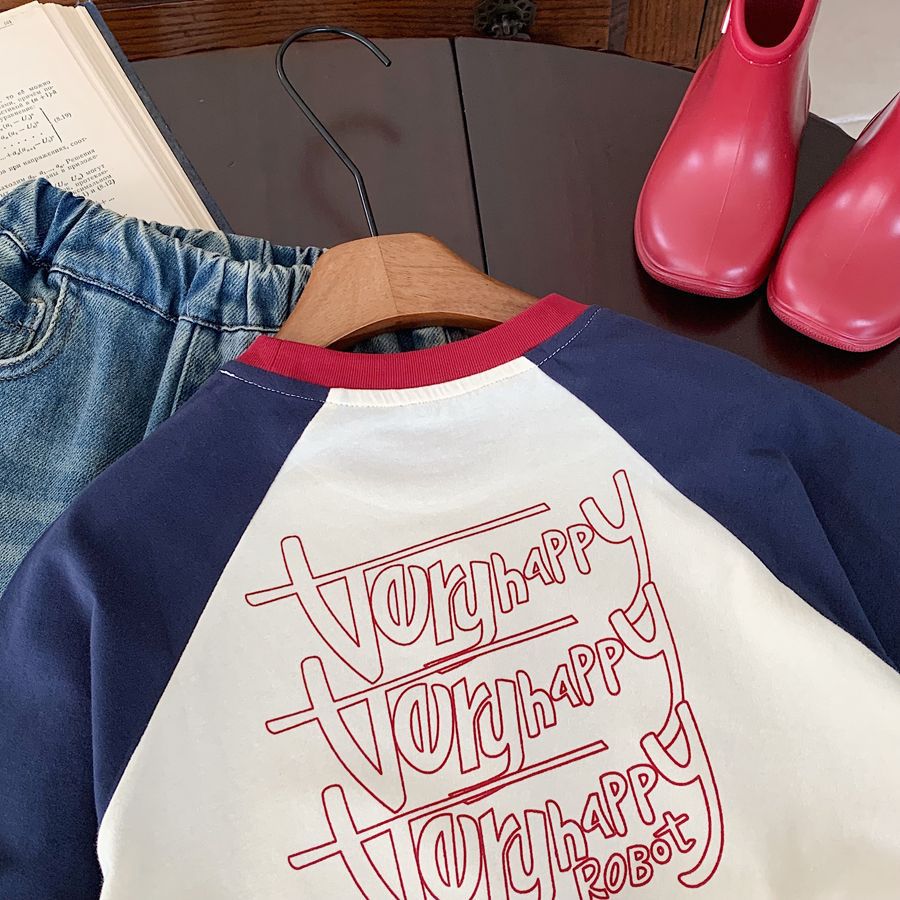 남학생 긴팔 티셔츠 2024 가을 새 어린이 소프트 캐주얼 알파벳 올매치 패션 라글란 슬리브 탑 트렌디스토어 가기