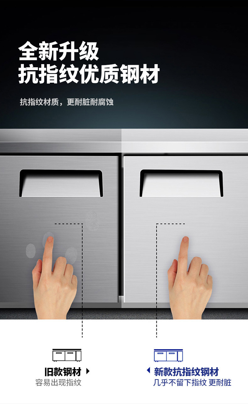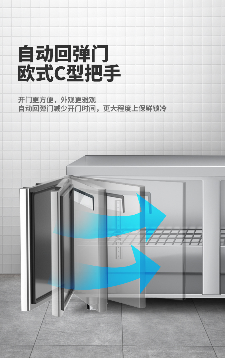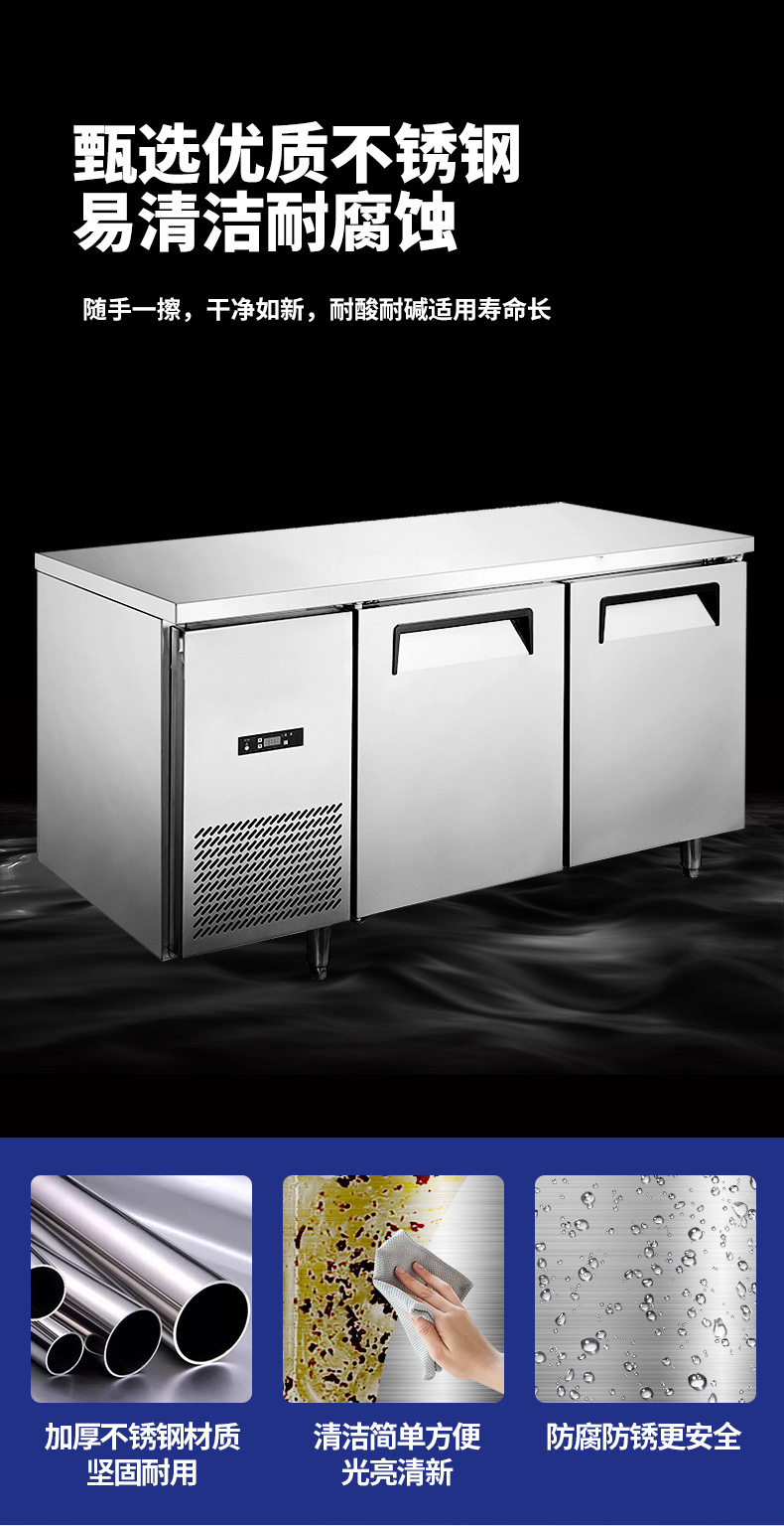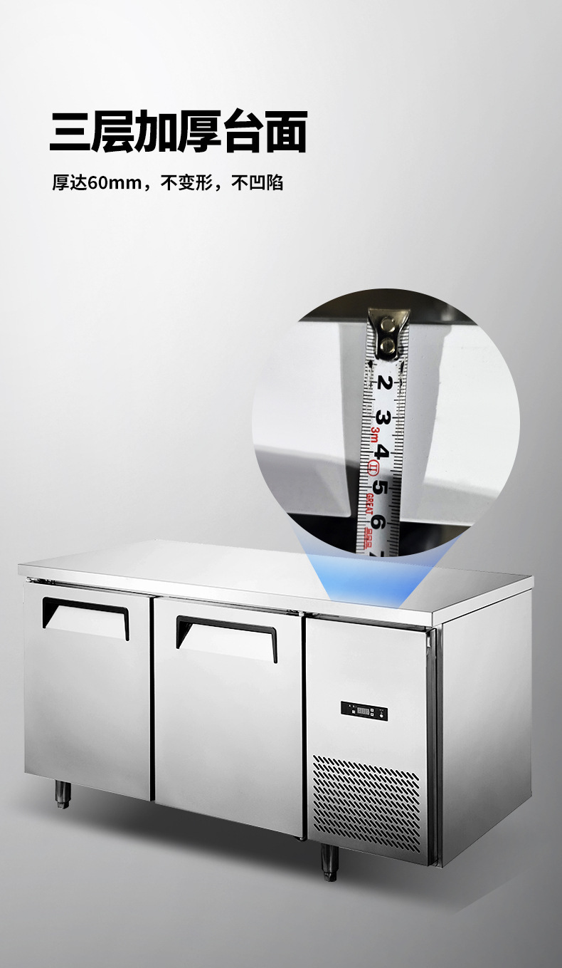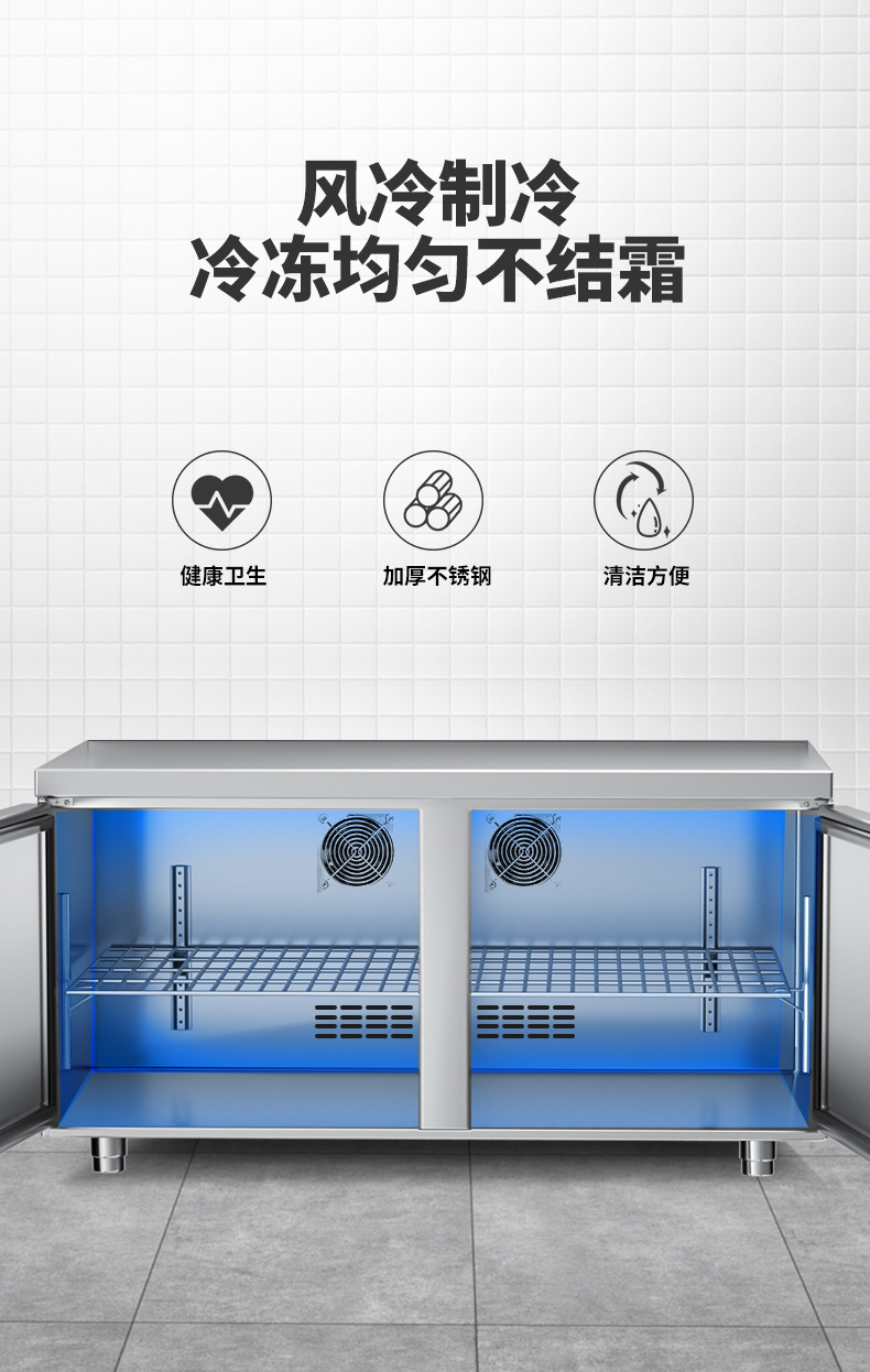 Mengshi 상업용 주방 냉동 냉장 작업대 공냉식 서리 방지 스테인레스 스틸 평면 냉장 작업대 냉장고