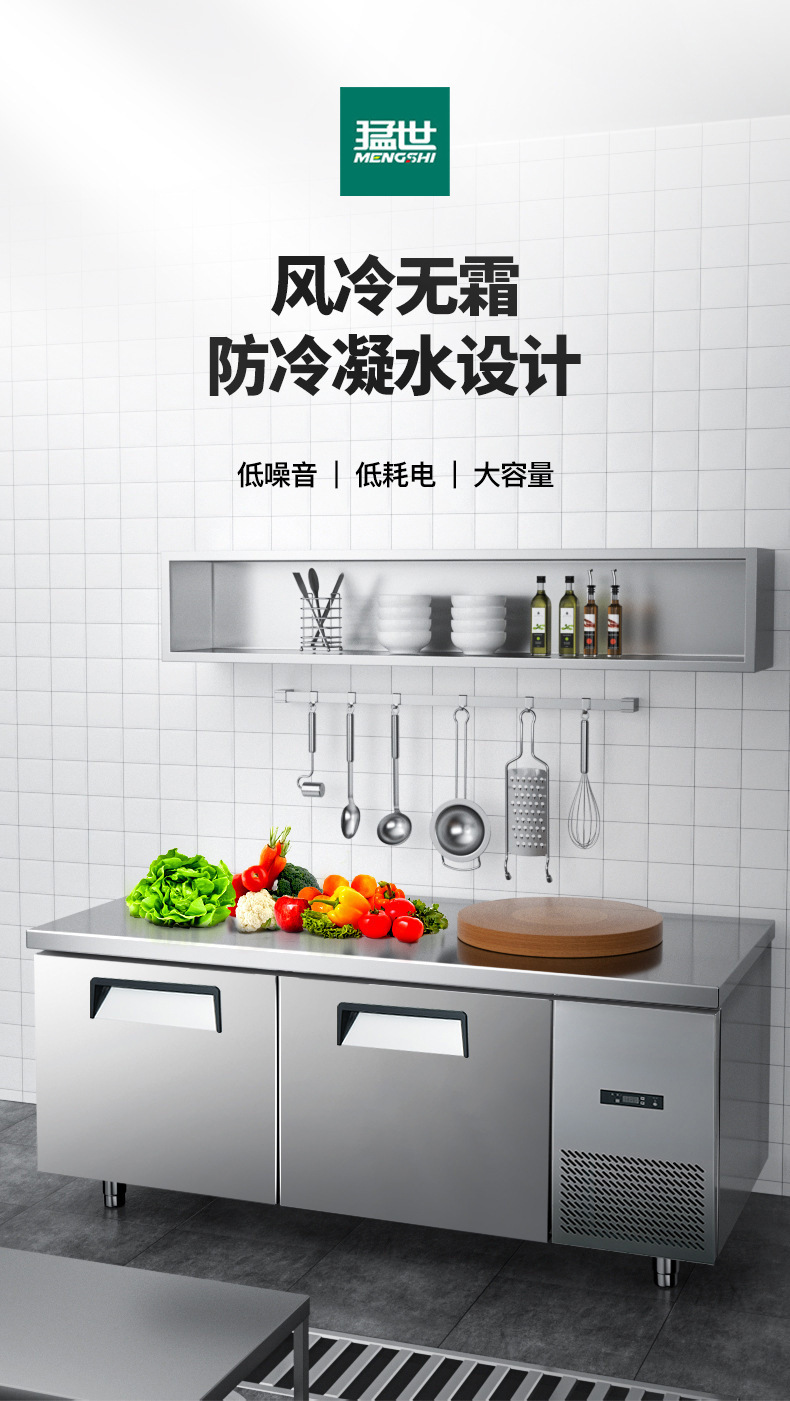 Mengshi 상업용 주방 냉동 냉장 작업대 공냉식 서리 방지 스테인레스 스틸 평면 냉장 작업대 냉장고스토어 가기