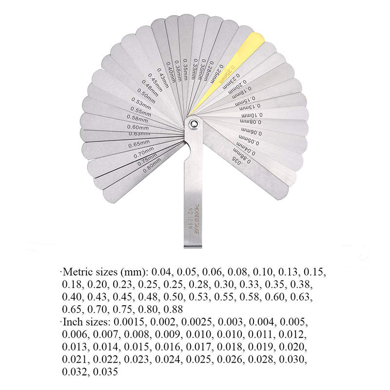 Suitable for designers, engineers, mechanics to measure the thickness of tappet clearances, spark plugs gaps, bearing clearances, piston ring gaps and other hard to reach places.