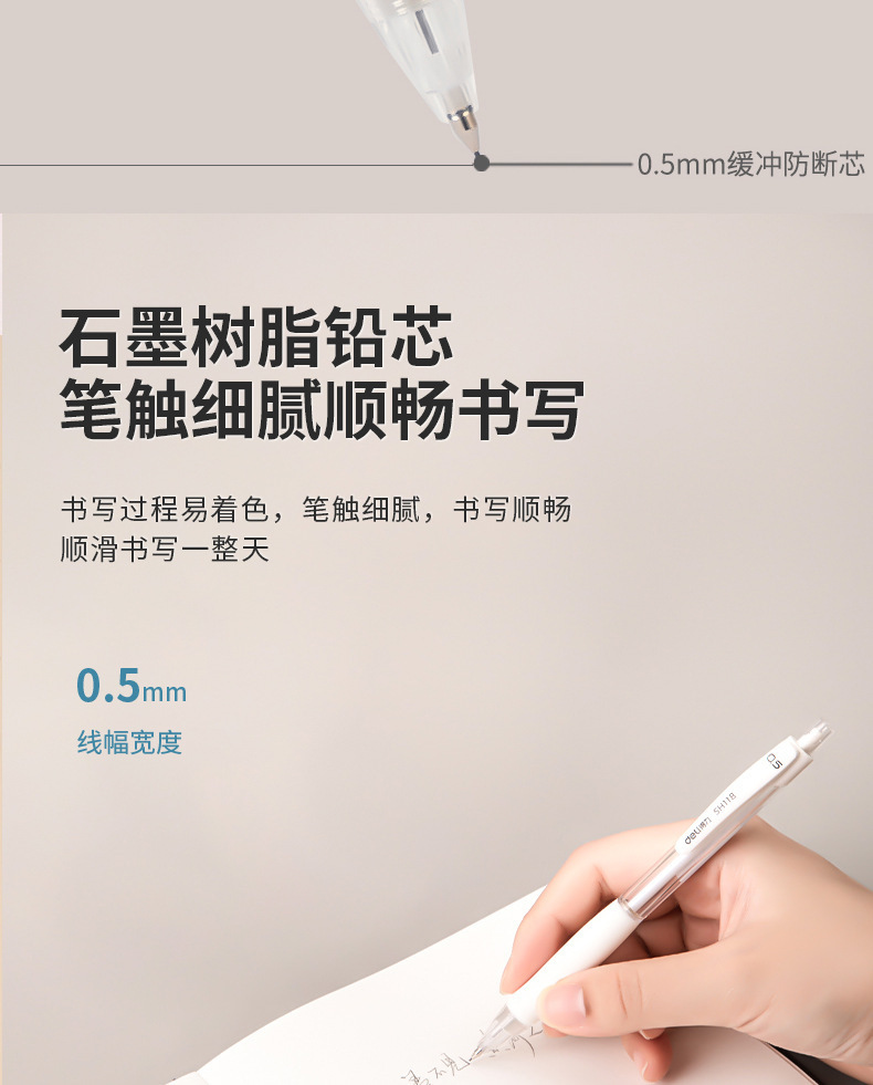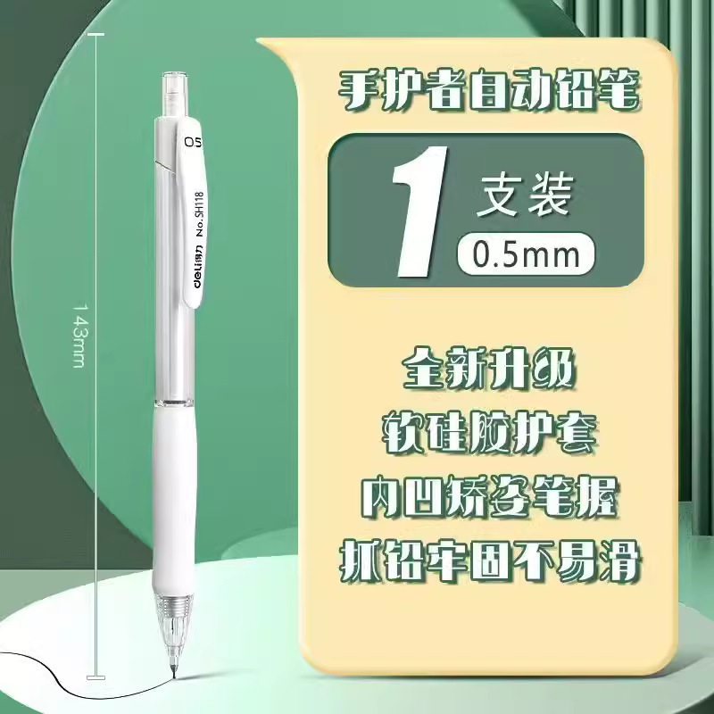 델리 SH118 자동 연필 학생 HB 손 가드는 핵심 활동 연필 0.5/0.7 선명하지 않은 연필을 깨기 쉽지 않습니다.