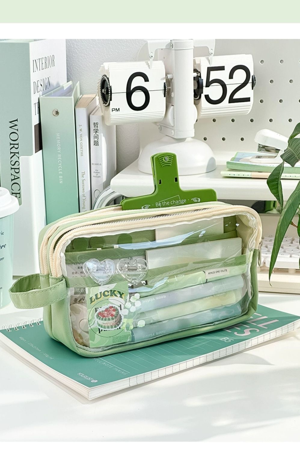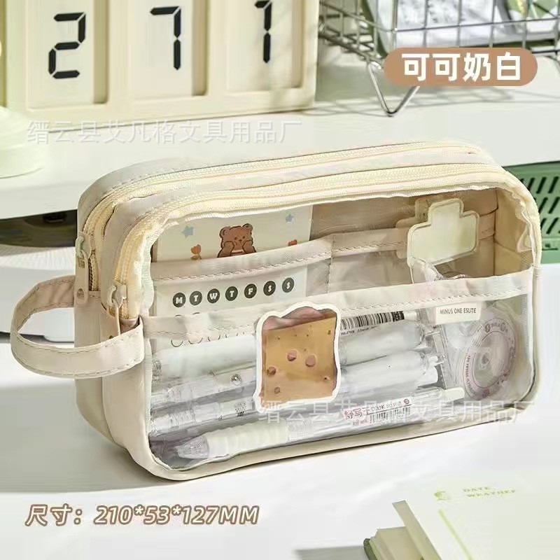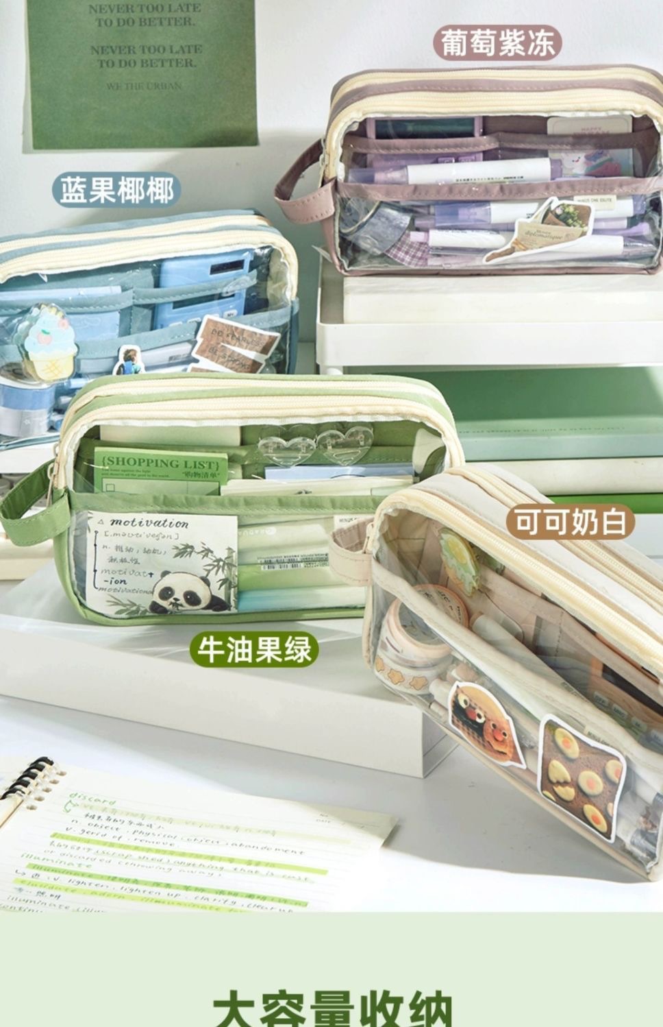 투명 레이어 휴대용 연필 케이스 소녀의 대용량 고가치 문구 상자 중학교 및 초등학생을위한 간단한 보관 가방스토어 가기