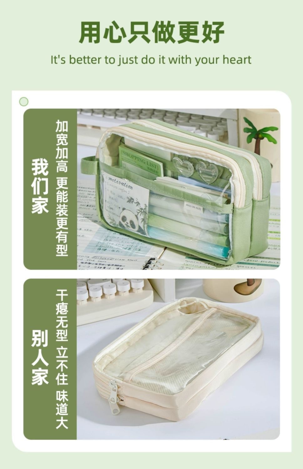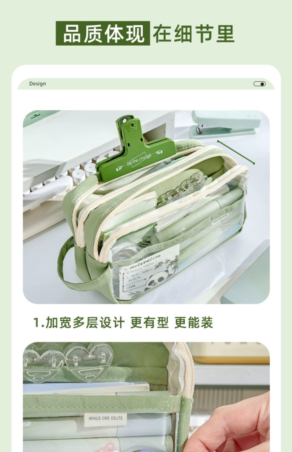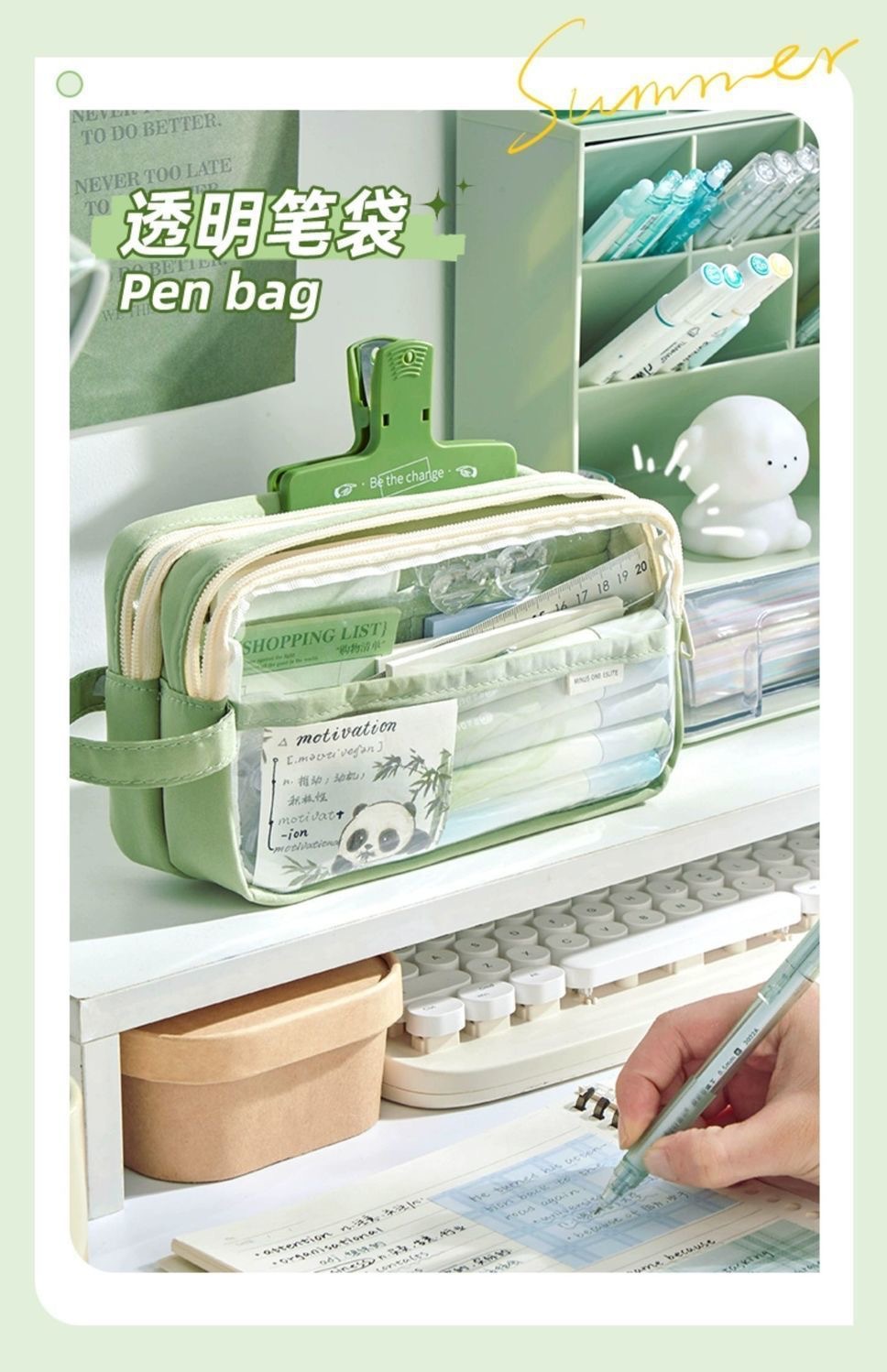 투명 레이어 휴대용 연필 케이스 소녀의 대용량 고가치 문구 상자 중학교 및 초등학생을위한 간단한 보관 가방스토어 가기