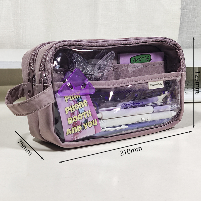 투명 레이어 휴대용 연필 케이스 소녀의 대용량 고가치 문구 상자 중학교 및 초등학생을위한 간단한 보관 가방