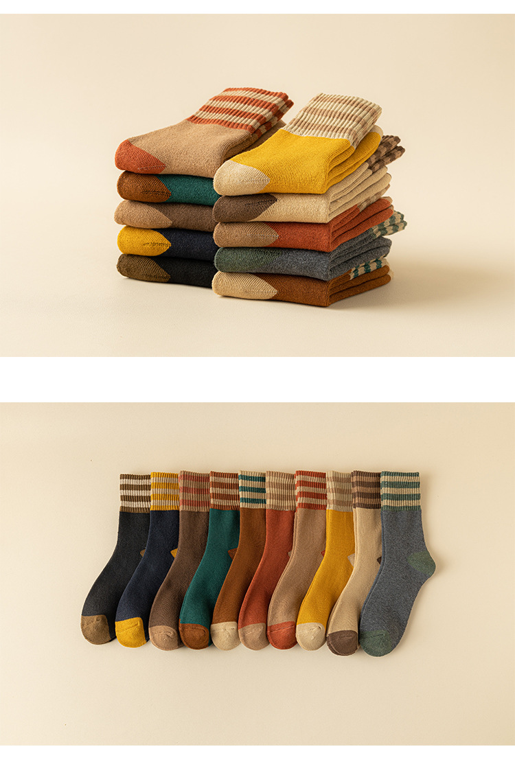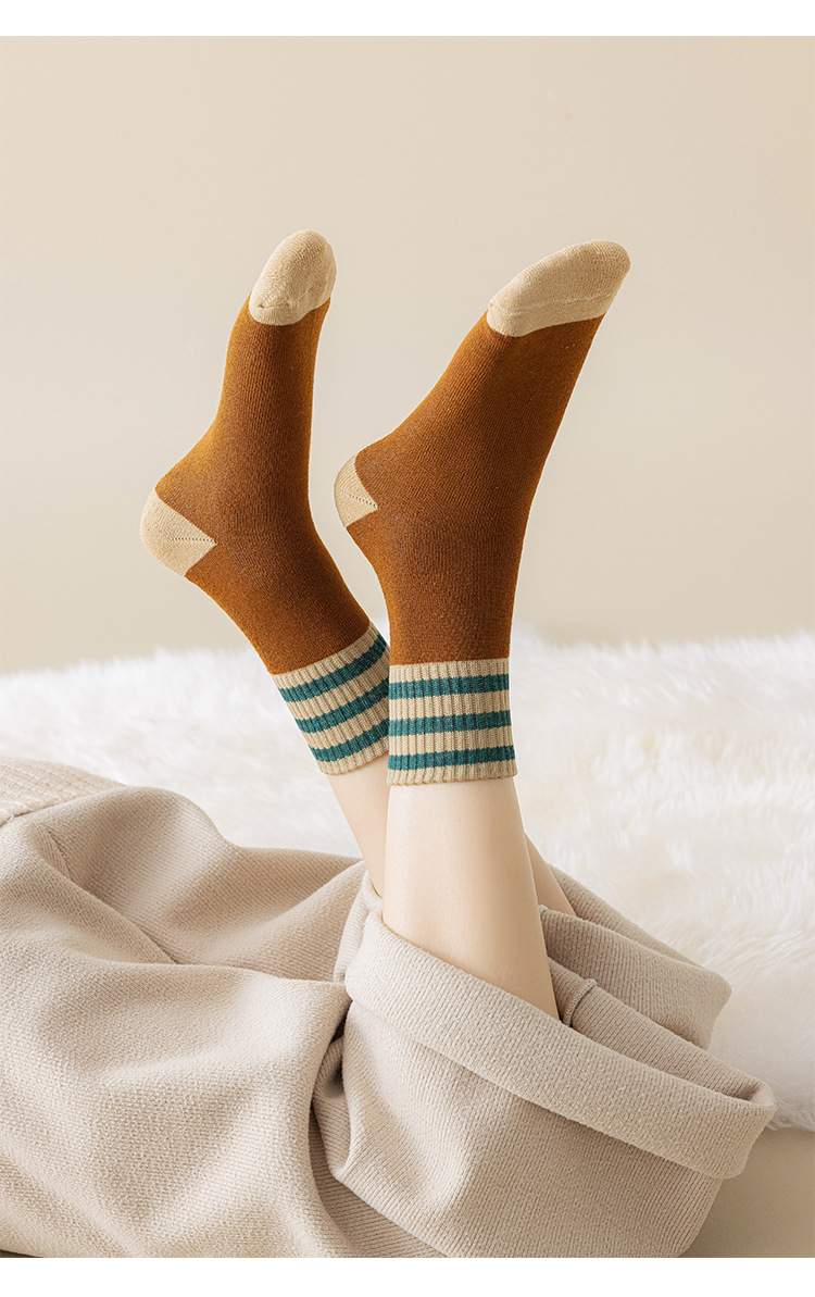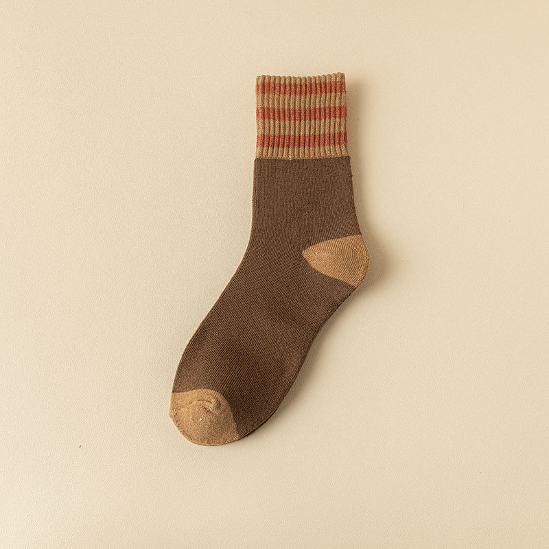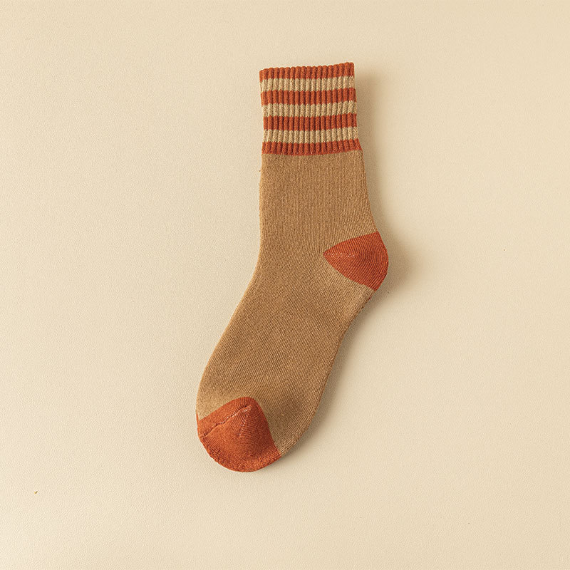 가을과 겨울 테리 양말 여성의 기모 두꺼운 튜브 양말 3 바 일본식 따뜻한 수건 양말 검은 스타킹 유행 양말 여성