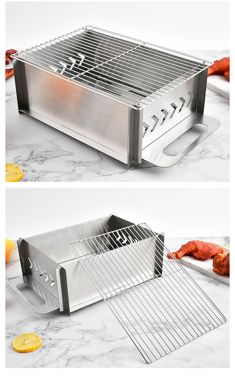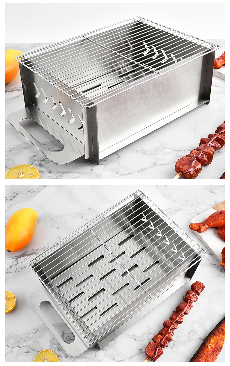 공장 재고 지보 바베큐 스테인레스 스틸 오븐 그리기 가능한 환기 된 숯 알코올 다기능 야간 식품 바베큐