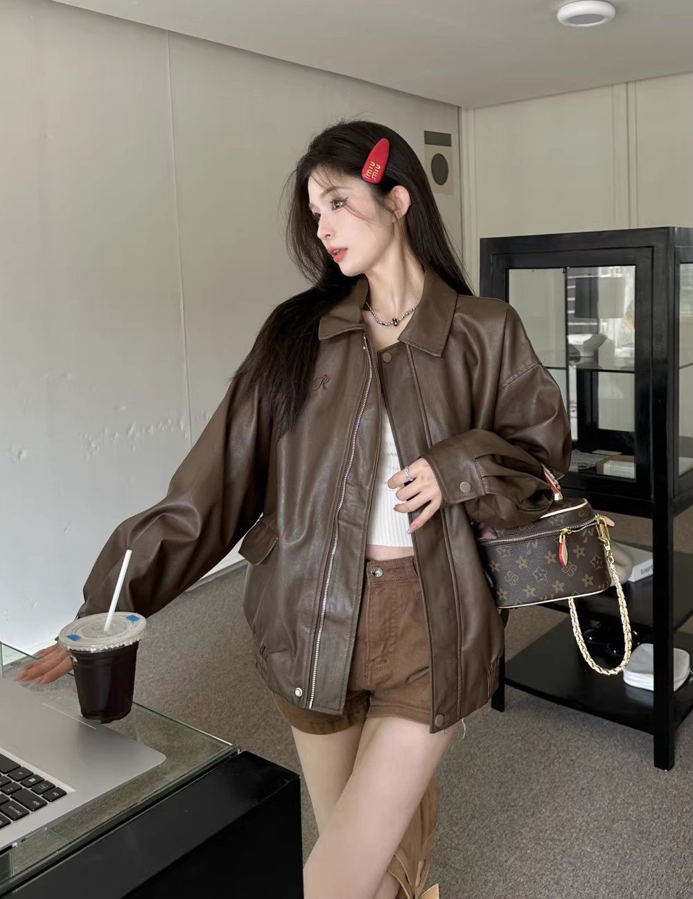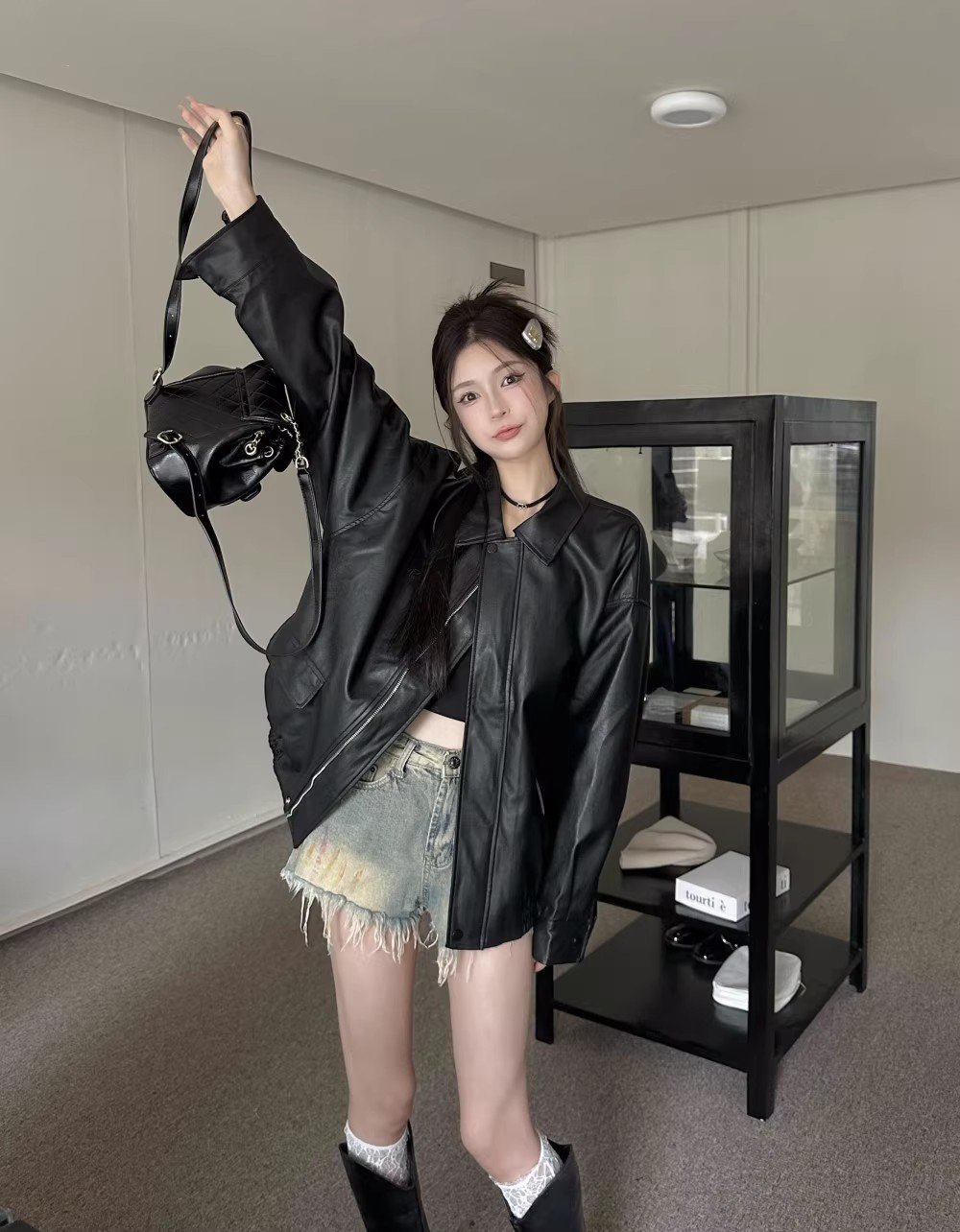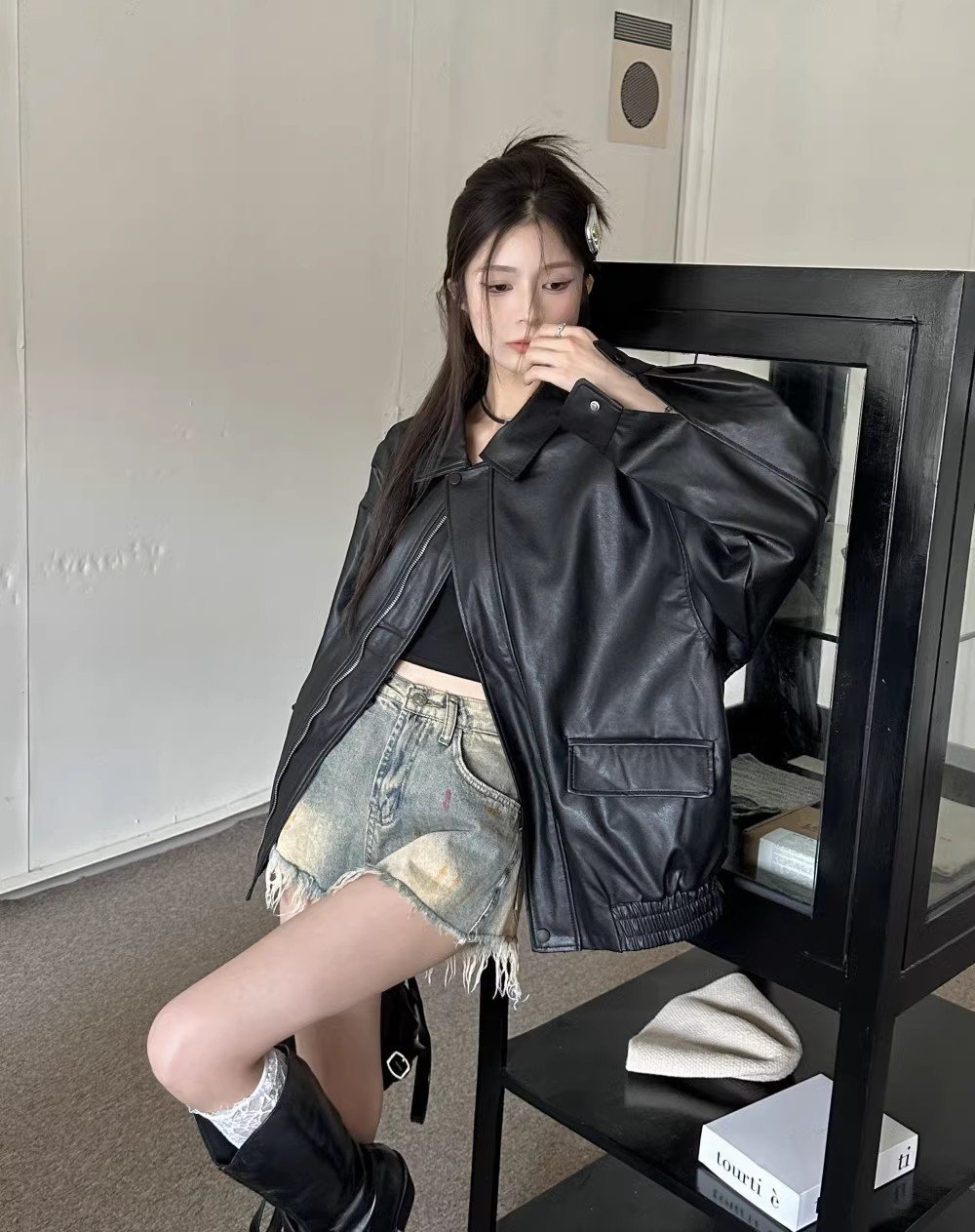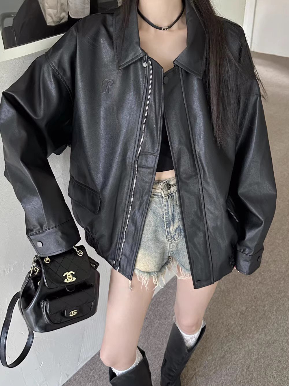 메일라드 여성용 가죽 자켓 봄 가을 루즈핏 슬림핏 아메리칸 스타일 바이커 가죽 자켓 유럽풍 패셔너블스토어 가기