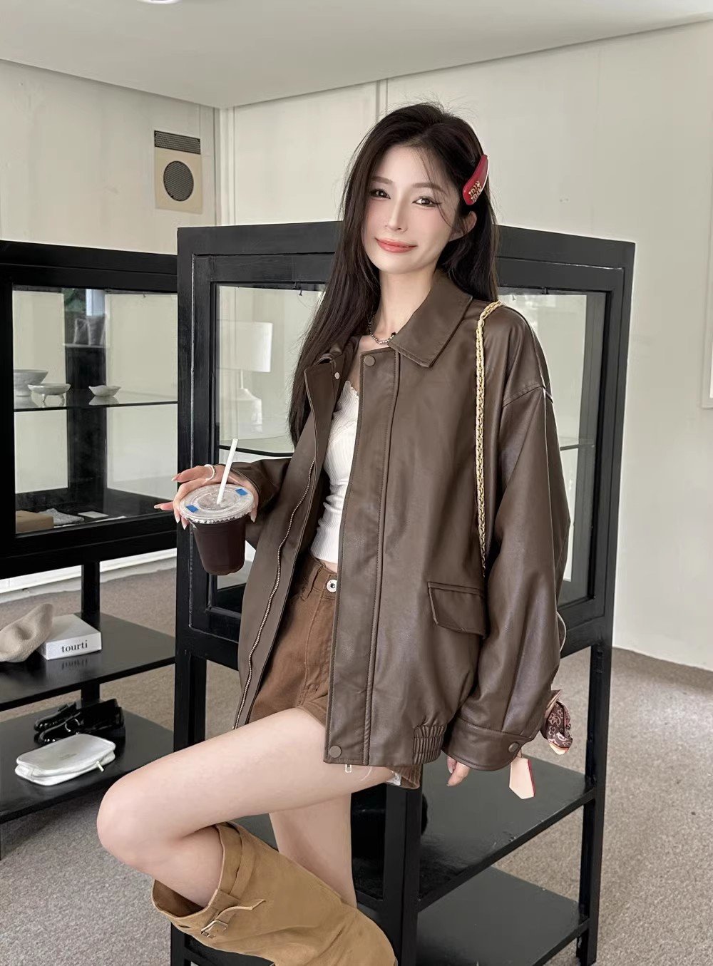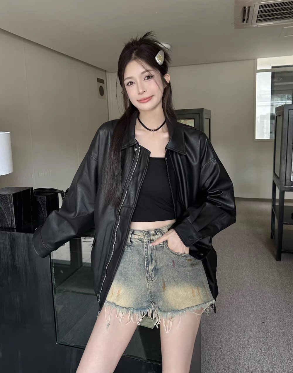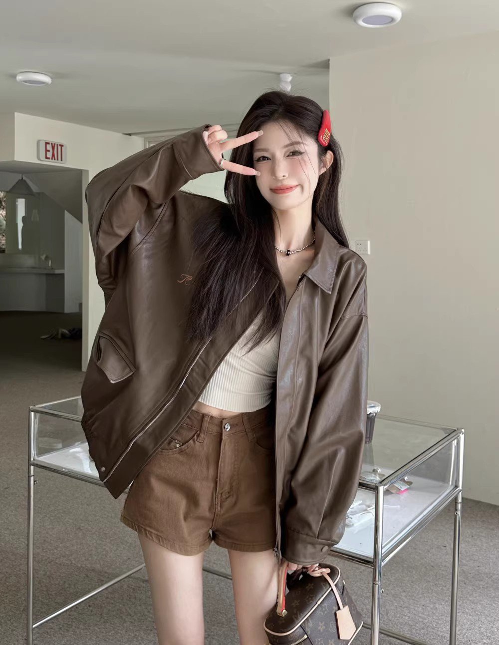메일라드 여성용 가죽 자켓 봄 가을 루즈핏 슬림핏 아메리칸 스타일 바이커 가죽 자켓 유럽풍 패셔너블스토어 가기