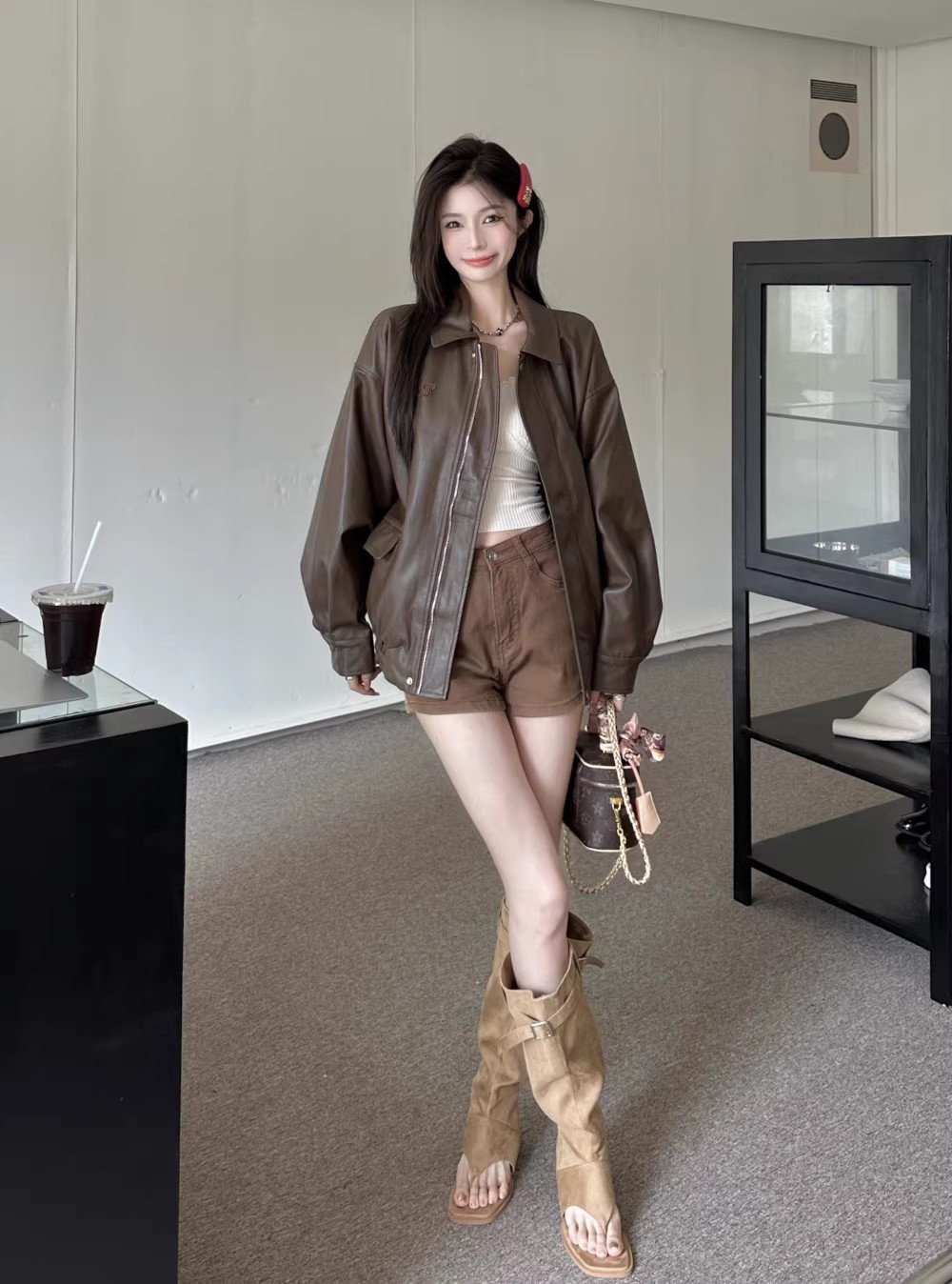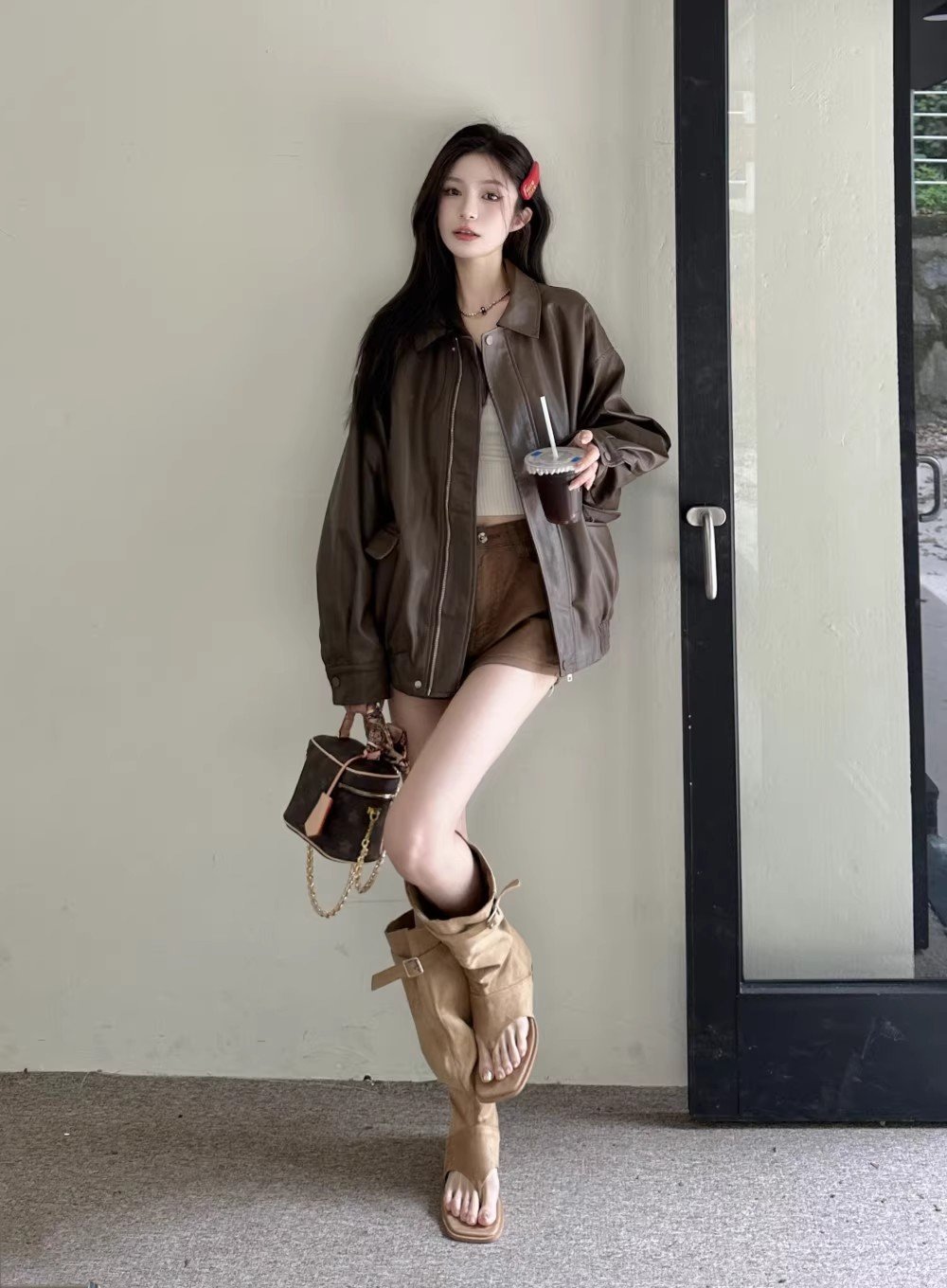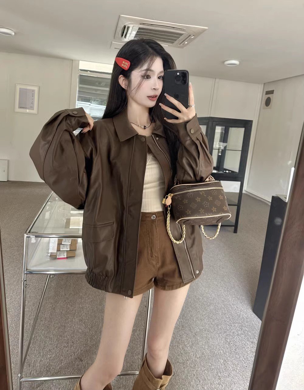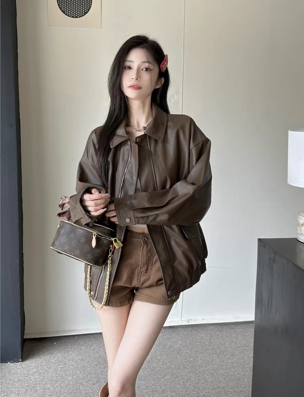 메일라드 여성용 가죽 자켓 봄 가을 루즈핏 슬림핏 아메리칸 스타일 바이커 가죽 자켓 유럽풍 패셔너블스토어 가기